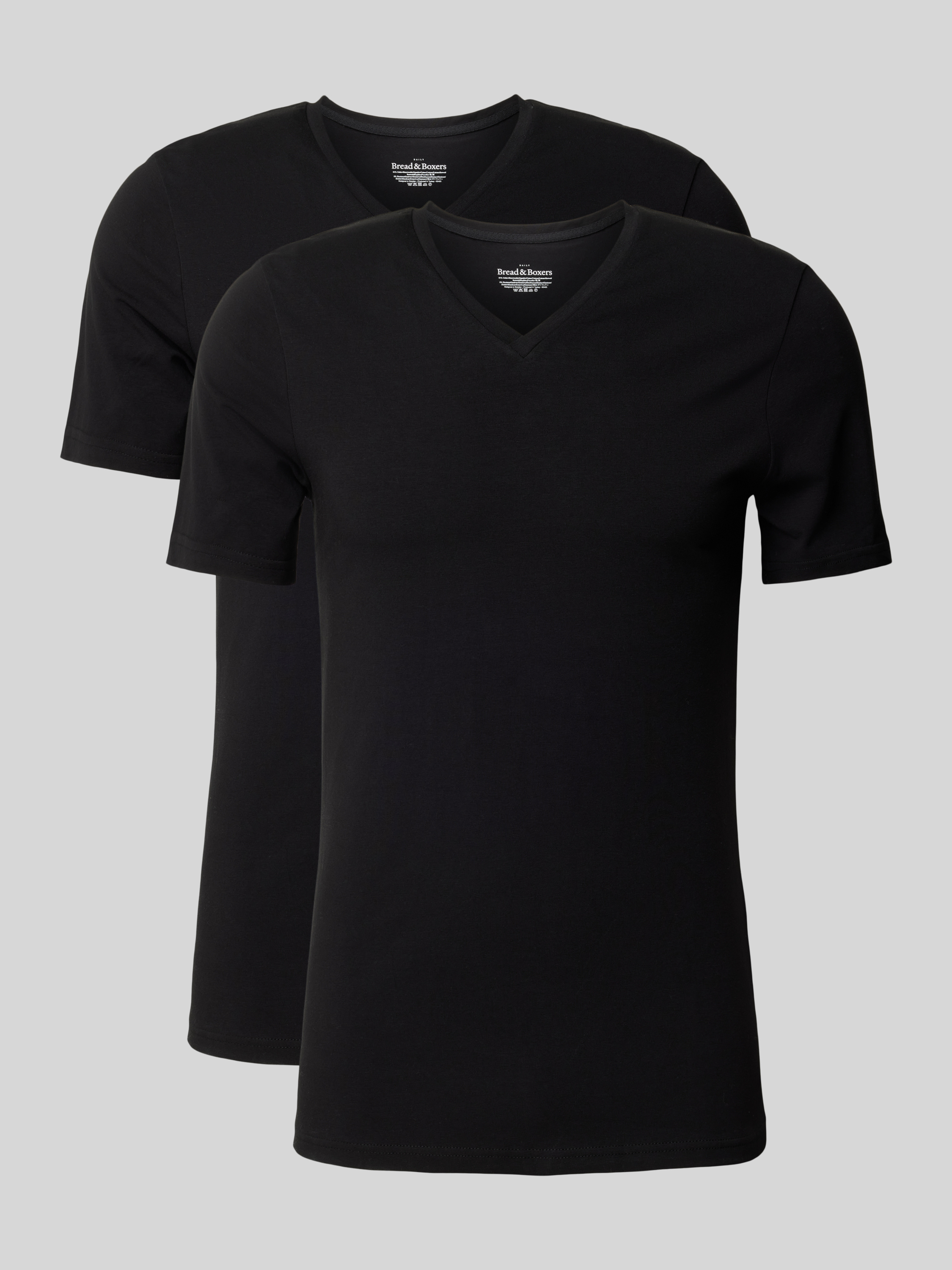 • Bread & Boxers T-shirt met geribde V-hals Zwart