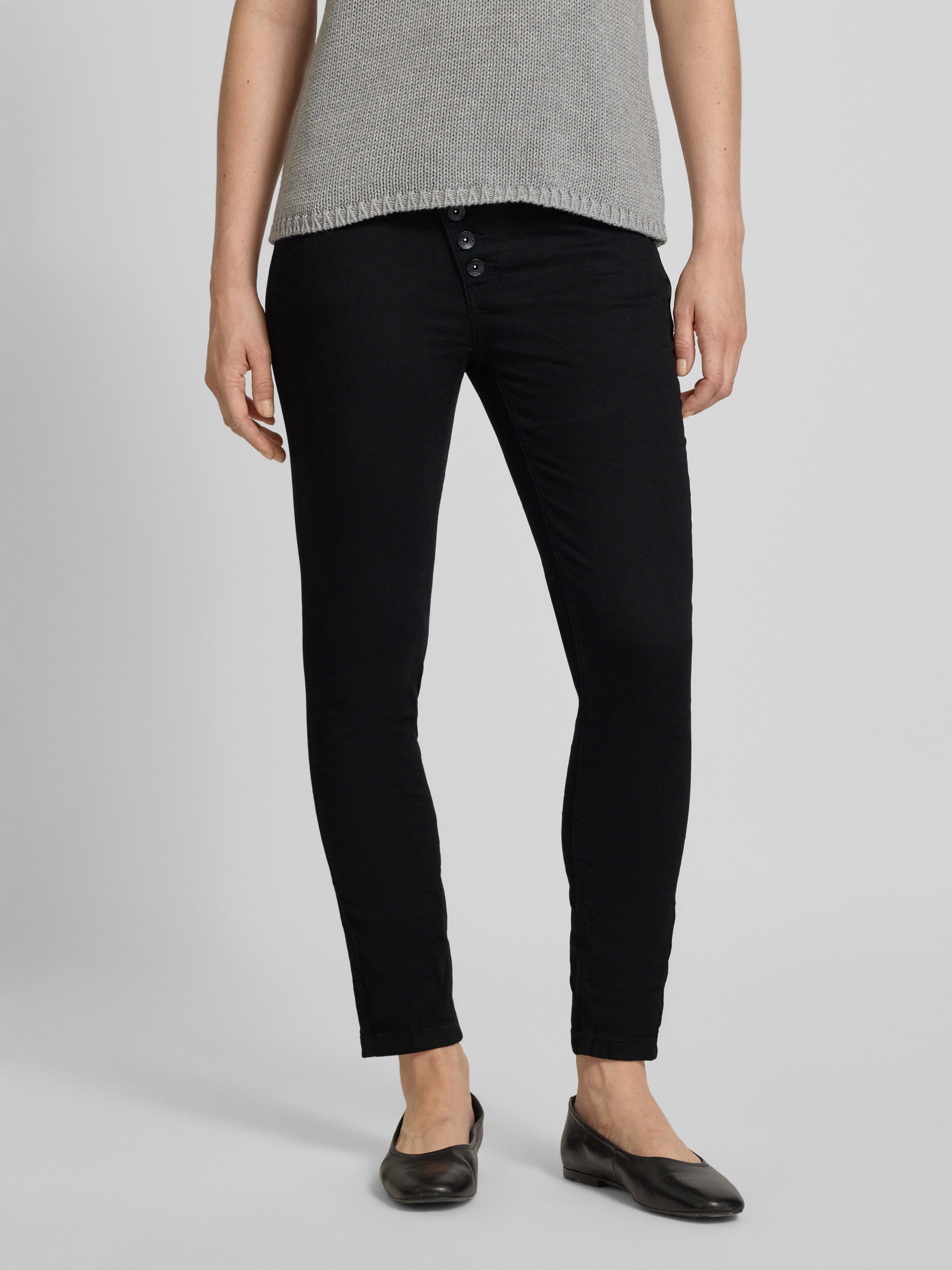 Skinny fit jeans met verkorte pasvorm en knoopsluiting in zwart