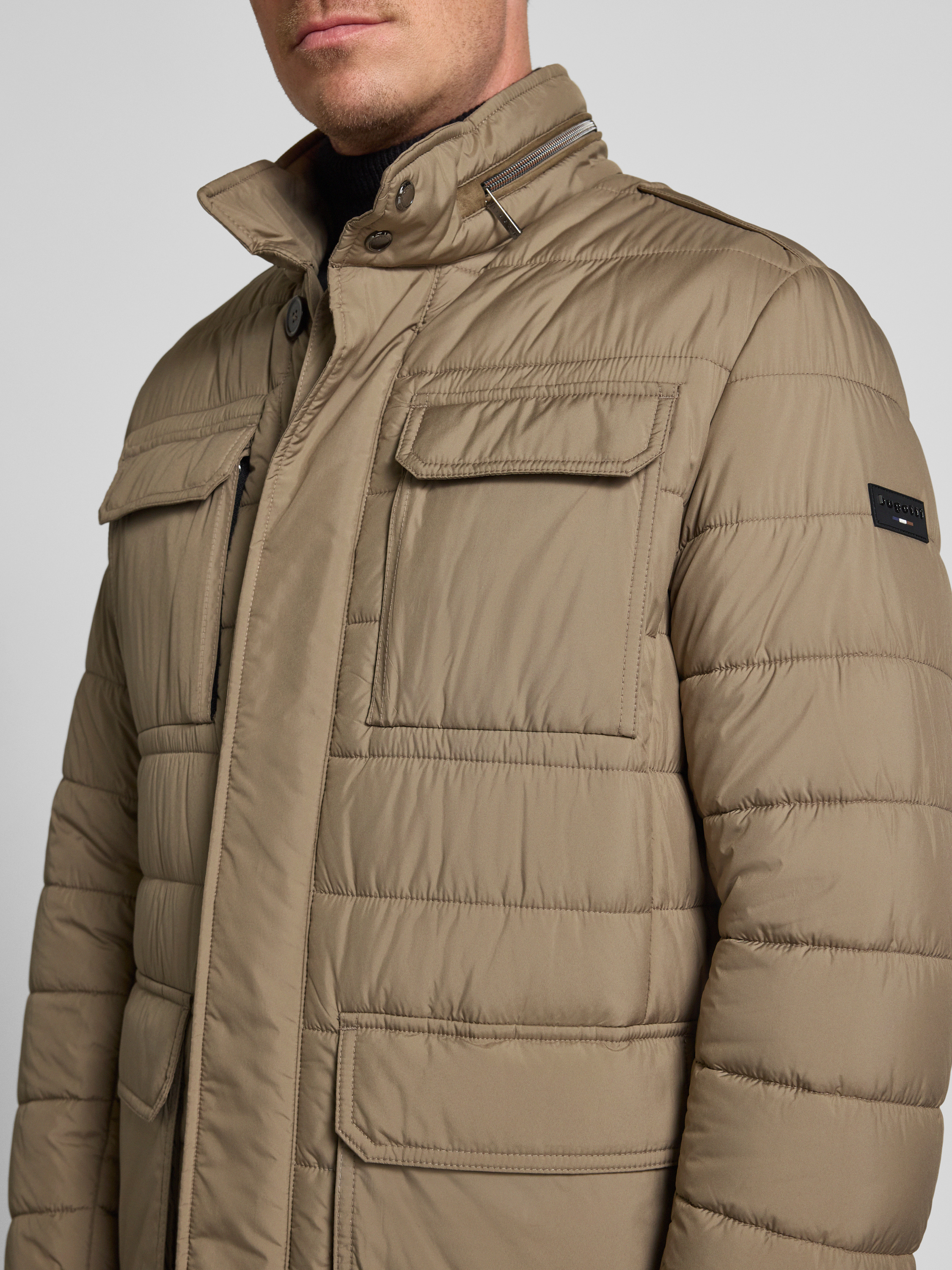 Gewatteerd jack met opstaande kraag en klepzakken in zand