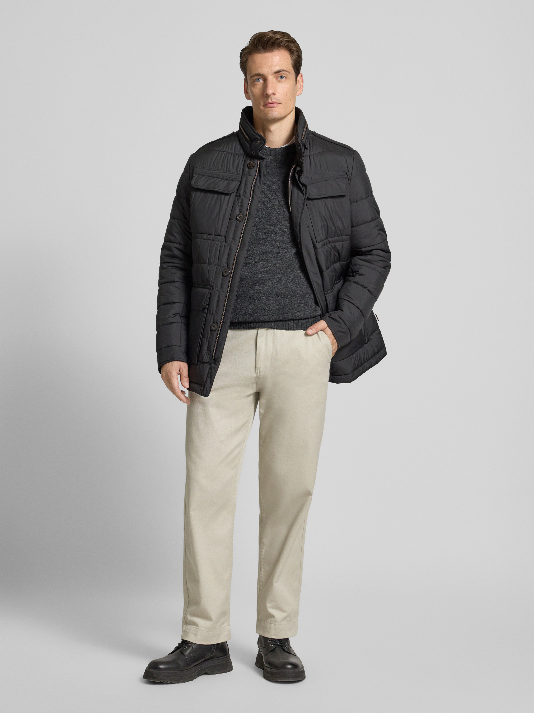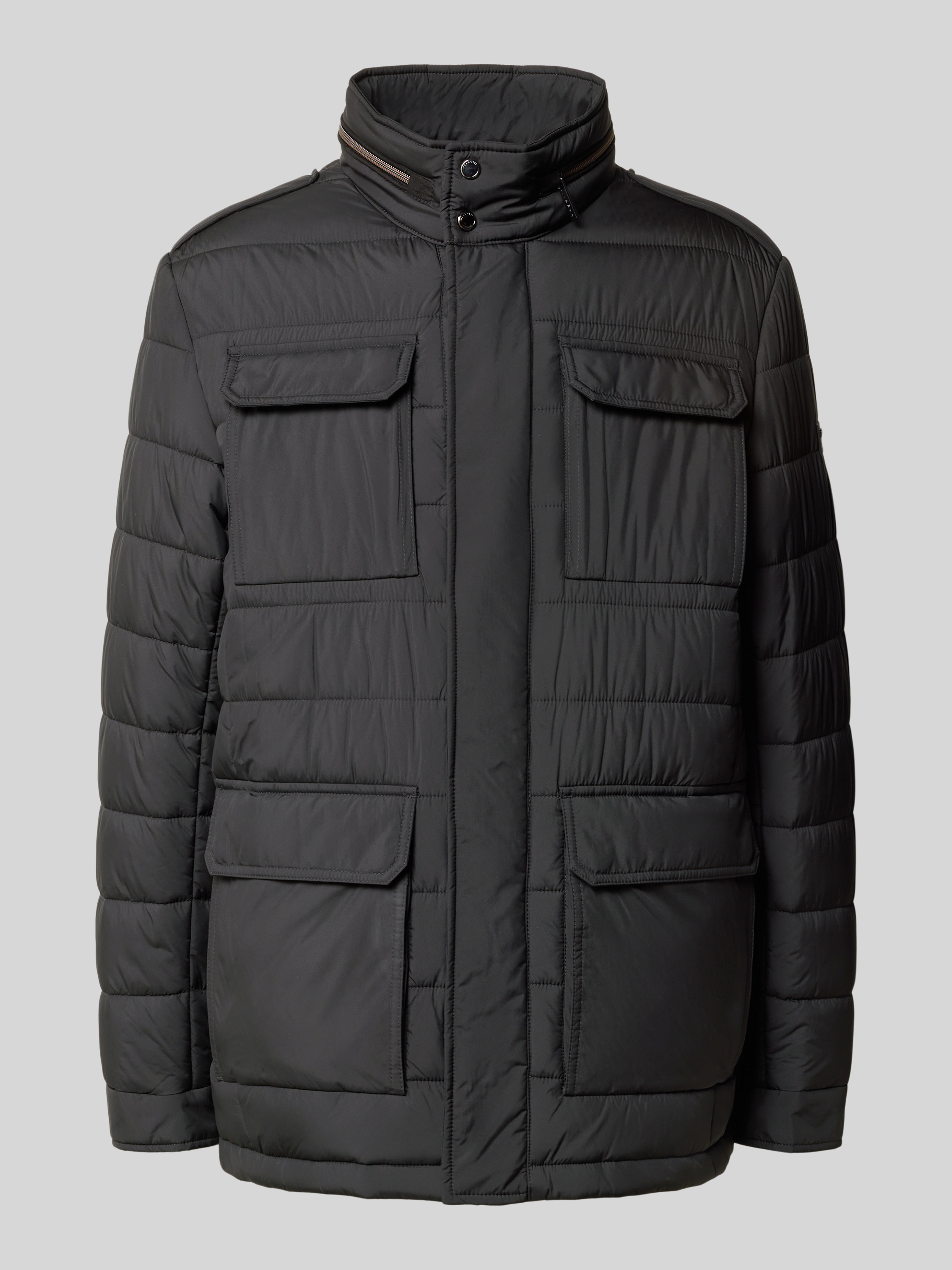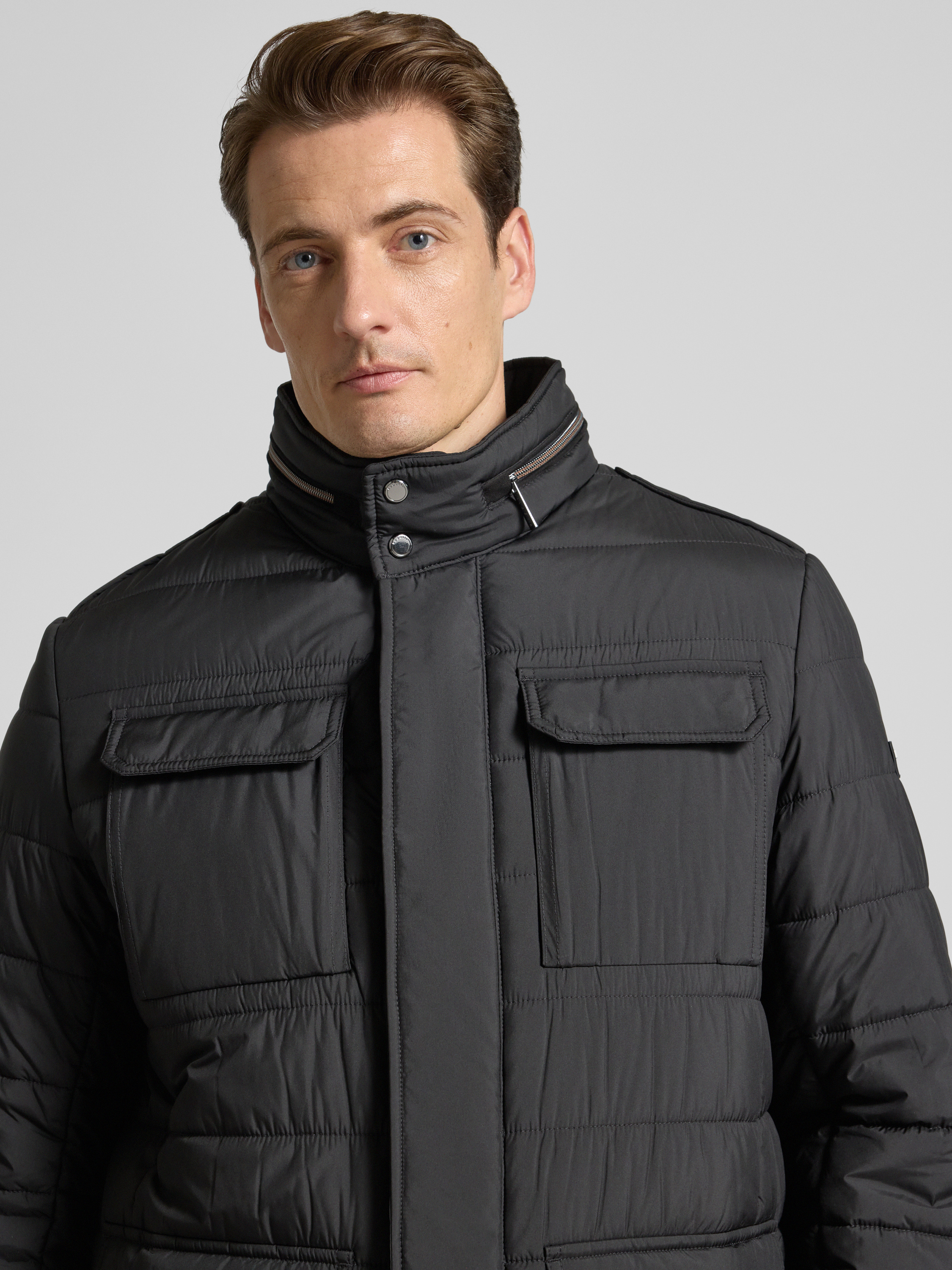 Gewatteerd jack met opstaande kraag en klepzakken in zwart