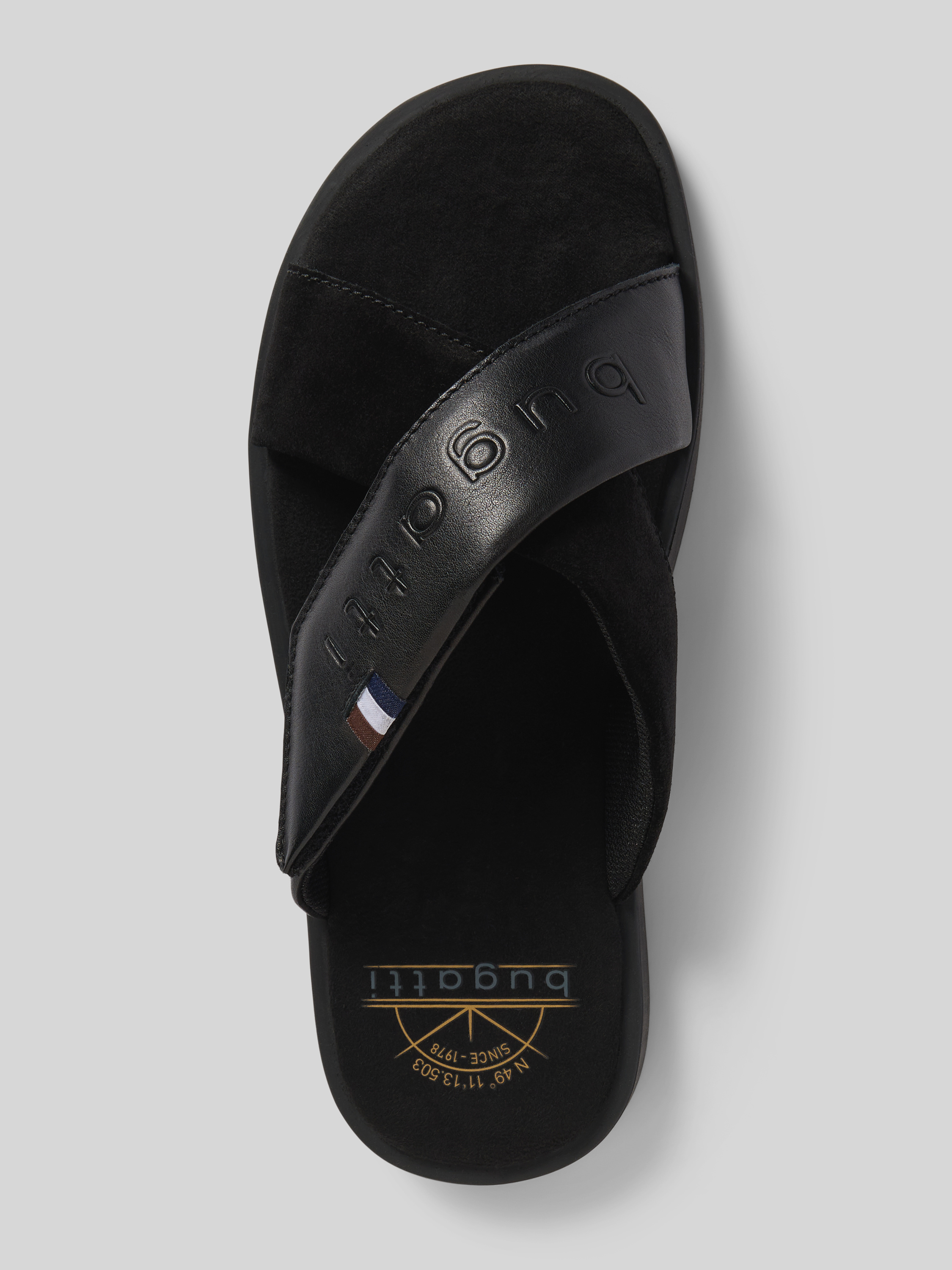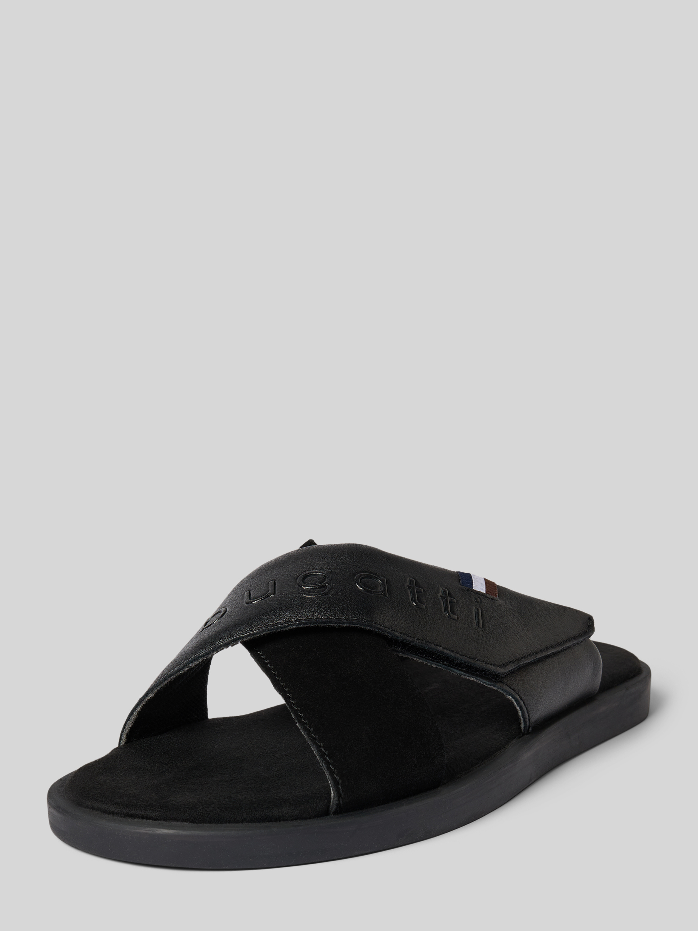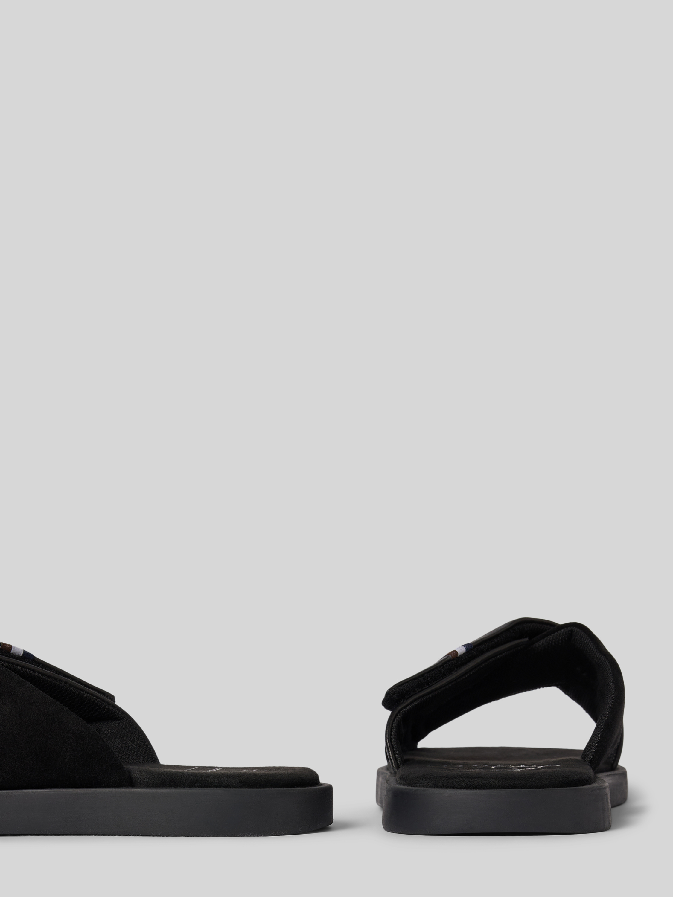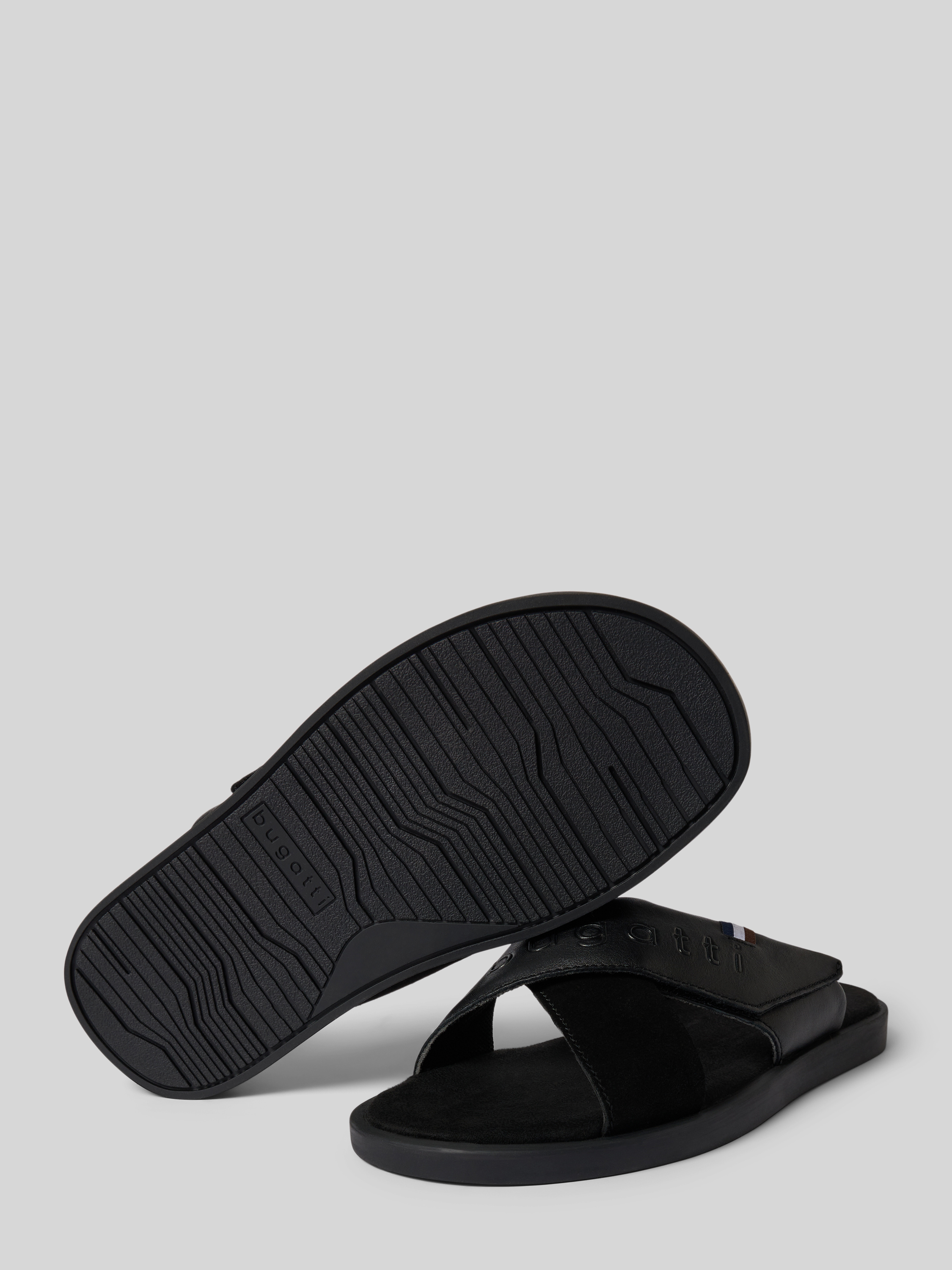 Leren sandalen met labelopschrift, model 'Derek' in zwart