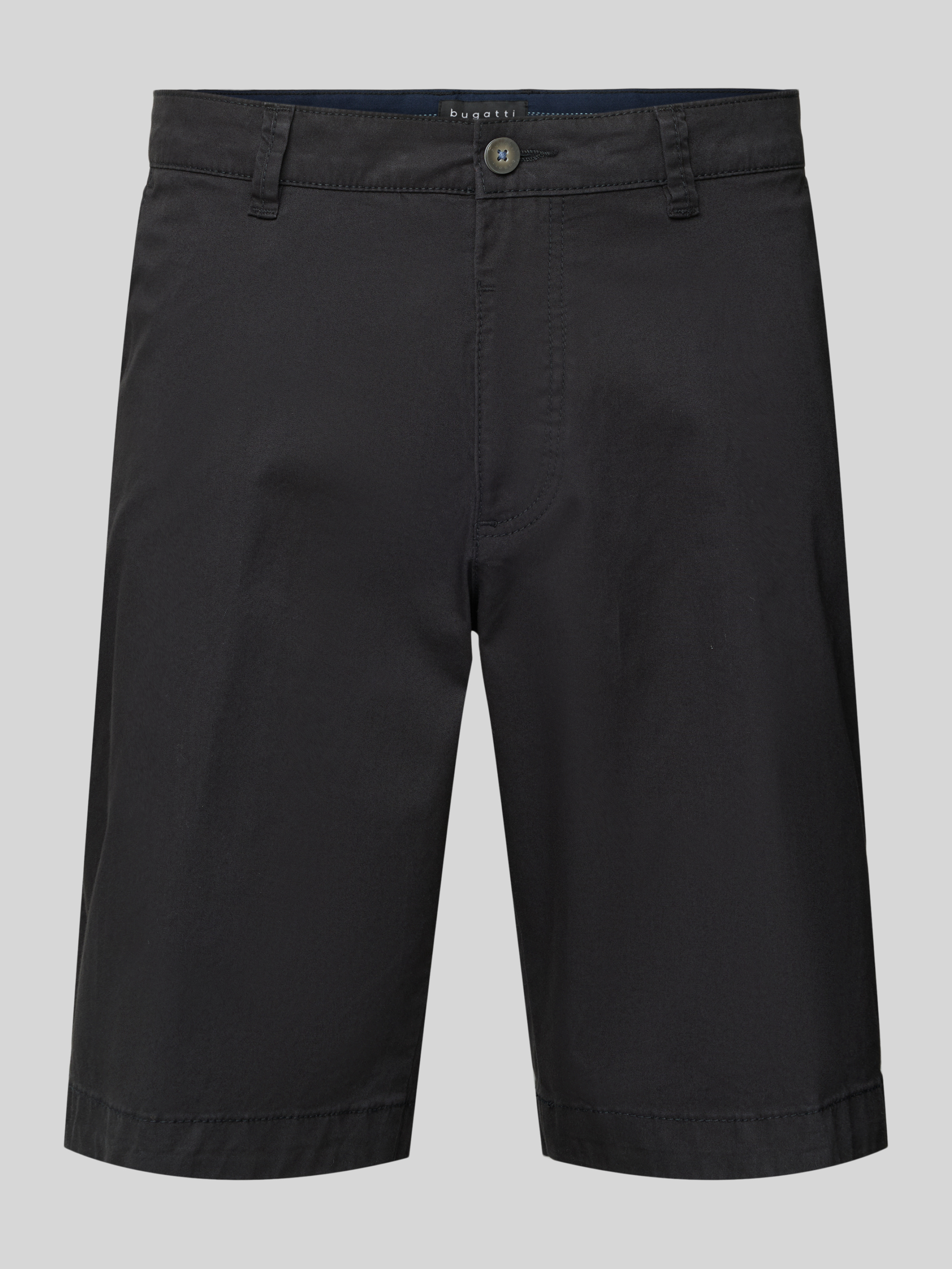 Regular fit korte chino met ceintuurlussen, model 'Flat' in zwart