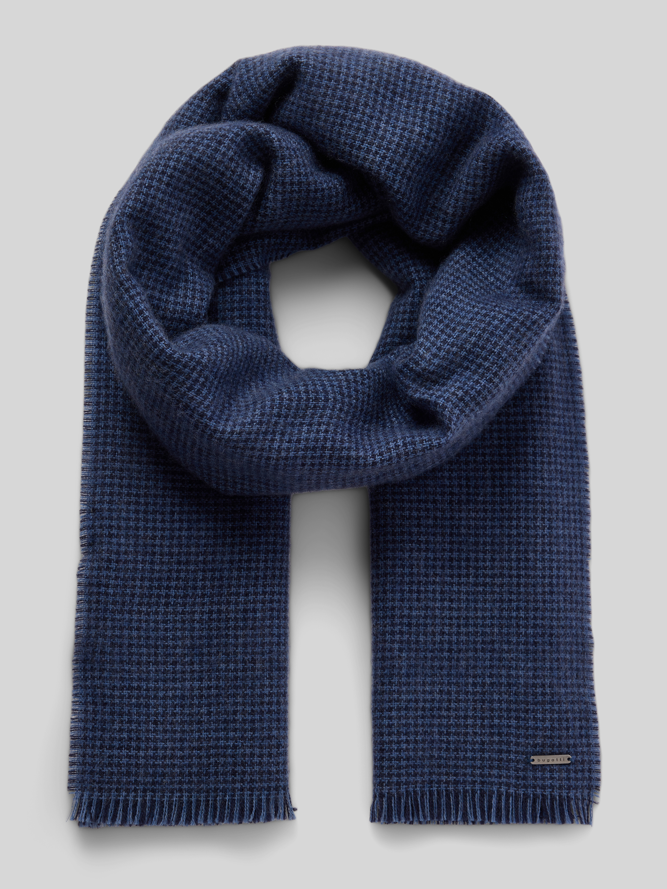 Sjaal van scheerwol met franjes in marineblauw