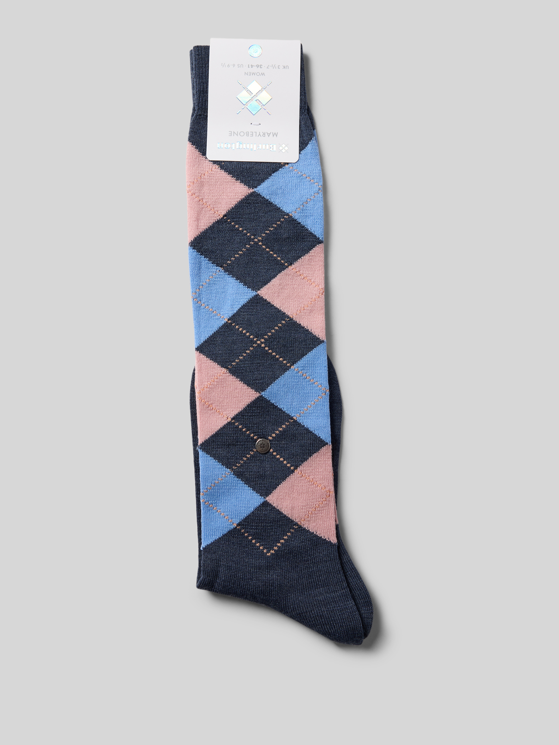 Kniekousen met argyleprint, model 'Marylbone' in blauw