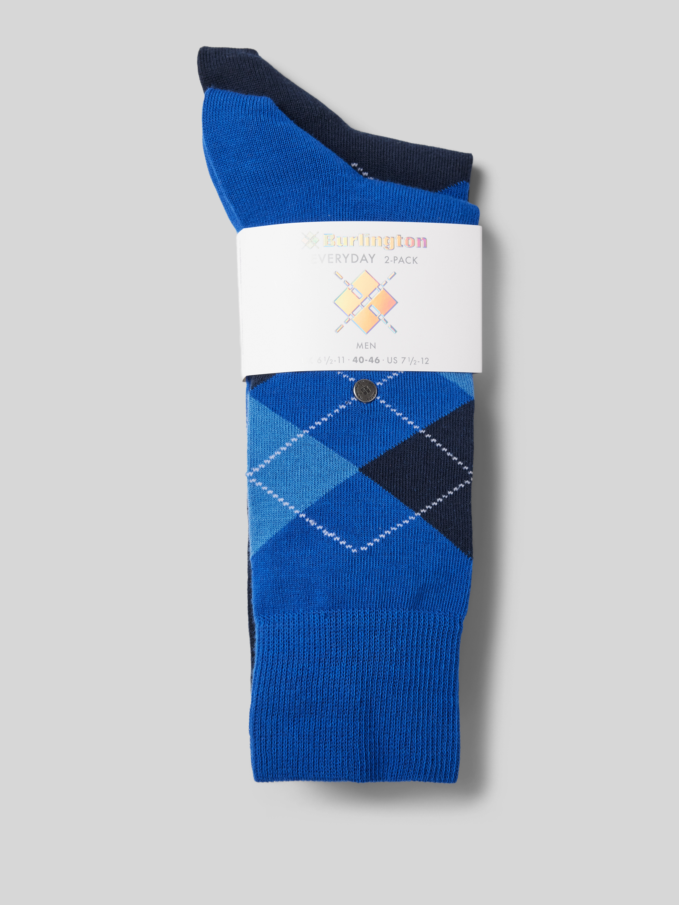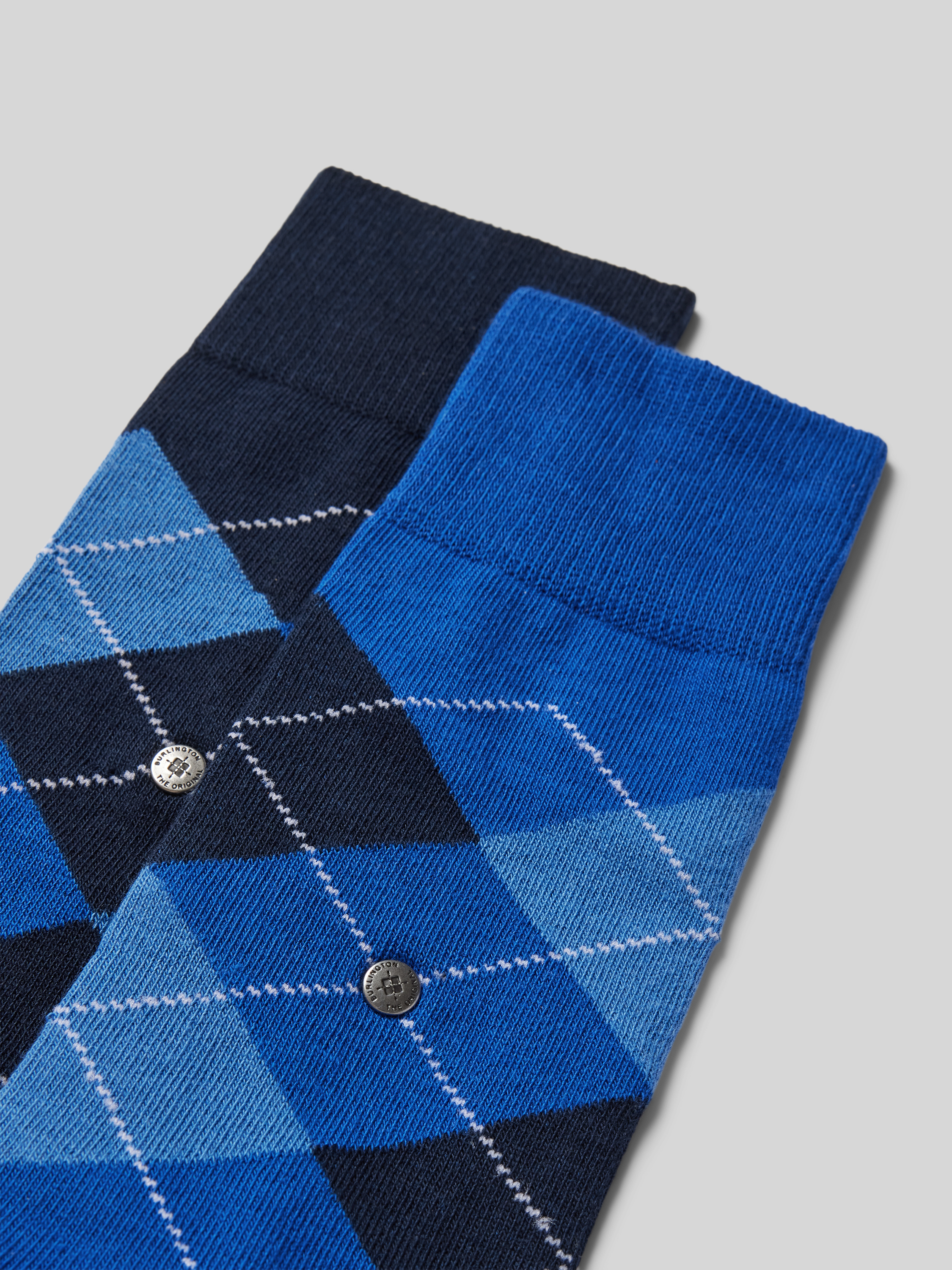 Sokken met labelapplicatie in een set van 2 paar, model 'Everyday Argyle' in donkerblauw