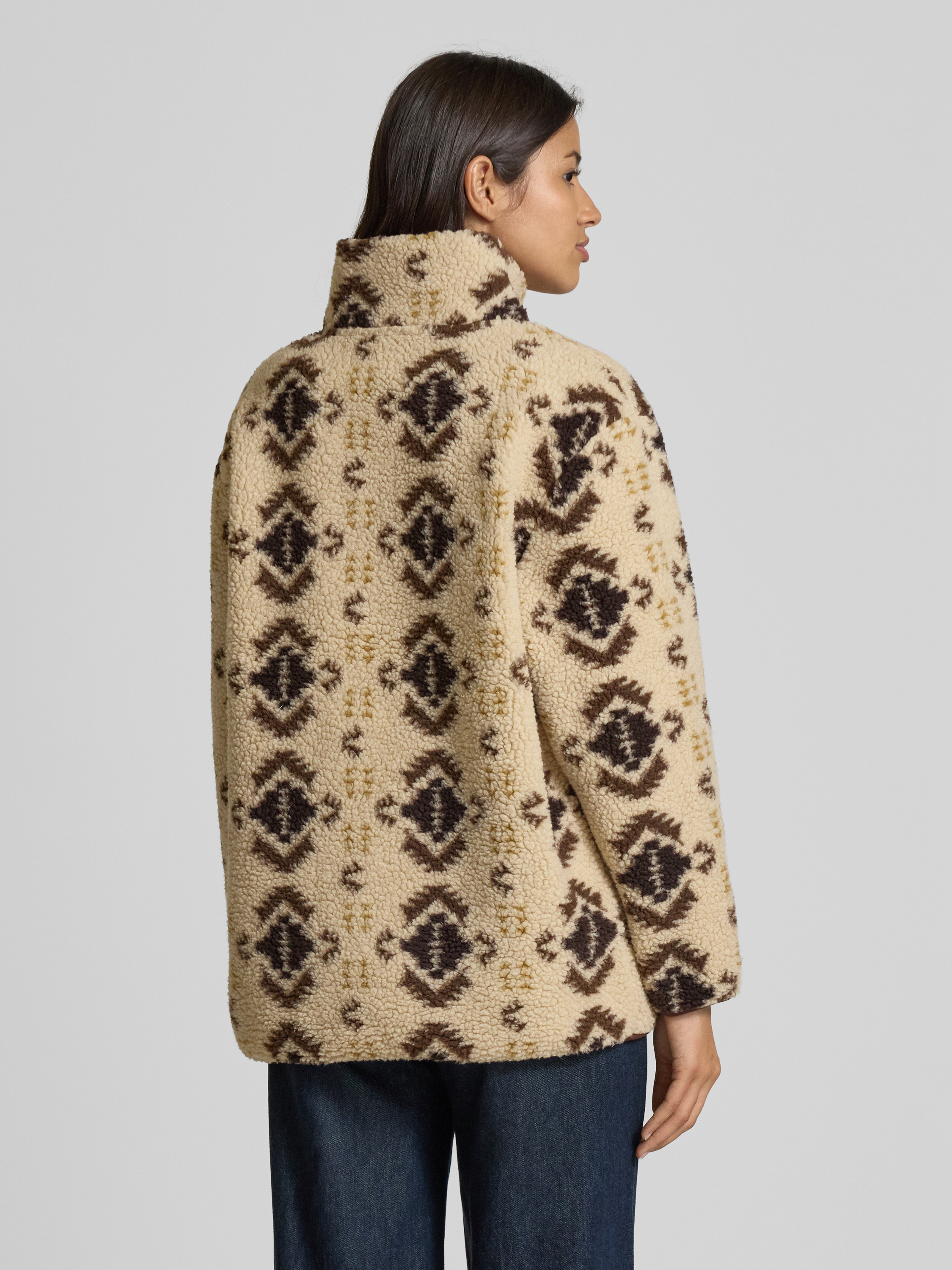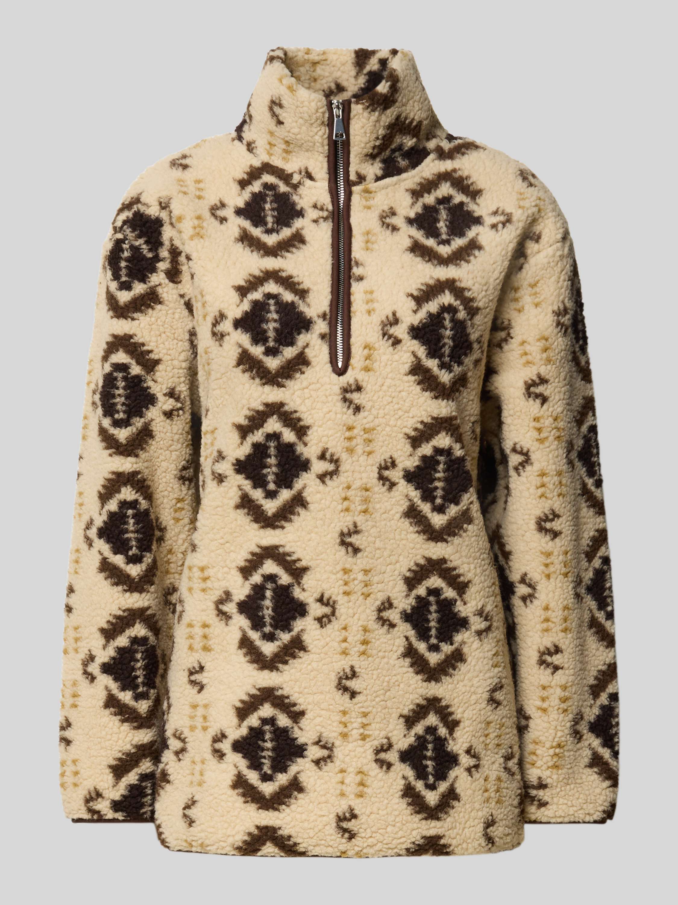 Fleecepullover met opstaande kraag, model 'Cillan Pile Jacket' in beige gemêleerd