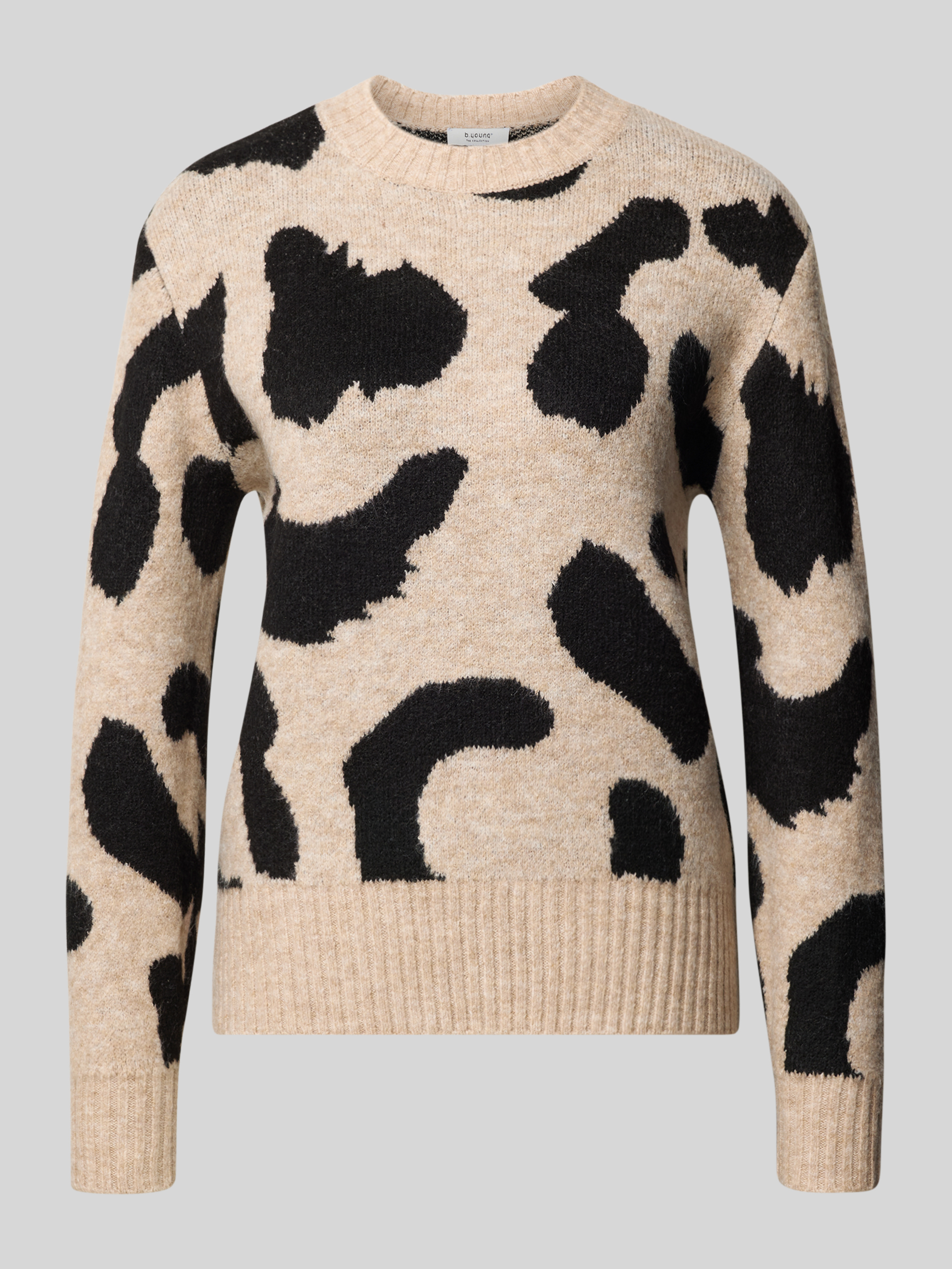 Gebreide pullover met ronde hals, model 'Minyax Leo Jumper' in beige gemêleerd