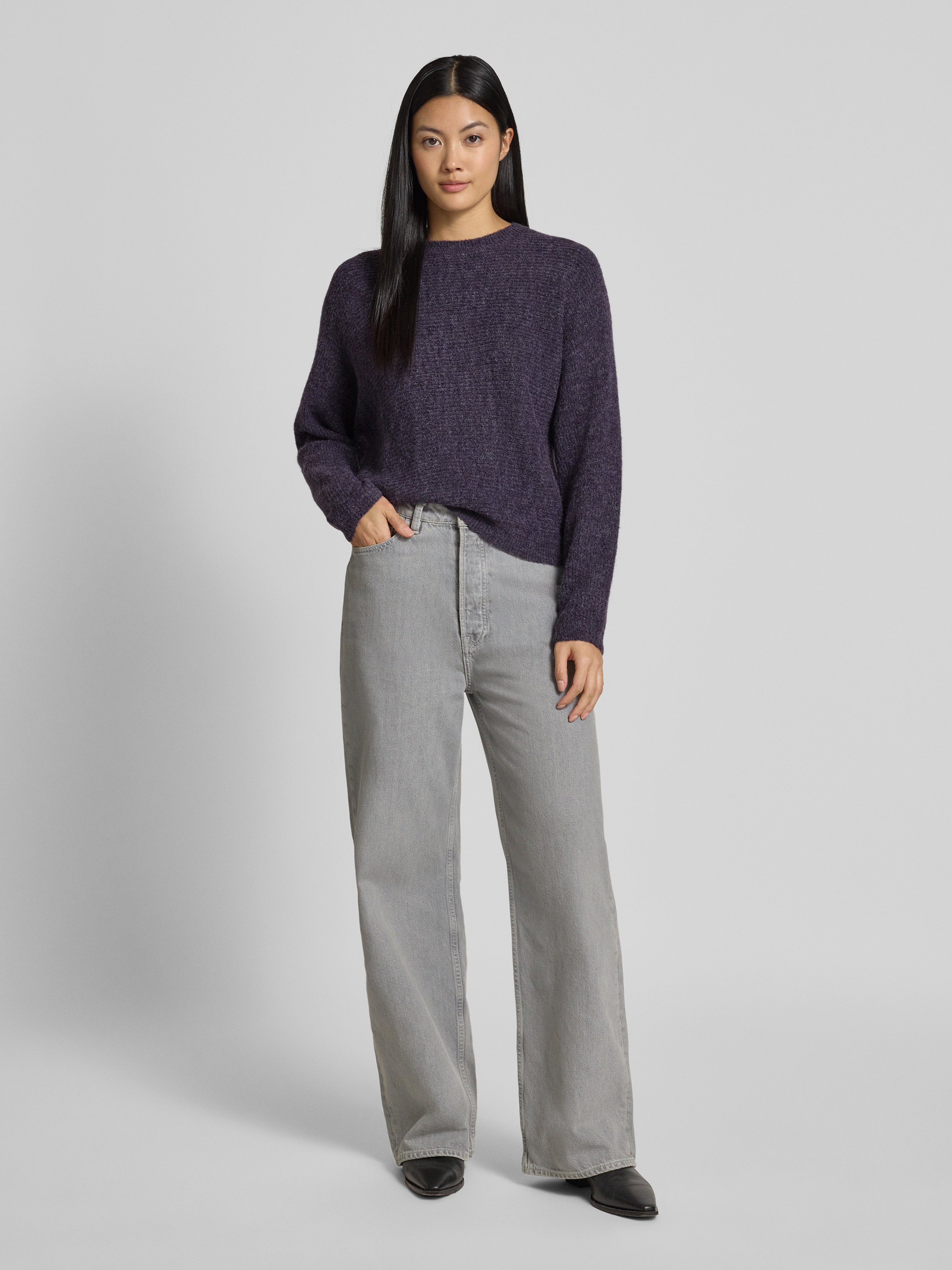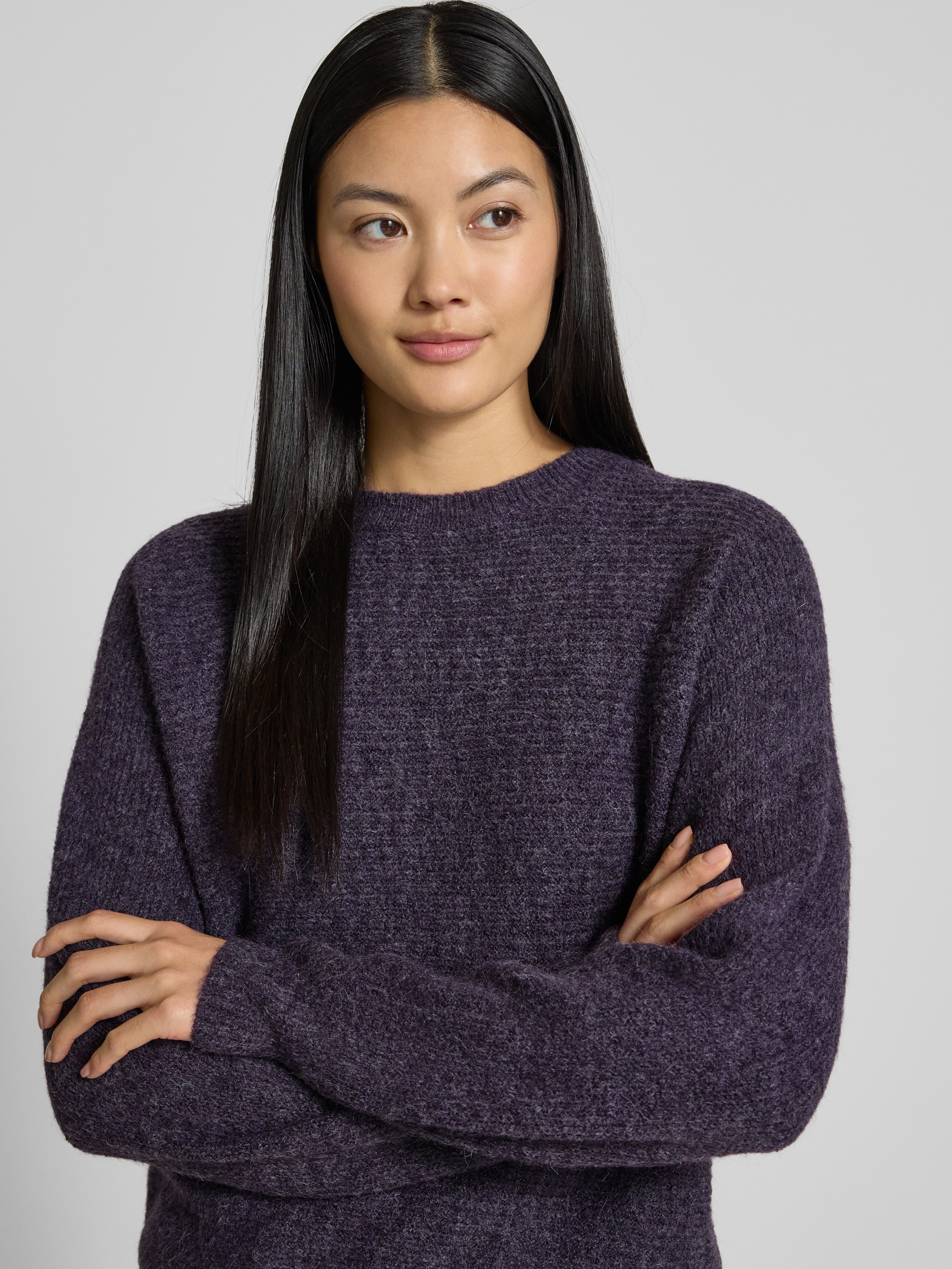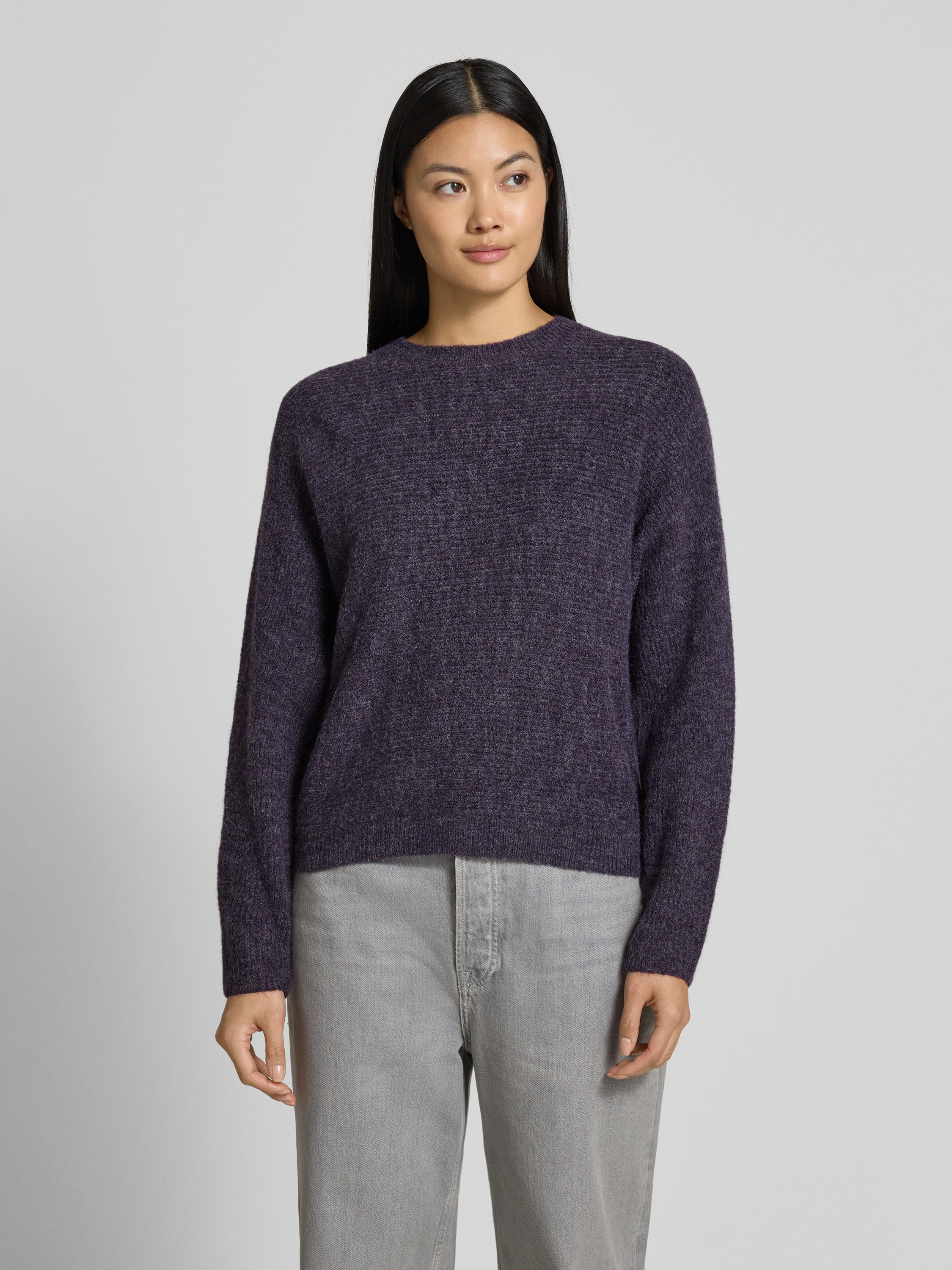 B.YoungGebreide pullover met ronde hals, model 'Monna' in prune