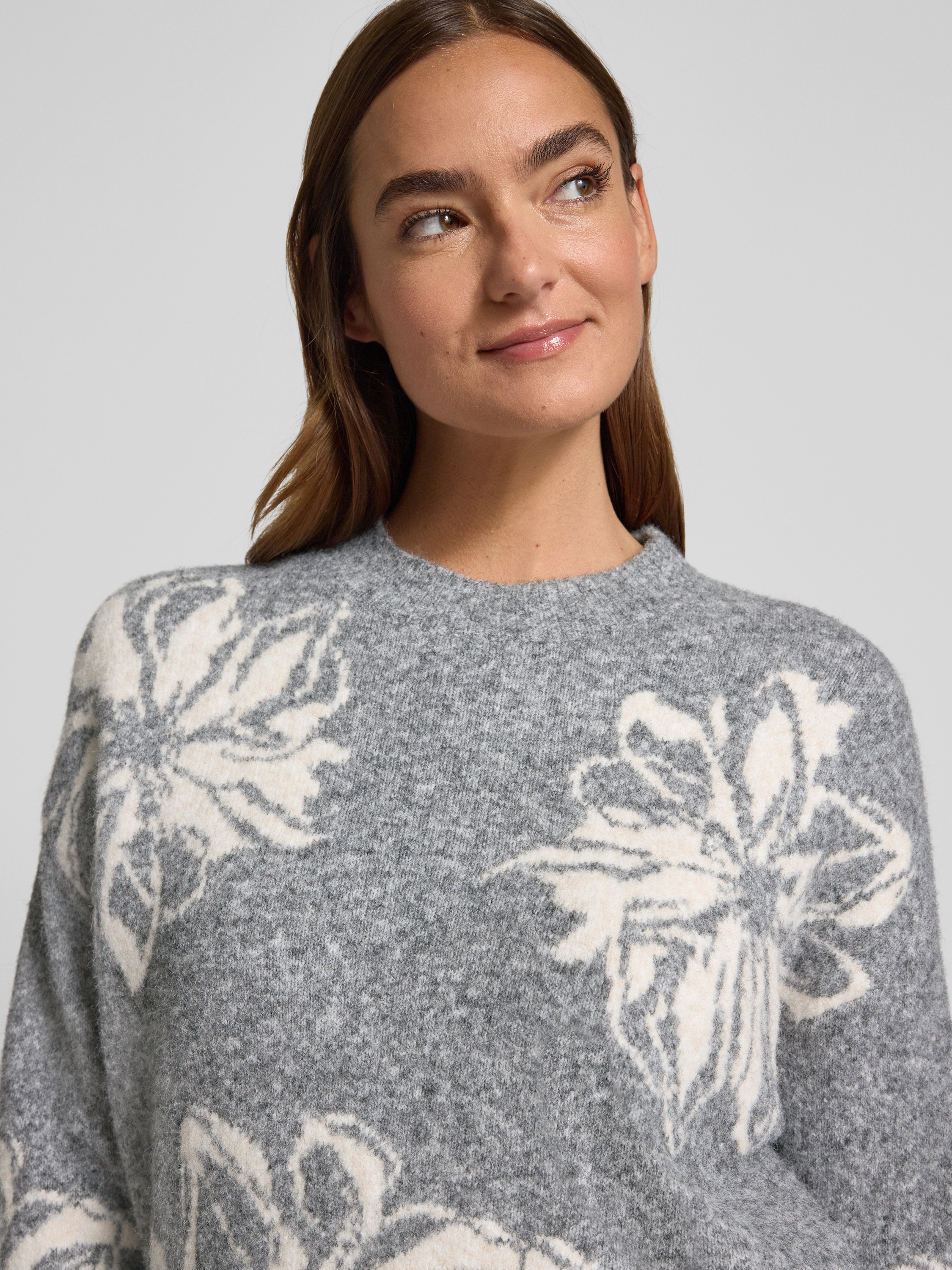 B.YoungGebreide pullover met ronde hals, model 'omea' in middengrijs gemêleerd