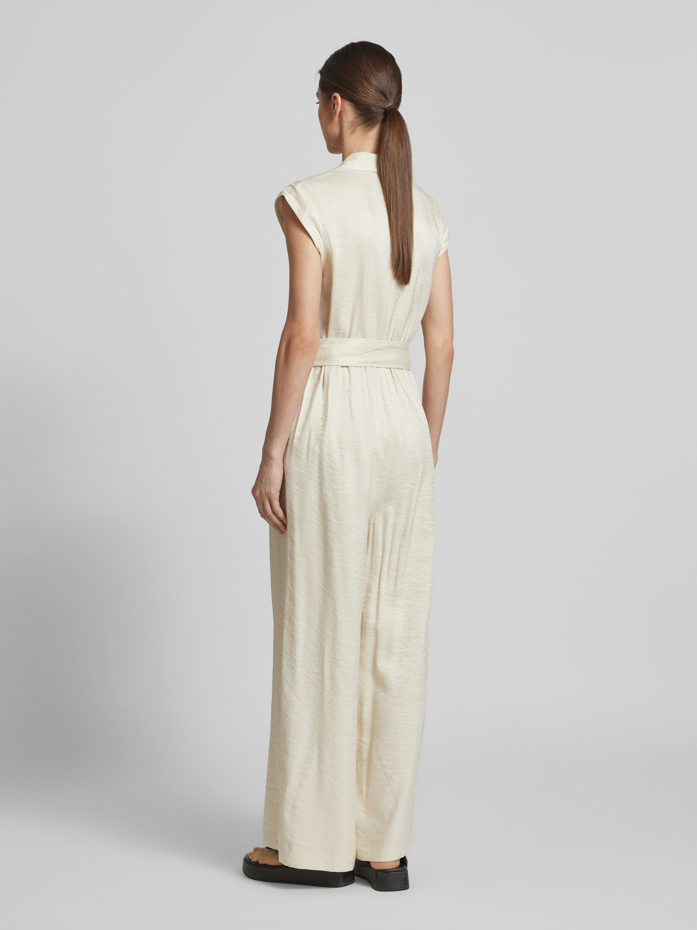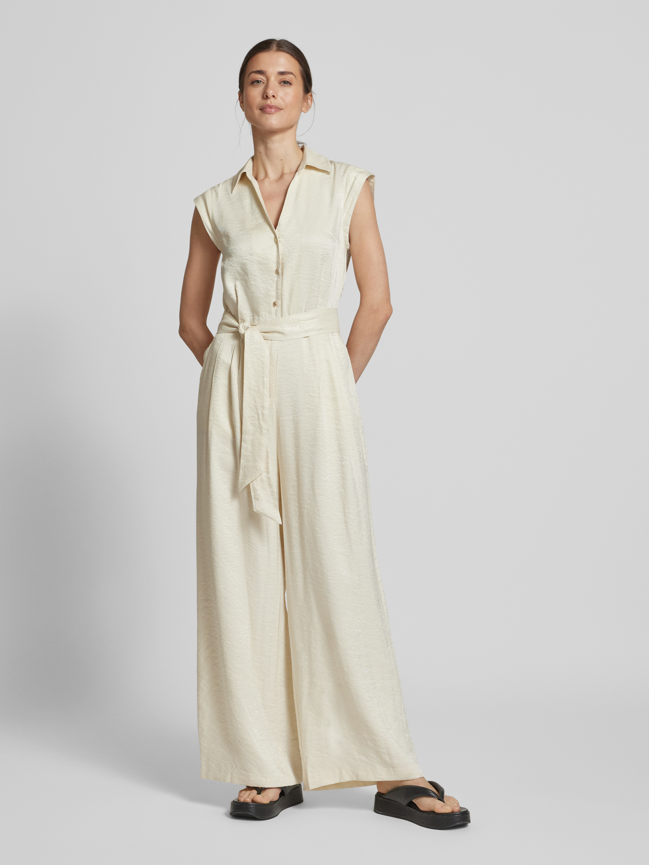Jumpsuit met korte knoopsluiting en strikceintuur, model 'DONNI' in zand