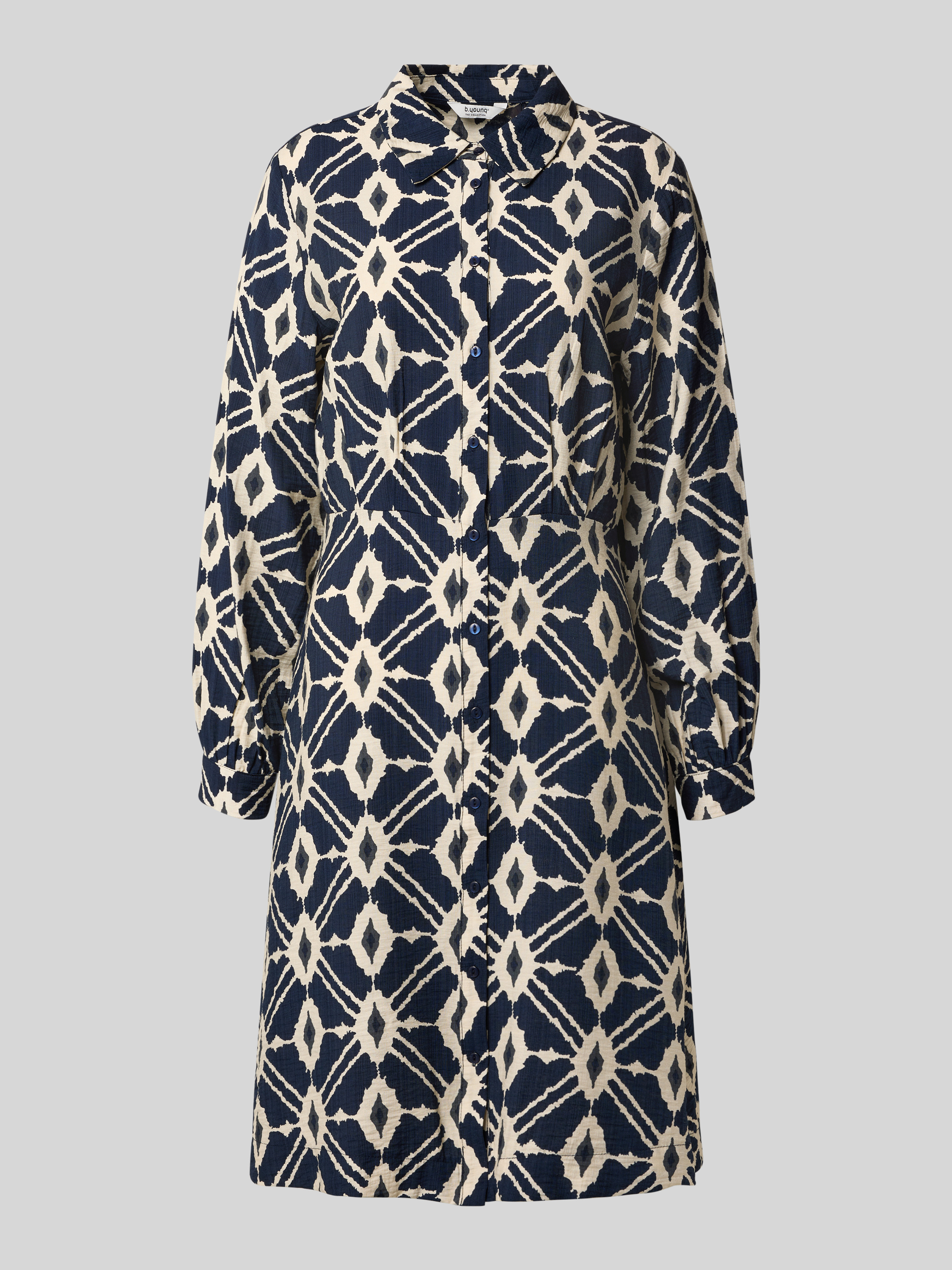 Knielange jurk met knoopsluiting, model 'Kaia' in blauw