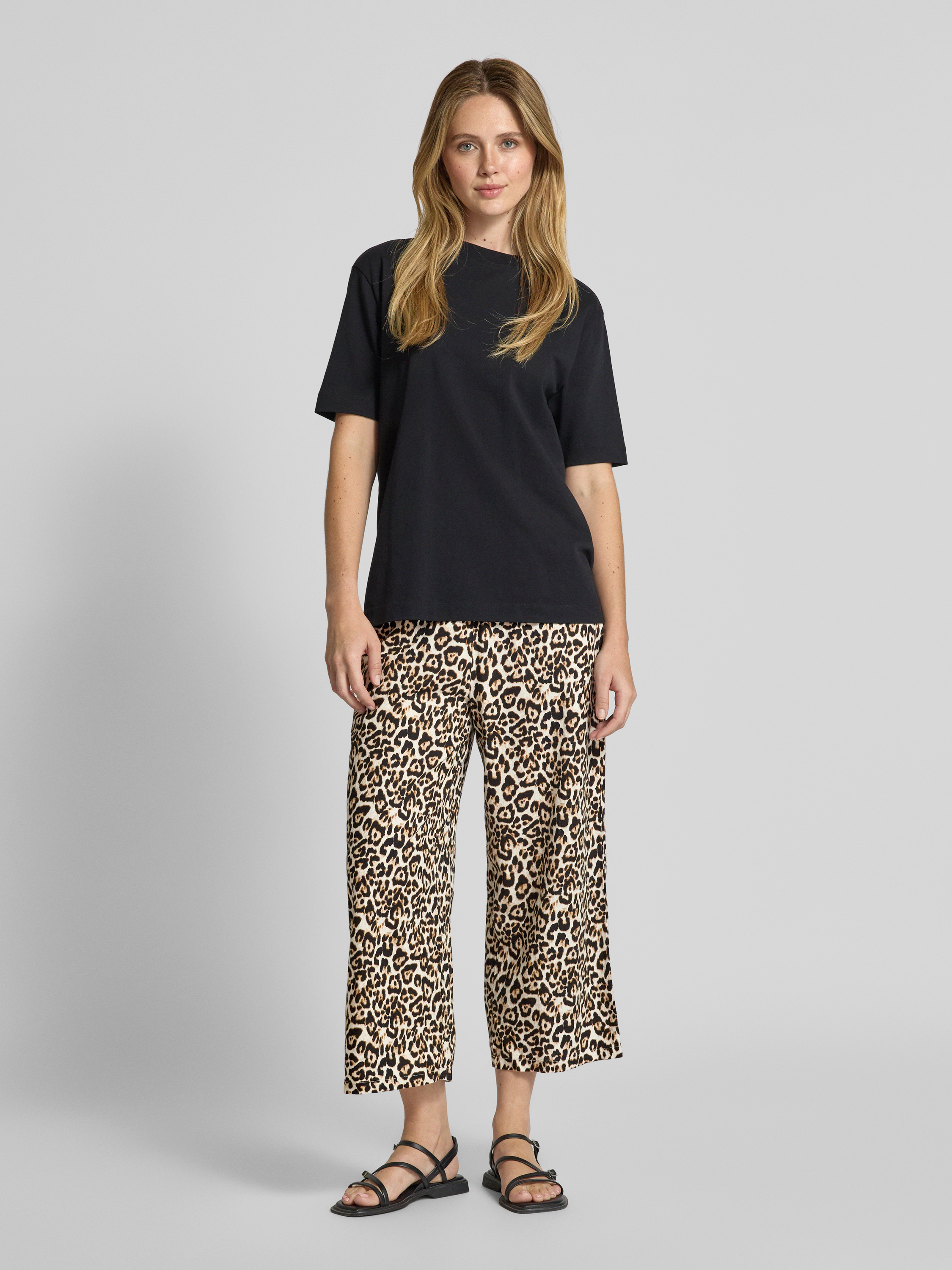 Linnen broek met elastische band, model 'FALAKKA' in zwart