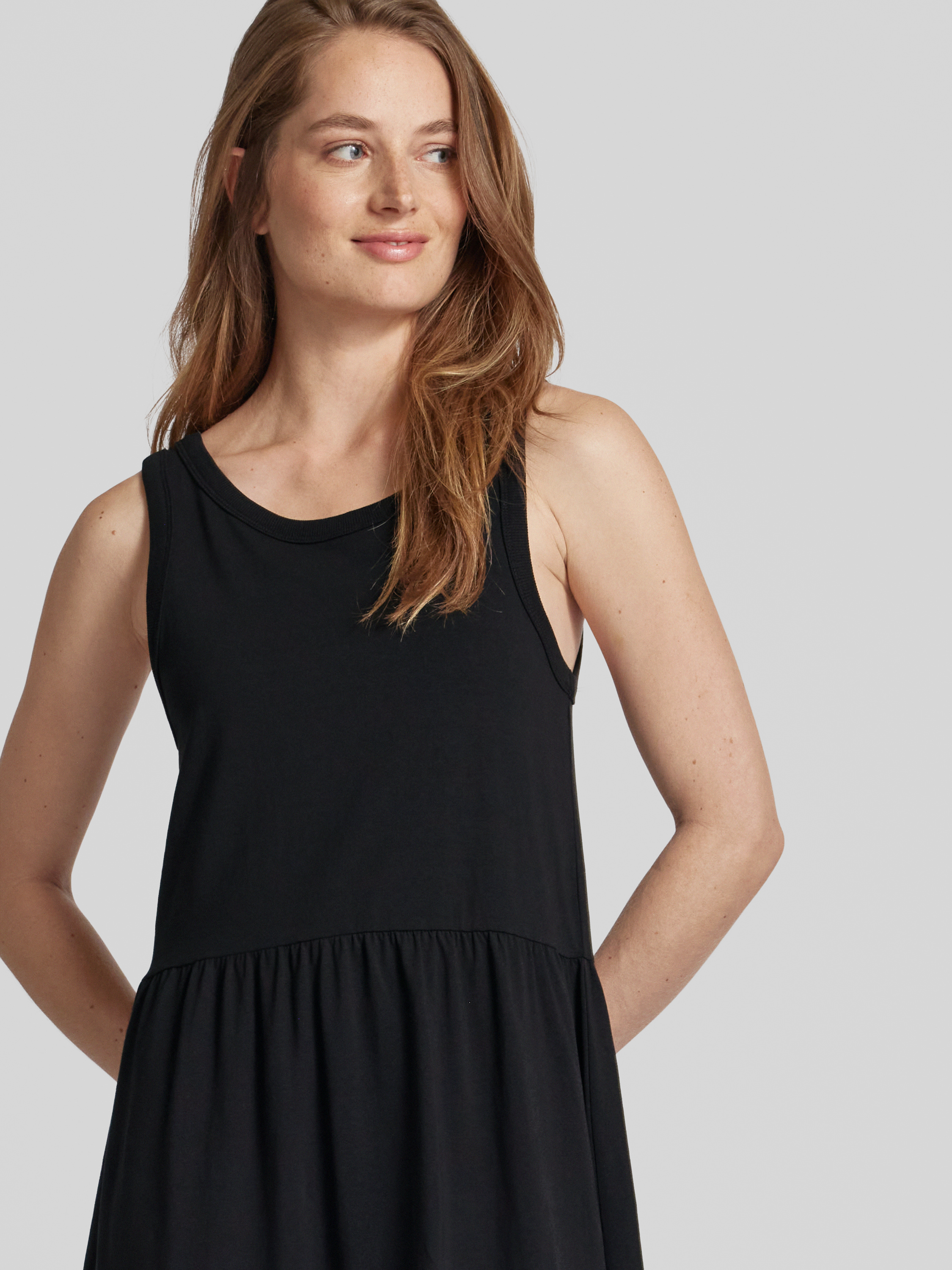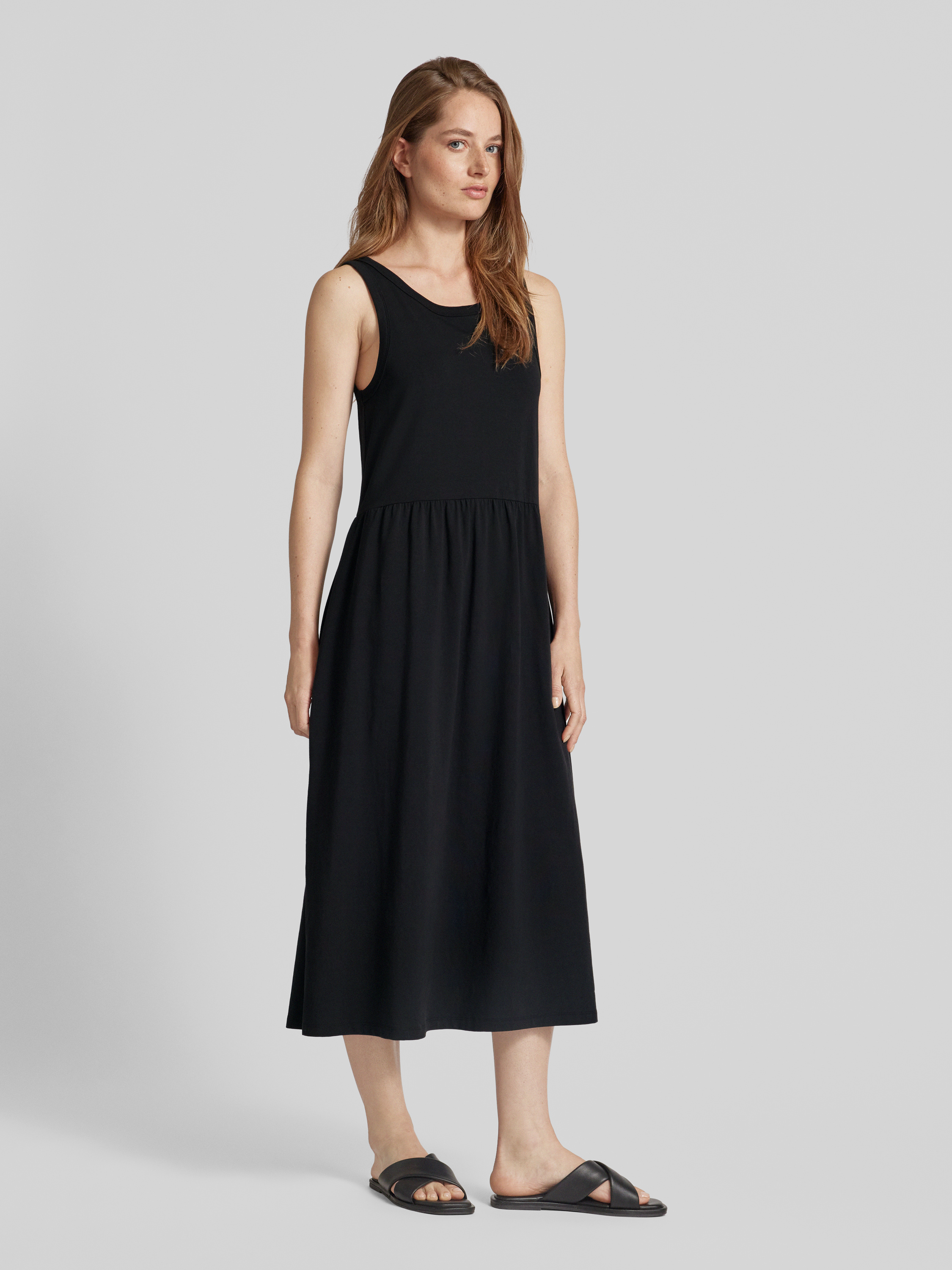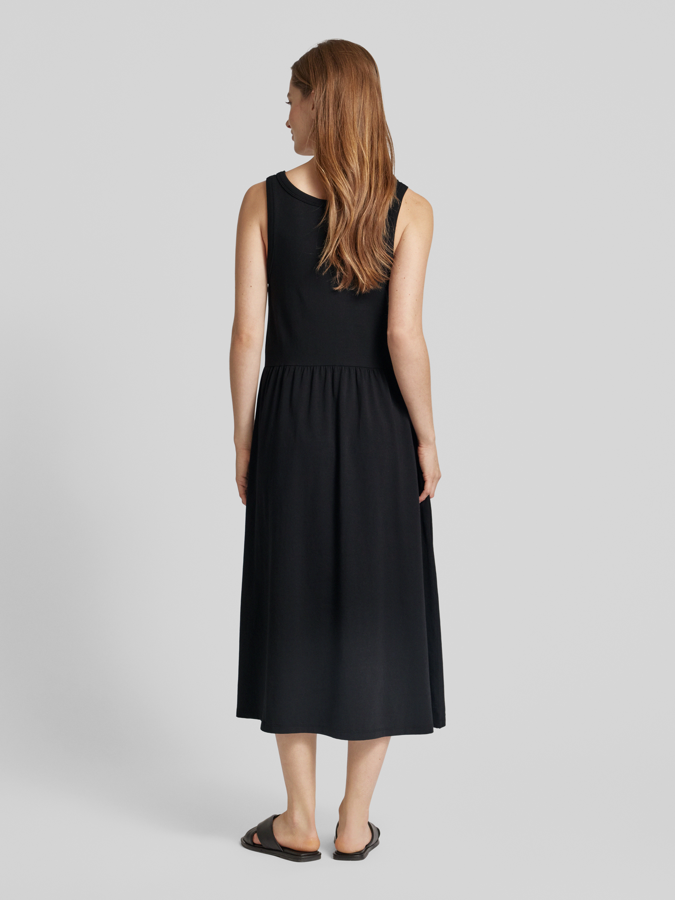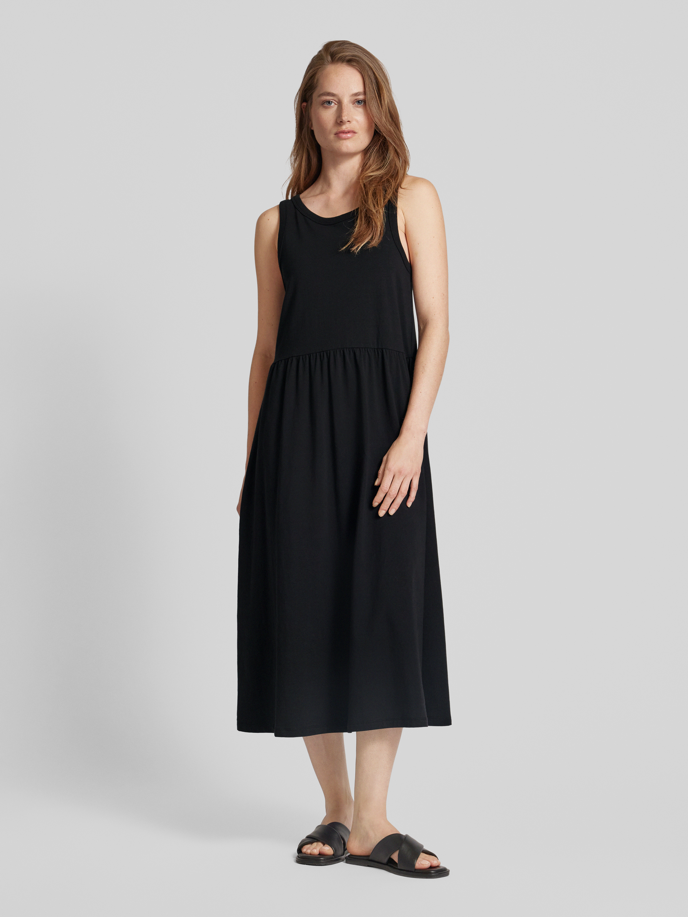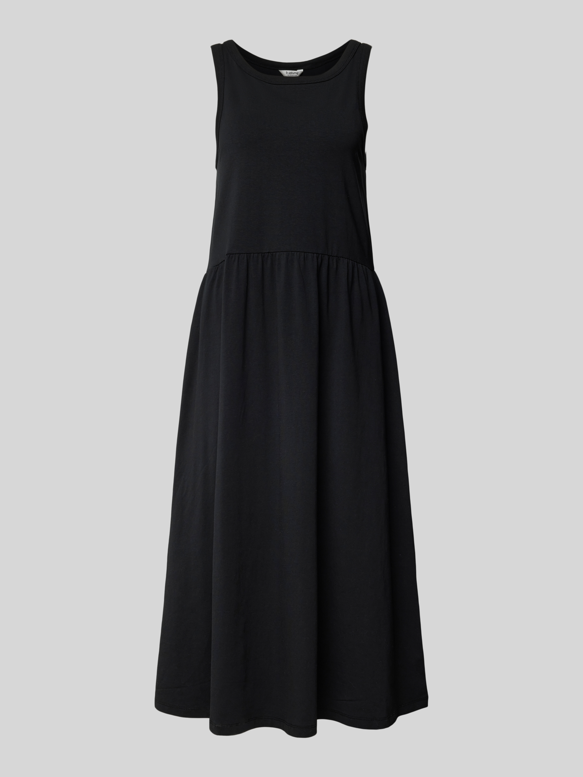 Midi-jurk met geribde ronde hals, model 'Pandinna' in zwart