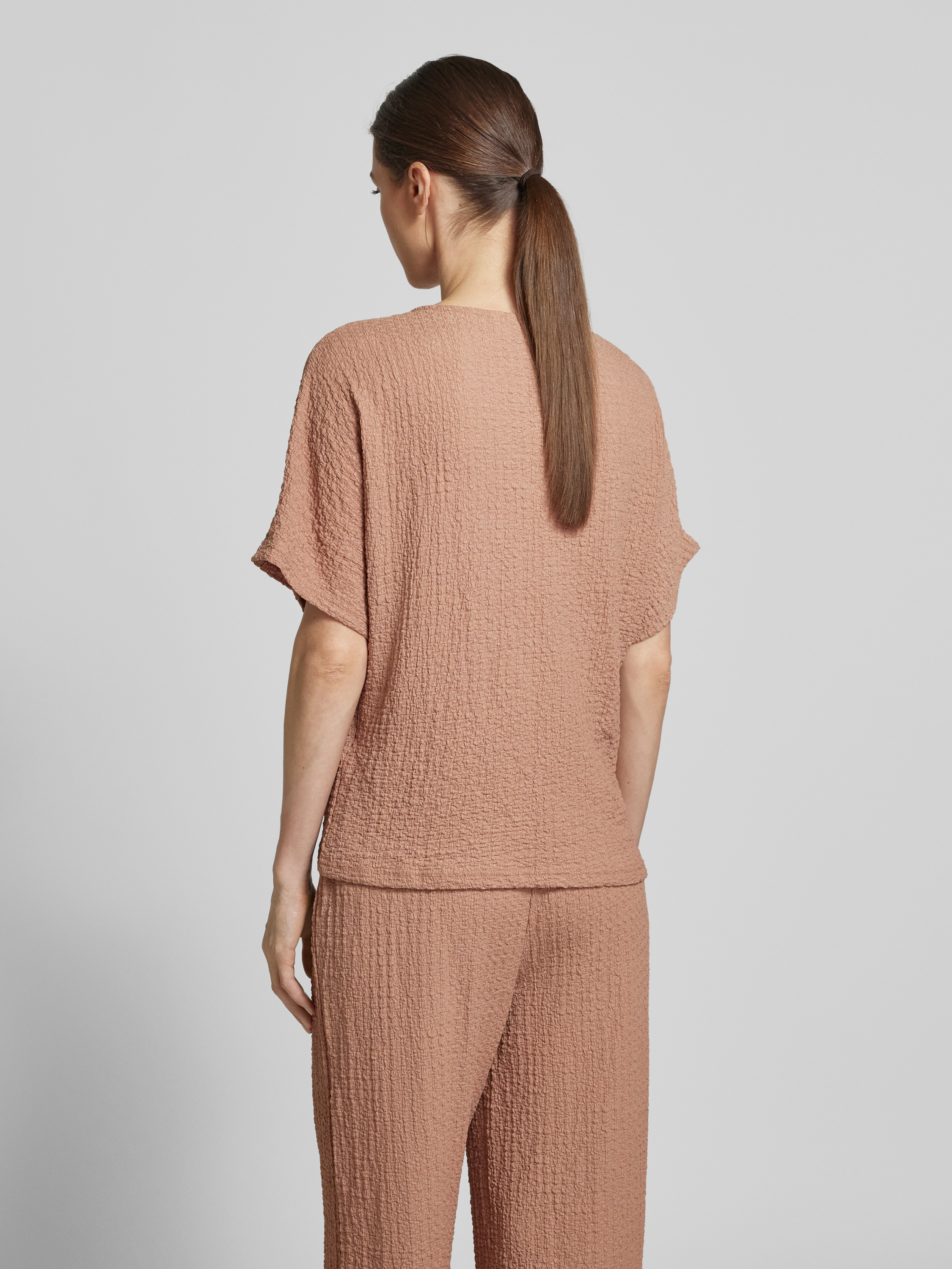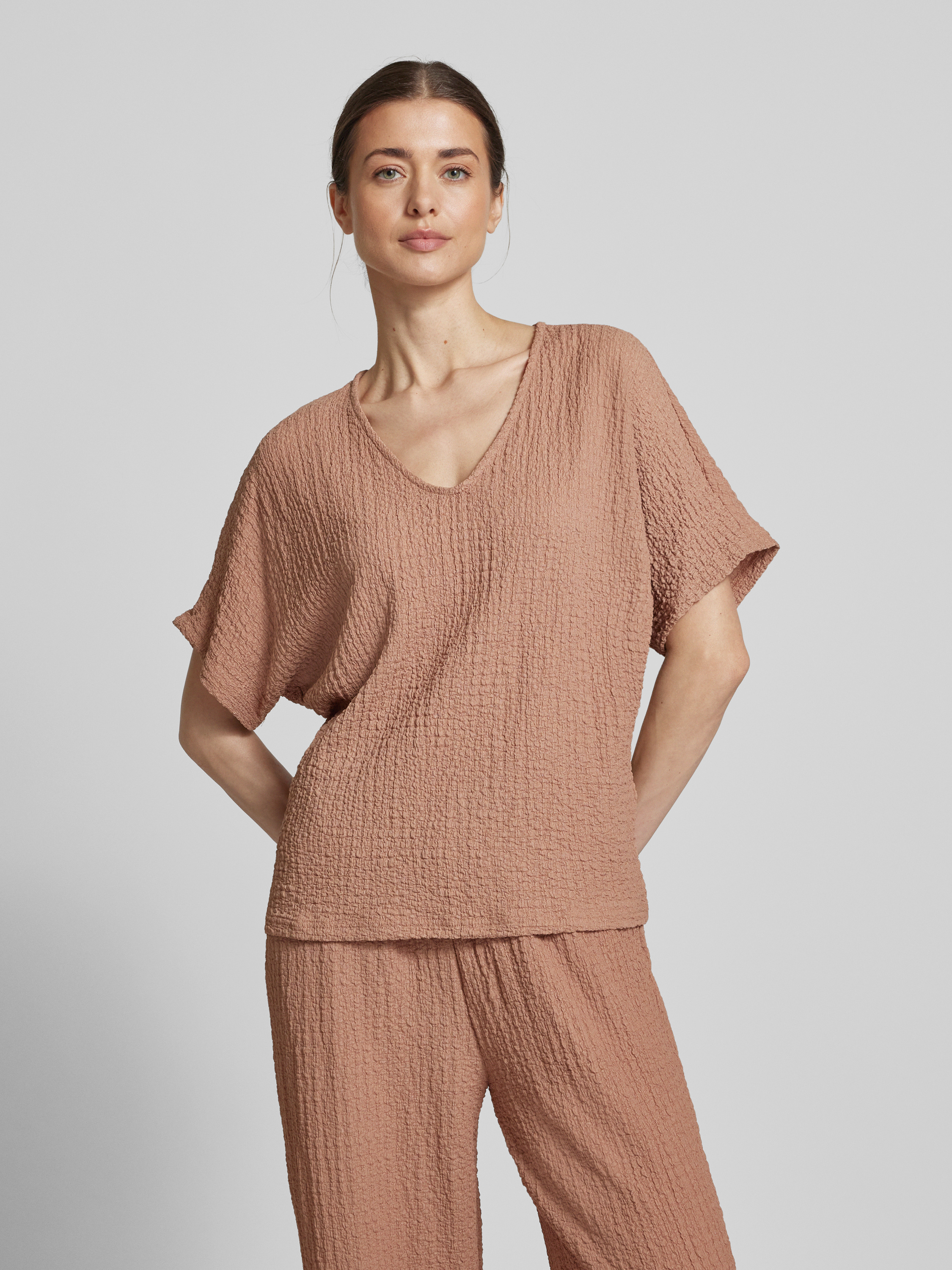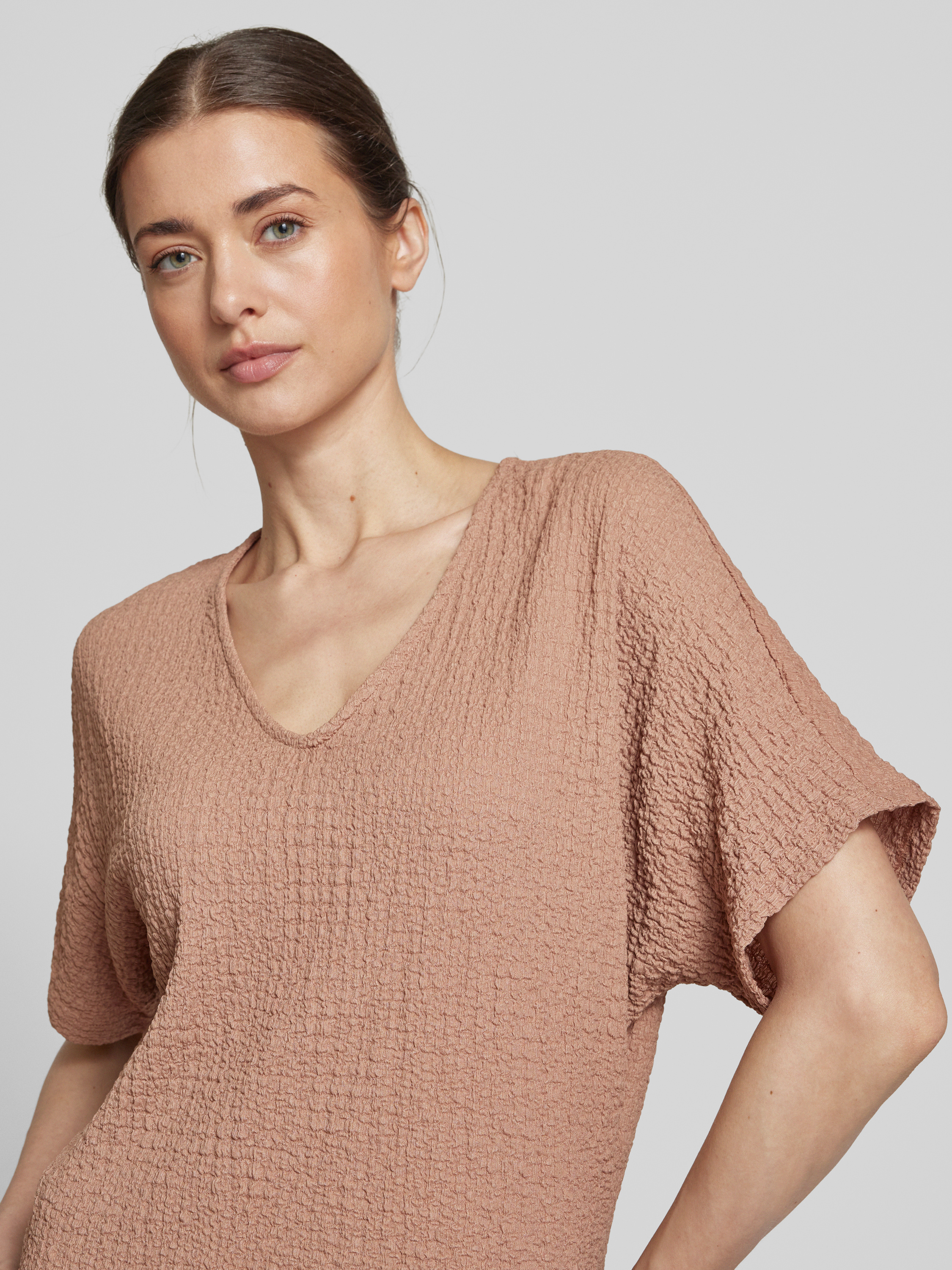 T-shirt met V-hals, model 'UMMI' in roestrood