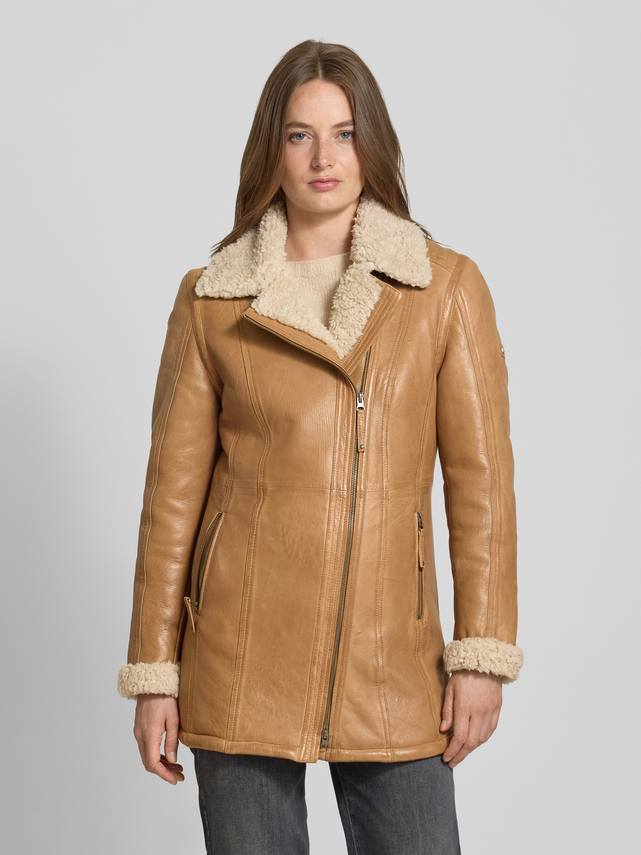 Leren jack met teddybont en tweewegsritssluiting in beige