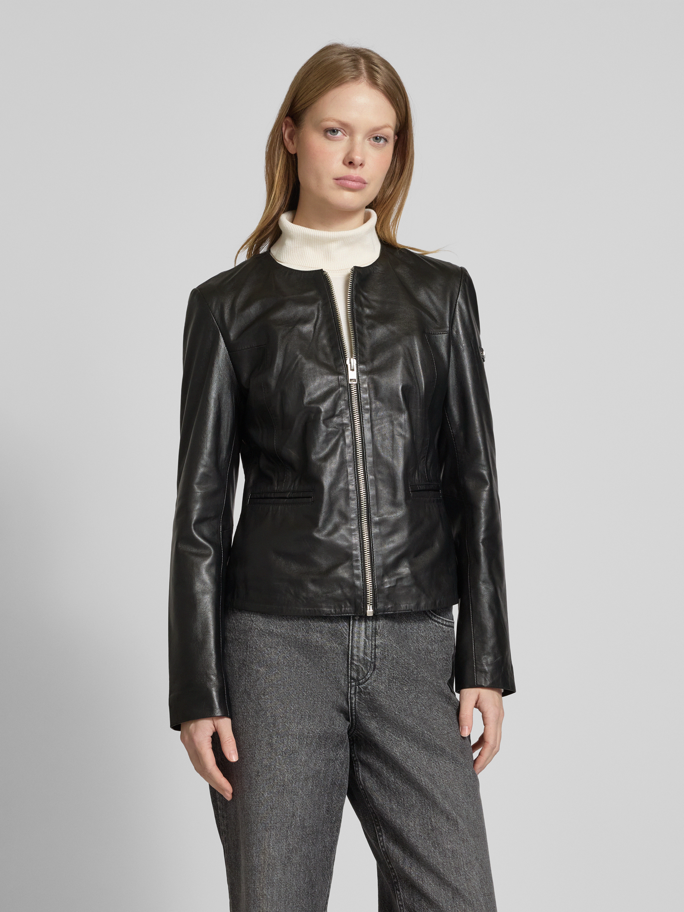 Shaped fit leren jas in echt lamsnappa in zwart