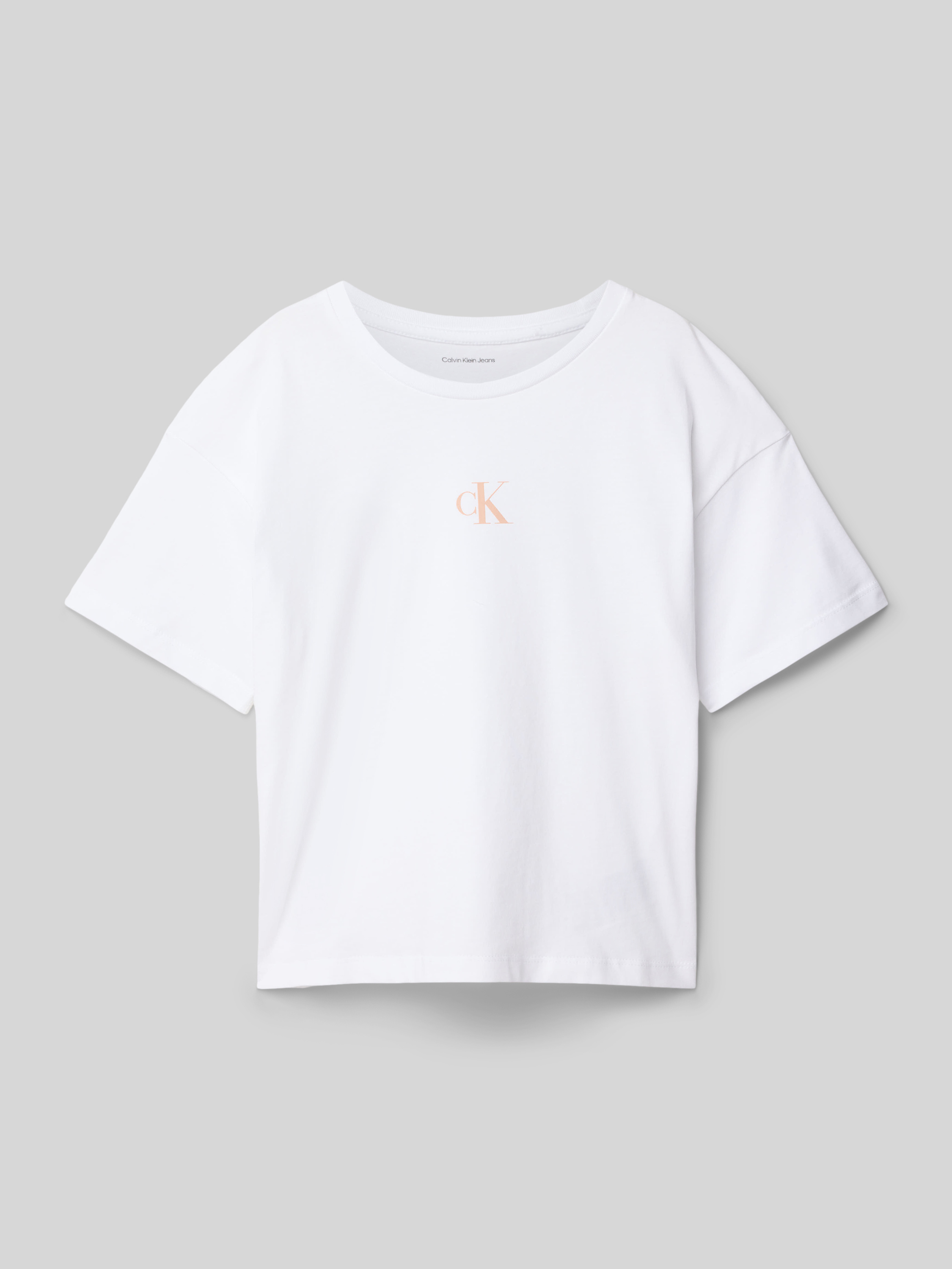 Boxy fit T-shirt met logoprint en ronde hals in wit