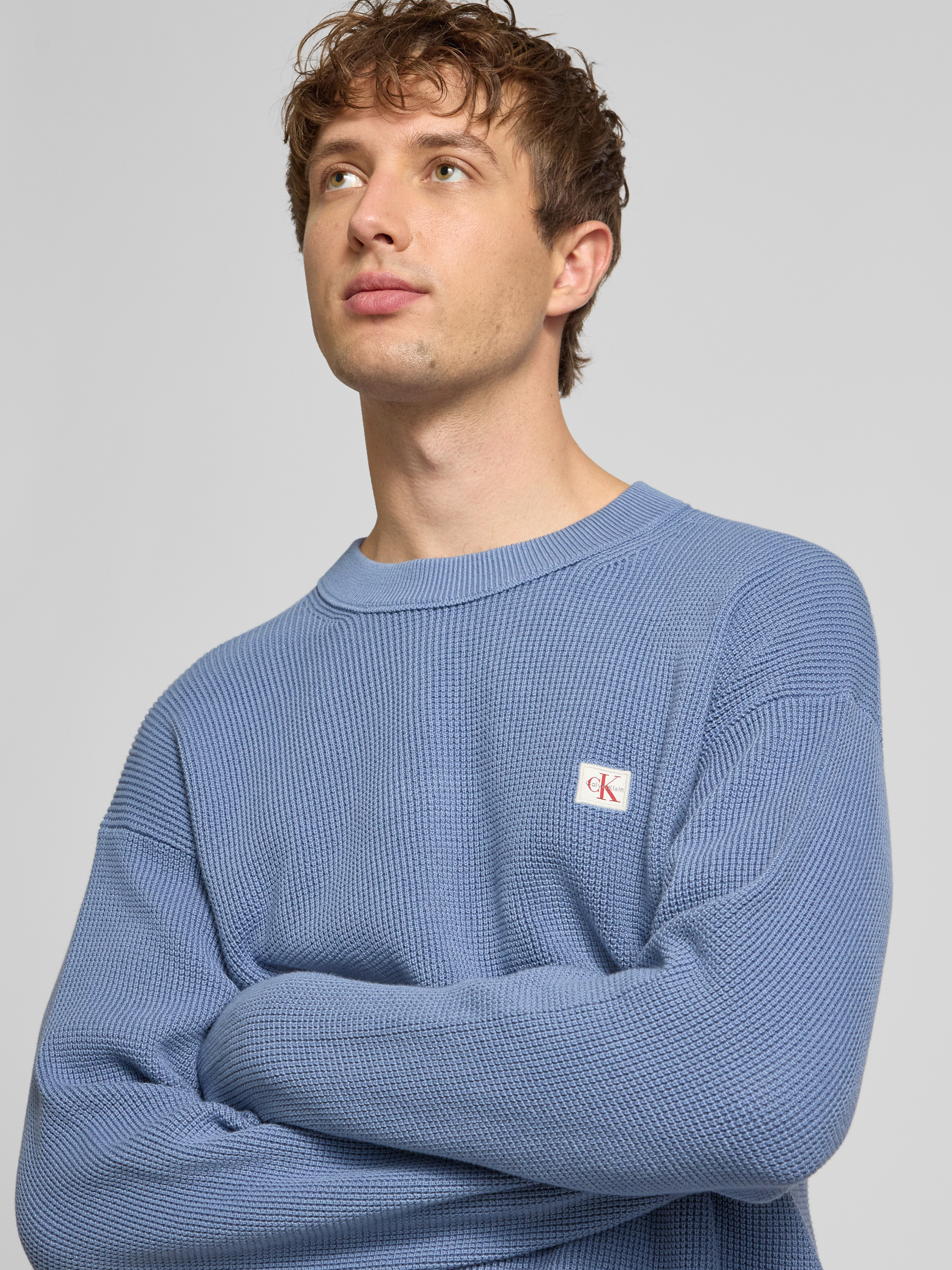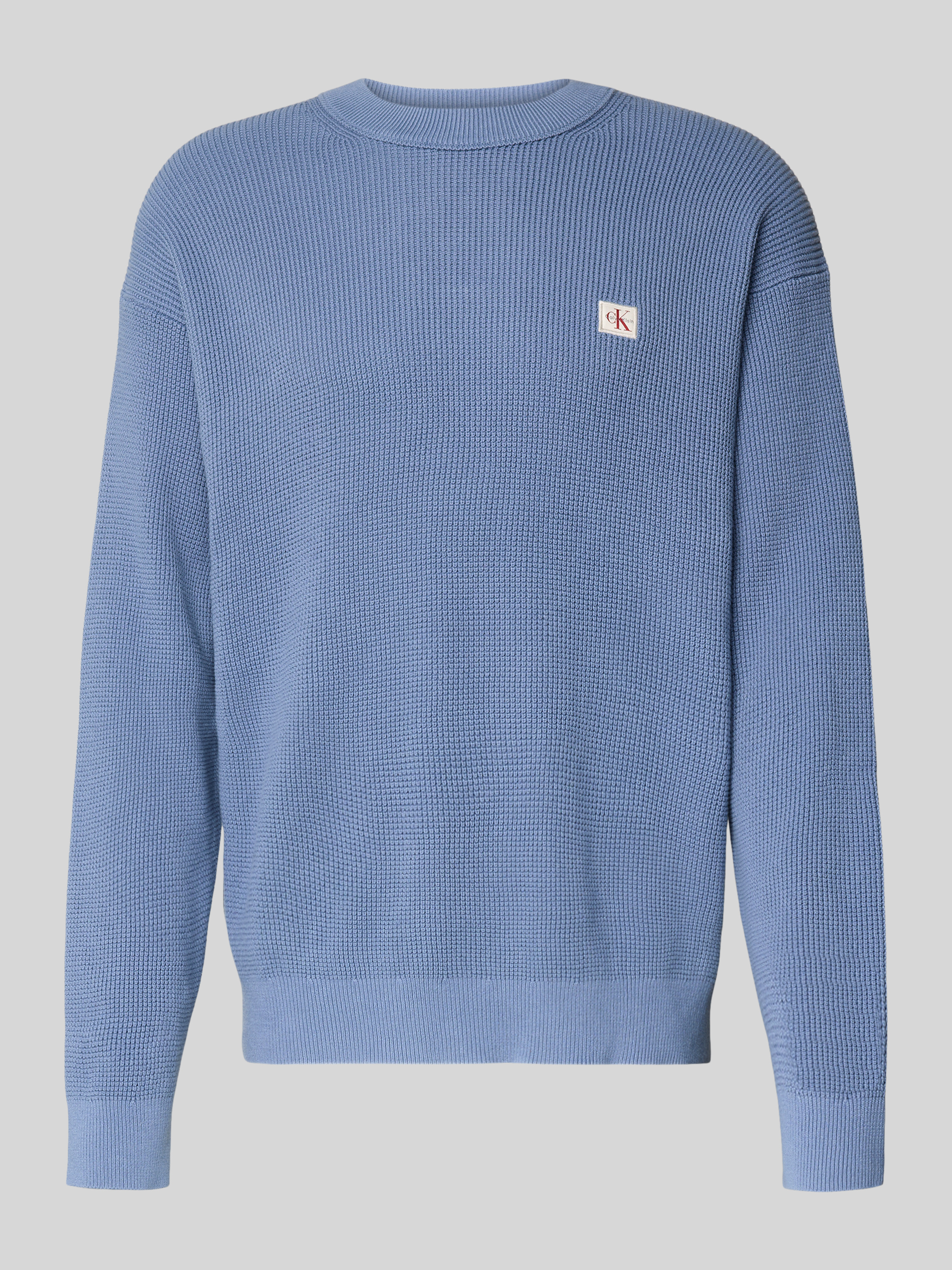 Gebreide pullover met structuurmotief en ronde hals in bleu
