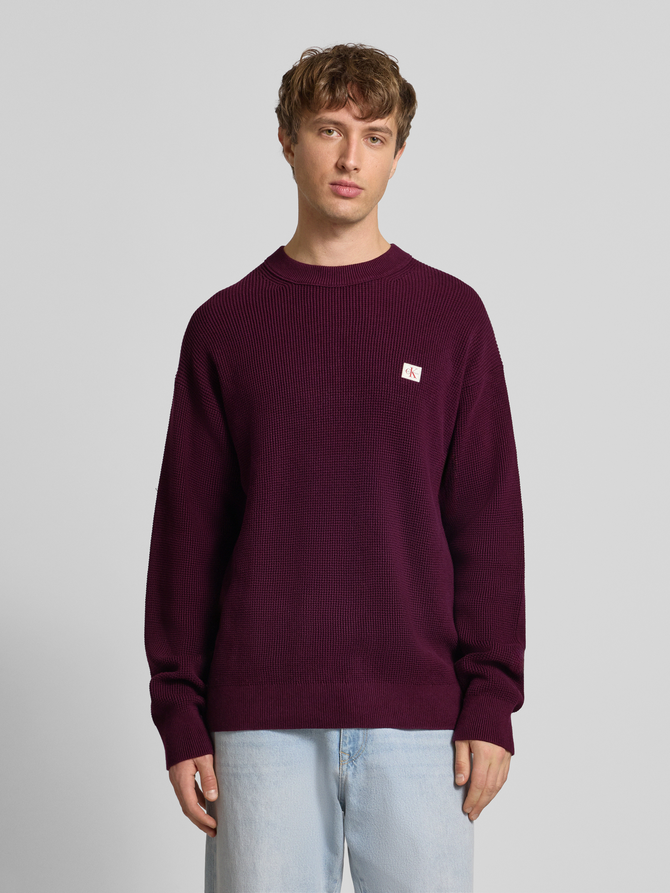 Gebreide pullover met structuurmotief en ronde hals in bordeaux