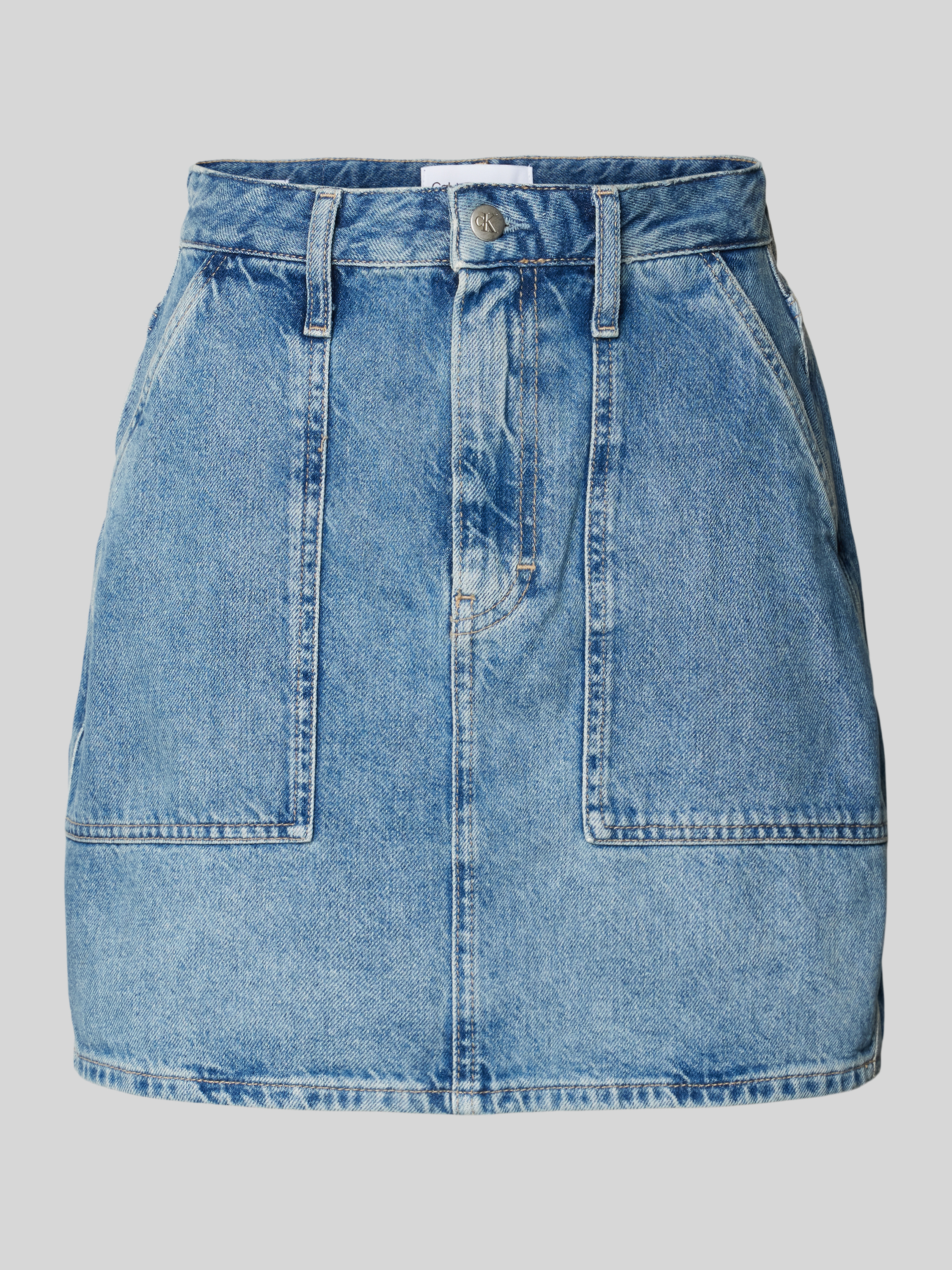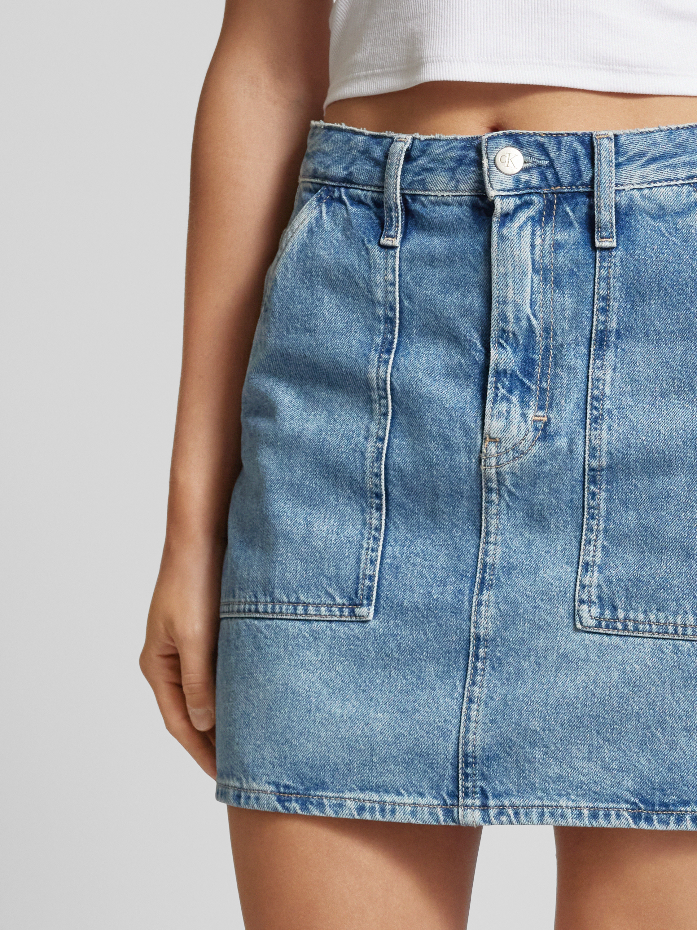 Jeansrok met steekzakken opzij, model 'LINE' in jeansblauw