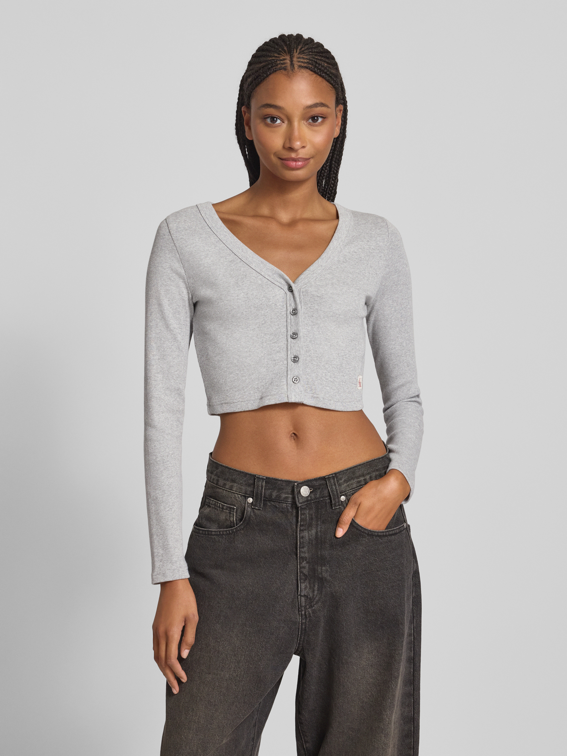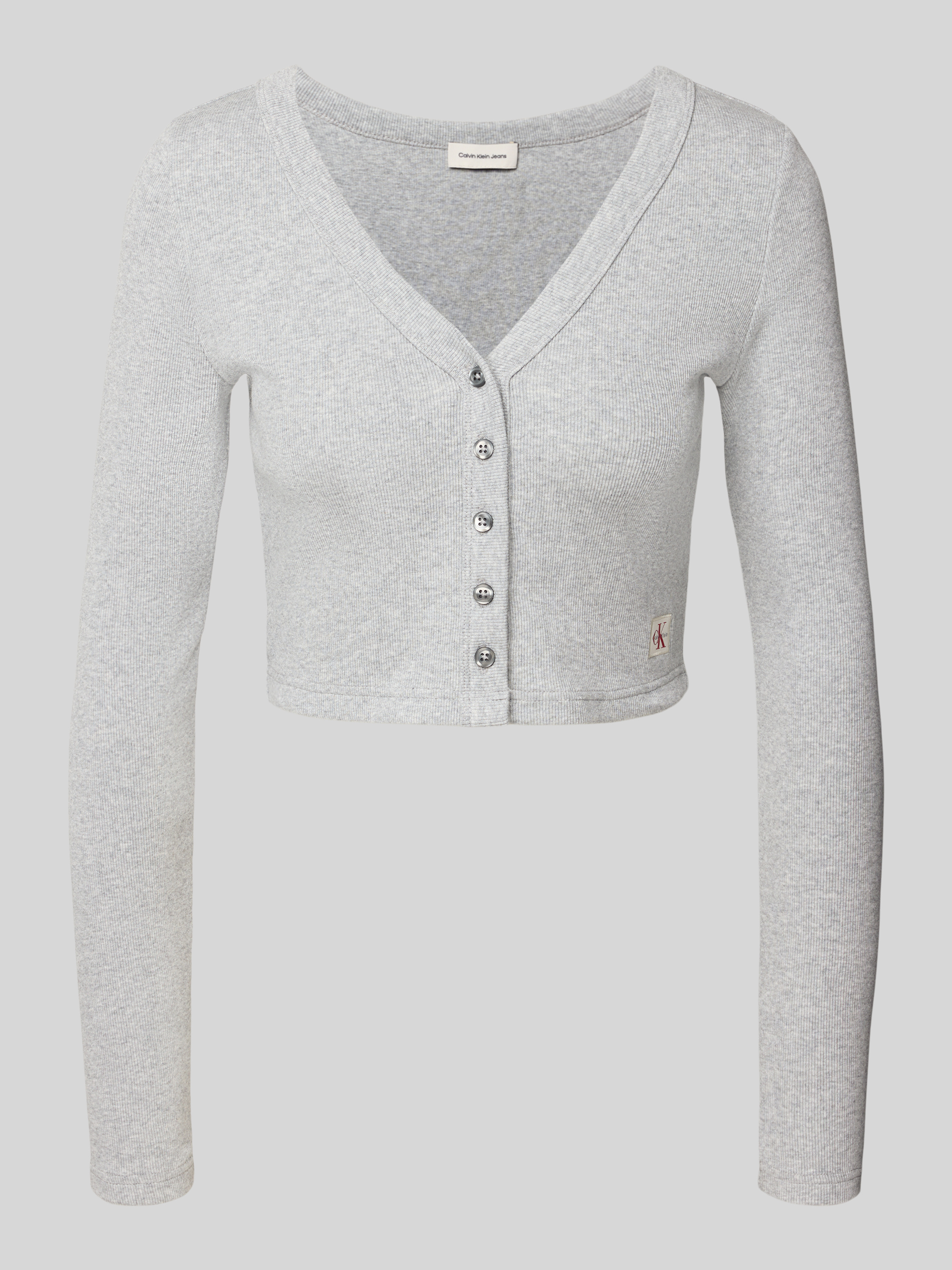 Kort gebreid jack met knoopsluiting in lichtgrijs gemêleerd