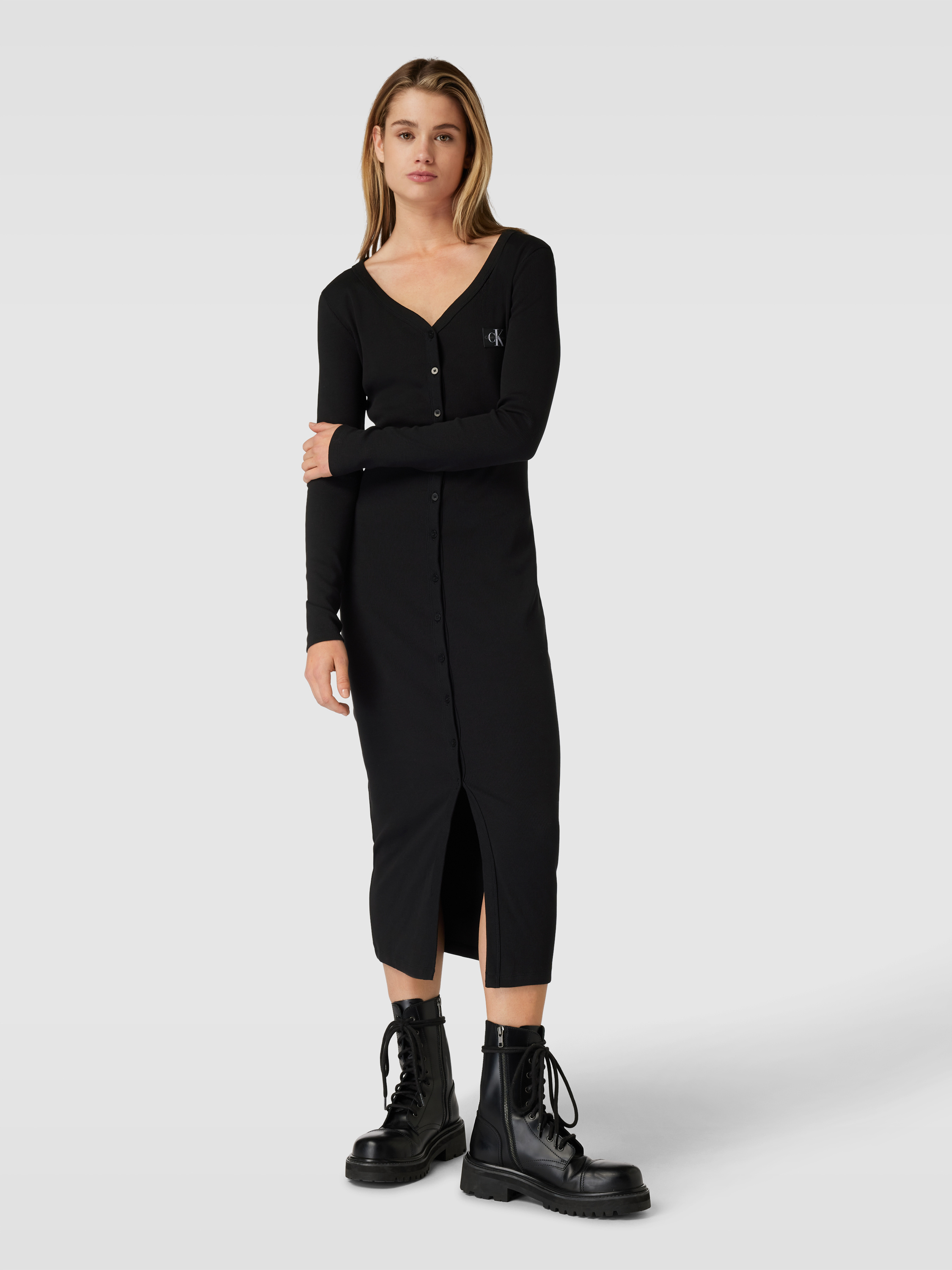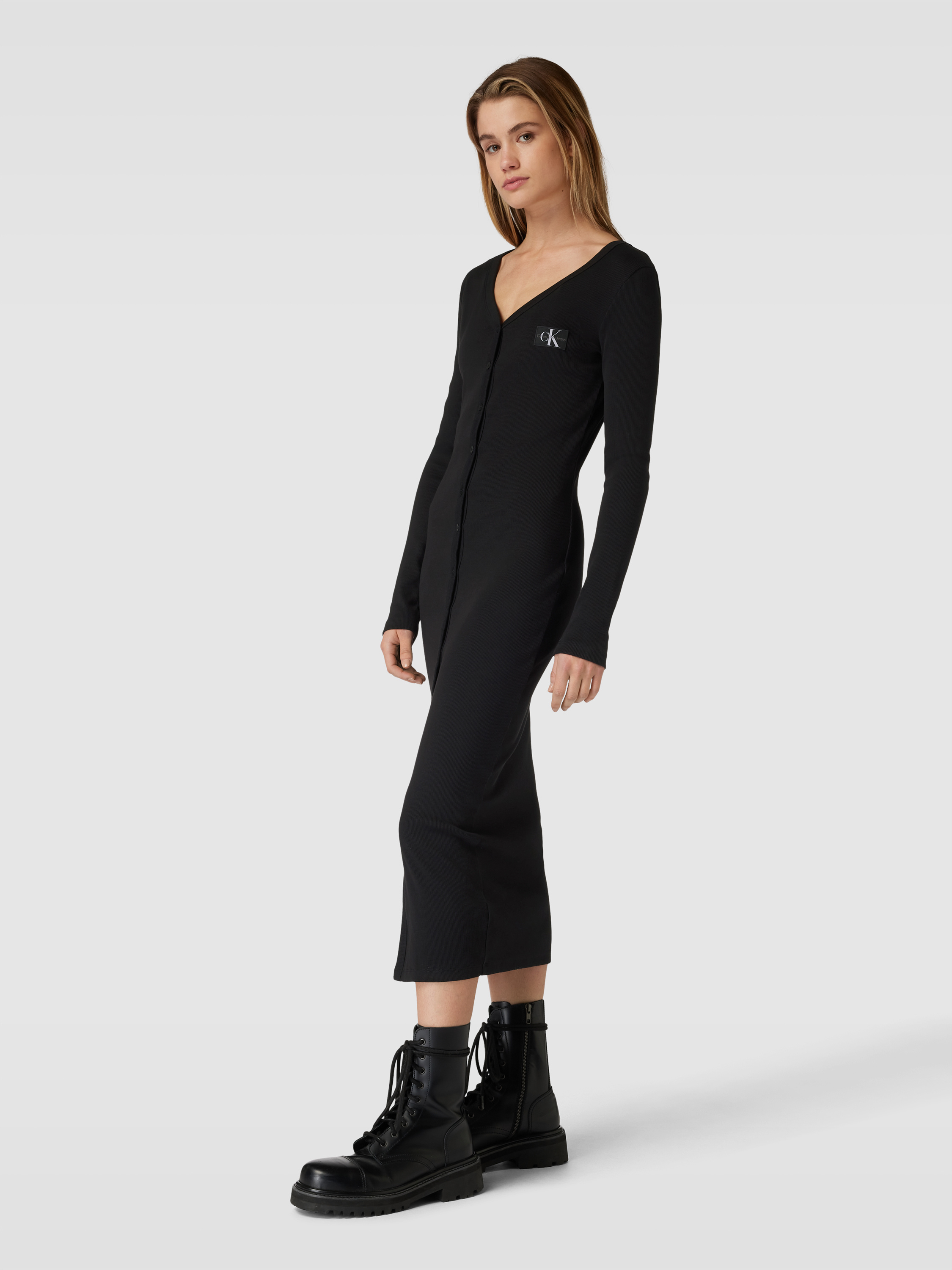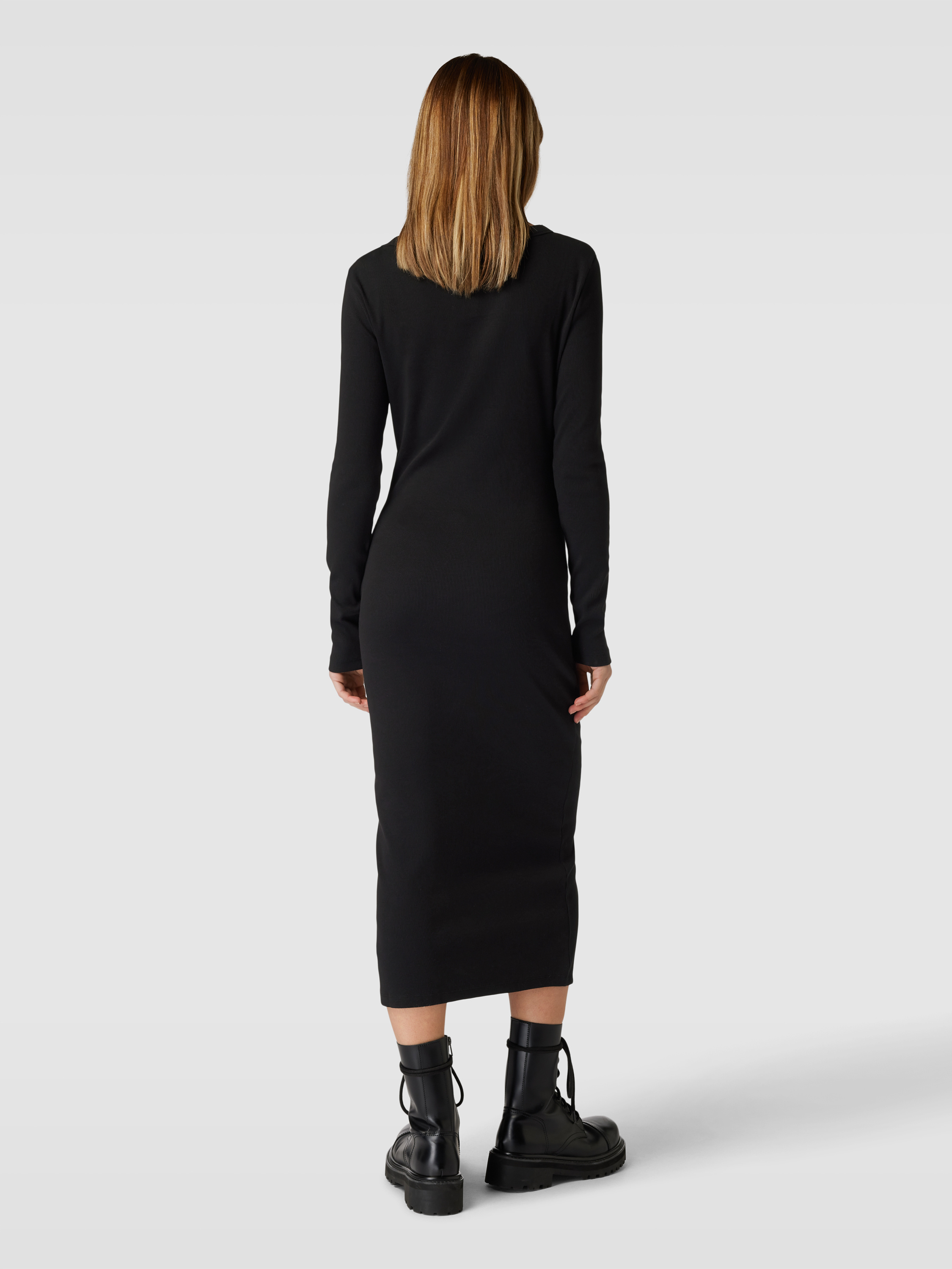 Maxi-jurk met fijnrib in zwart