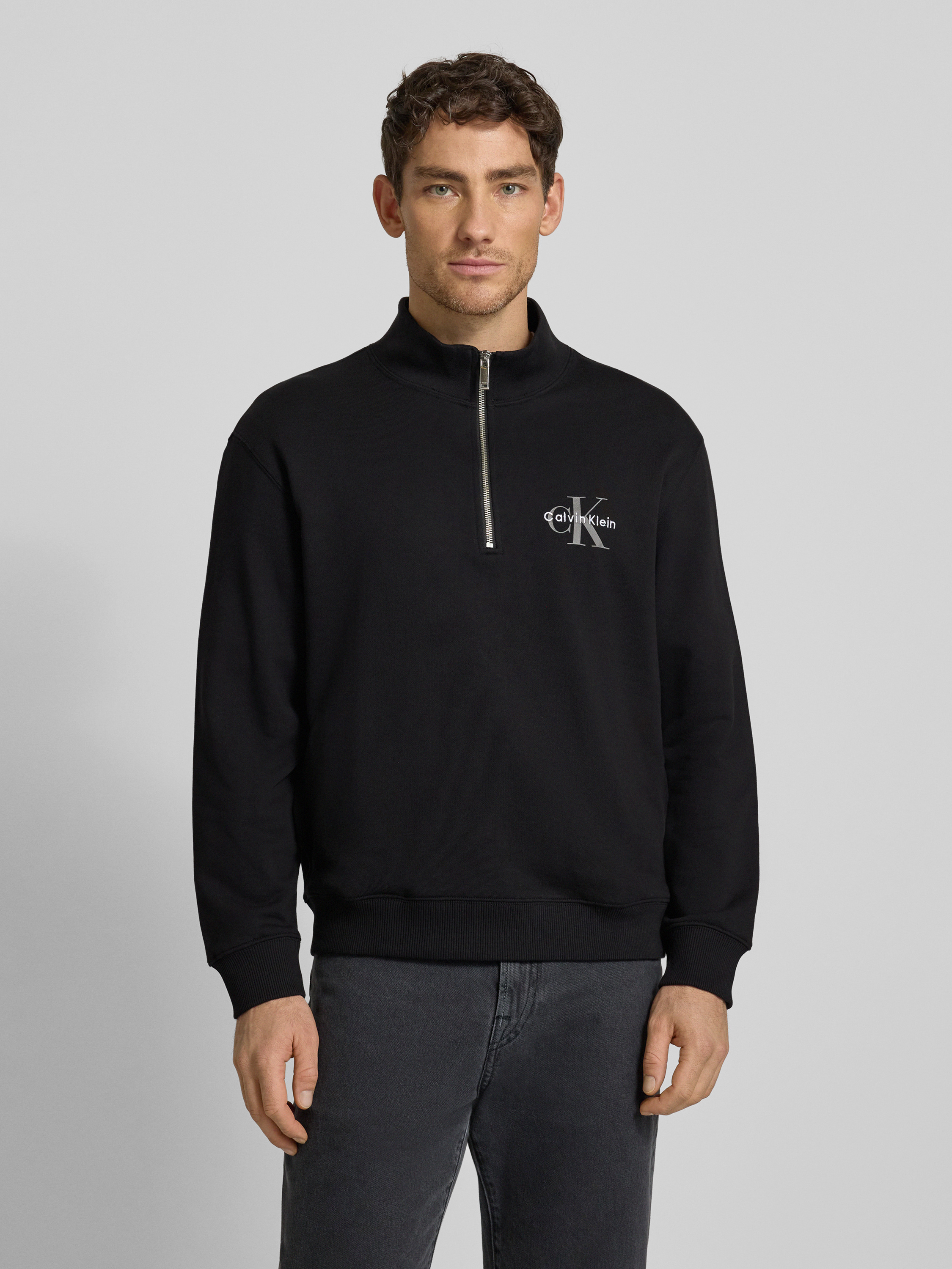 Regular fit sweatshirt met logostitching, model 'Terry' in zwart
