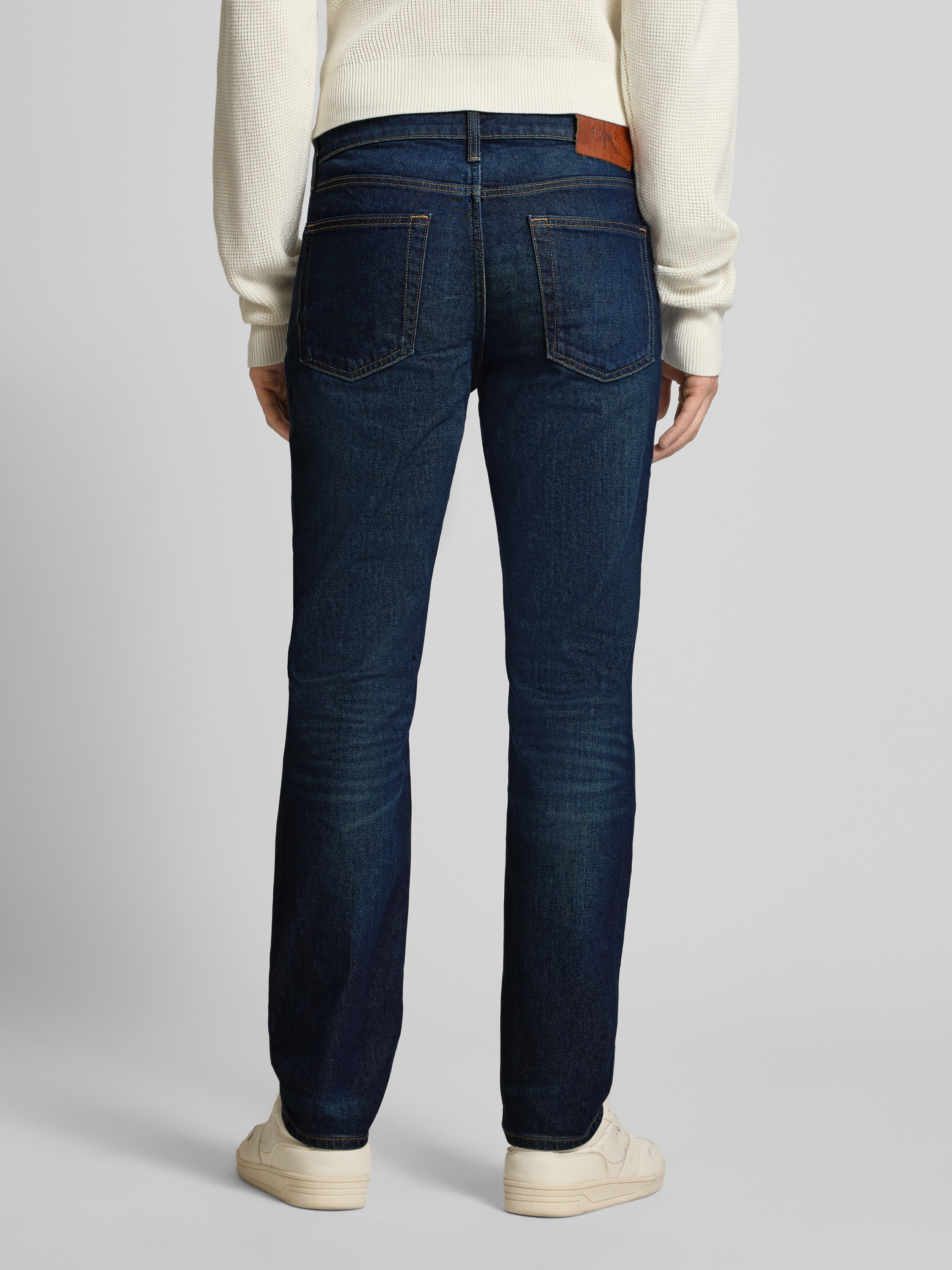 Slim fit jeans met 5-pocketmodel in donkerblauw