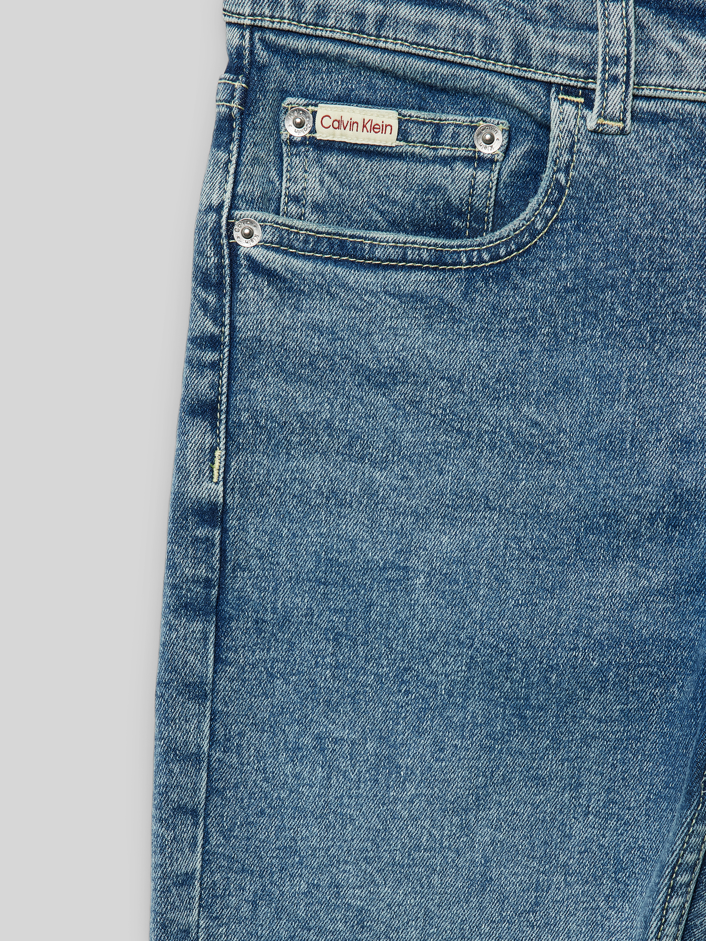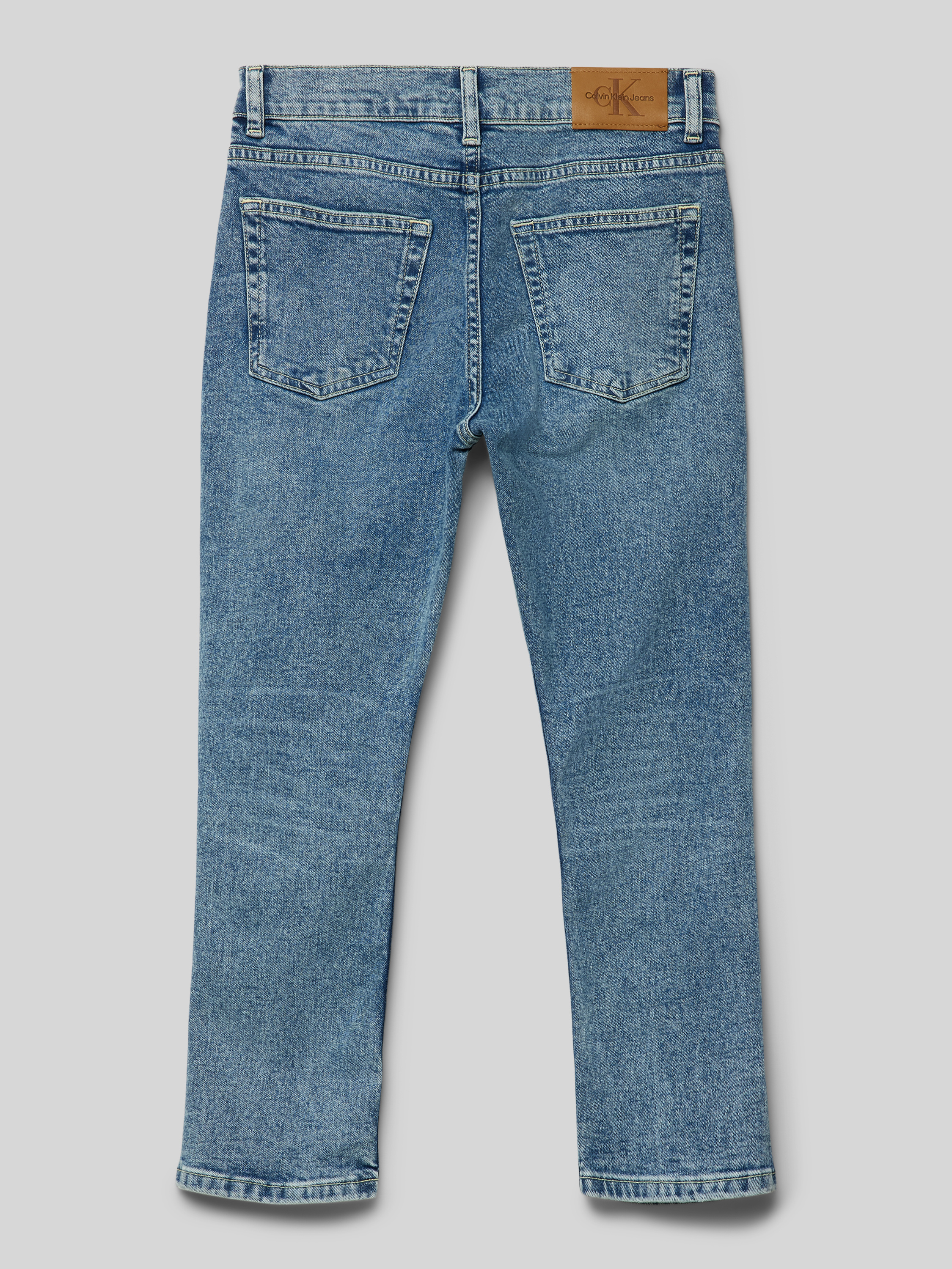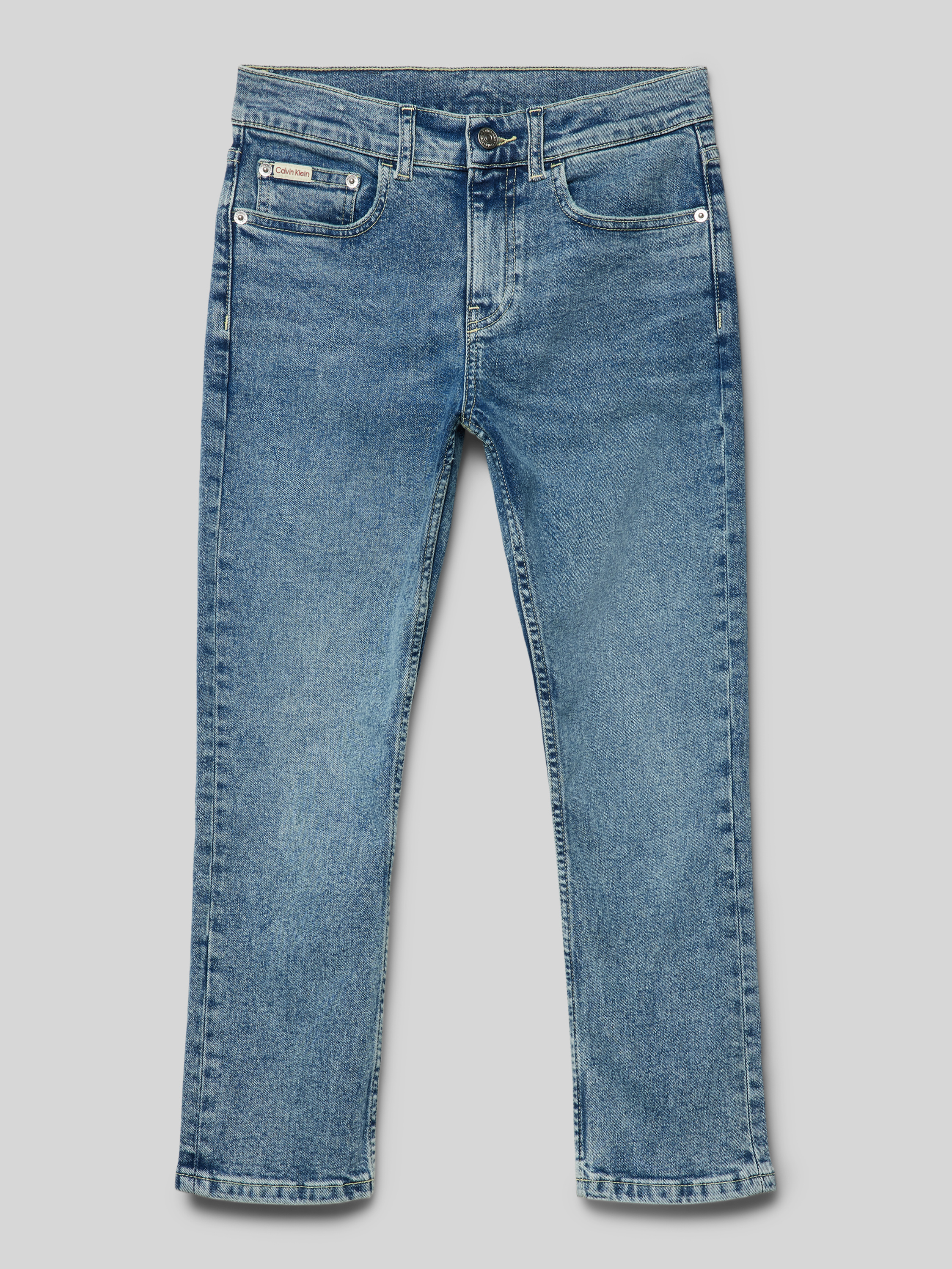 Slim fit jeans met labelpatch, model 'DAD' in blauw