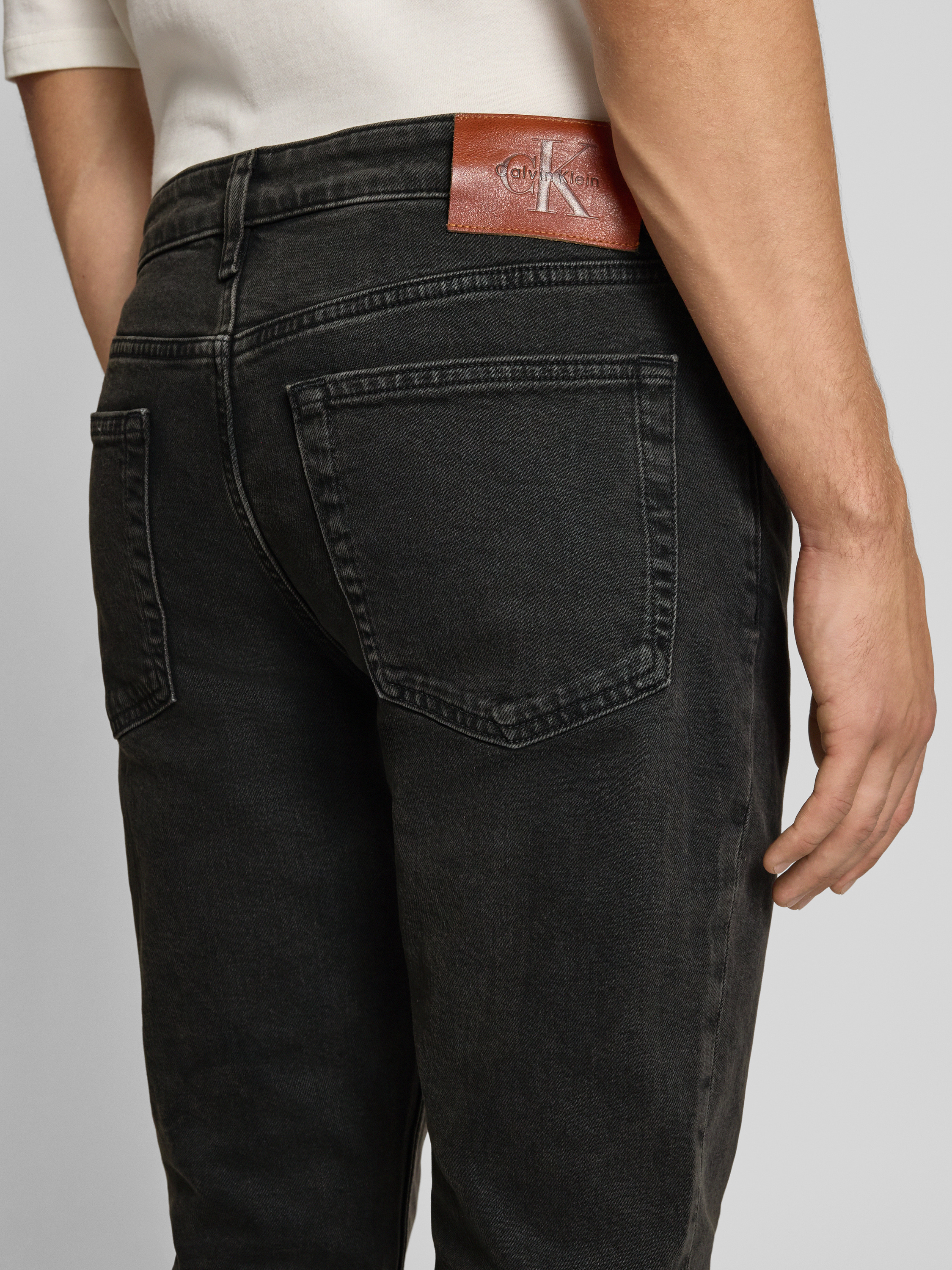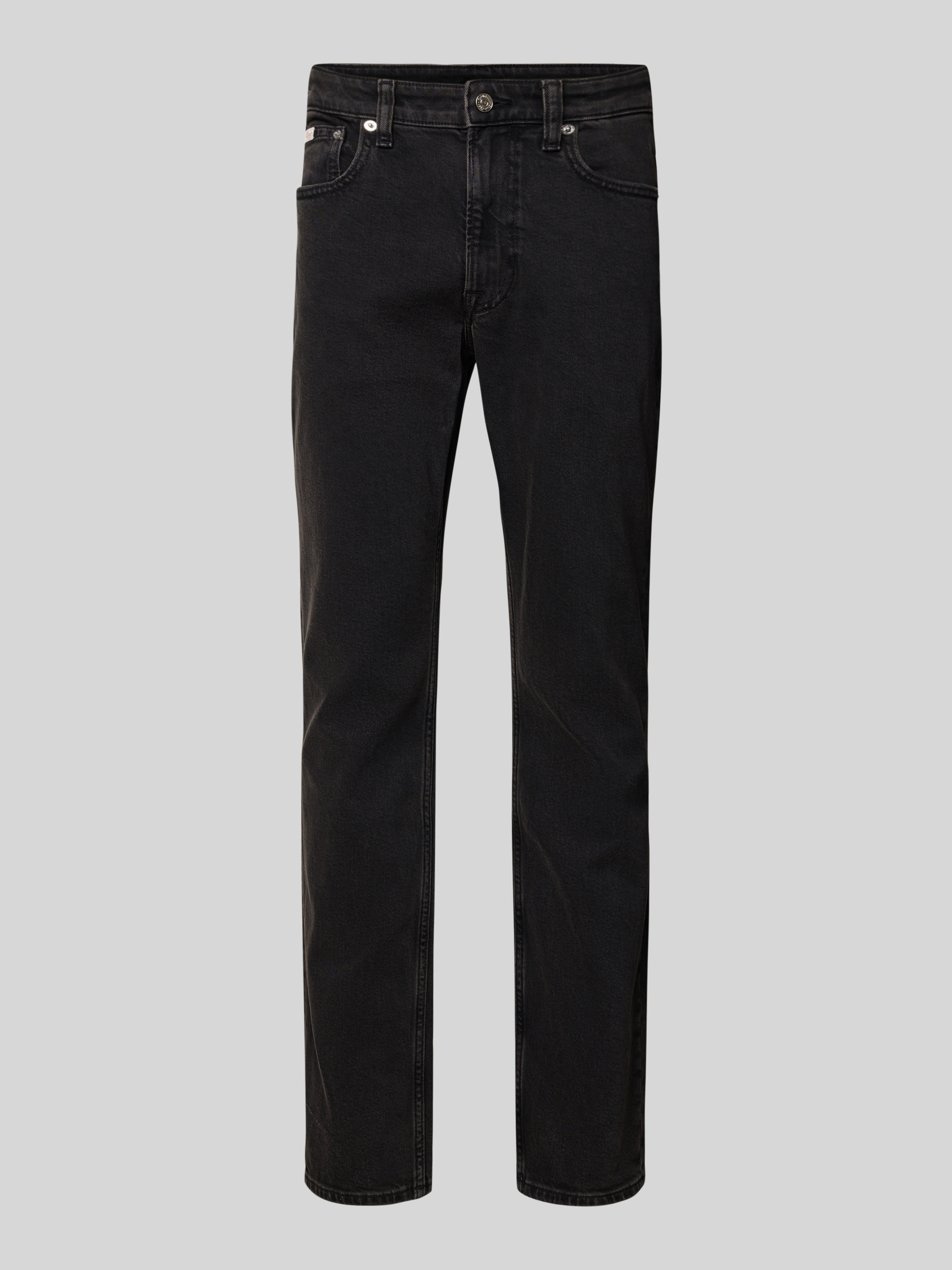 Slim fit jeans met logopatch, model 'Essential' in zwart
