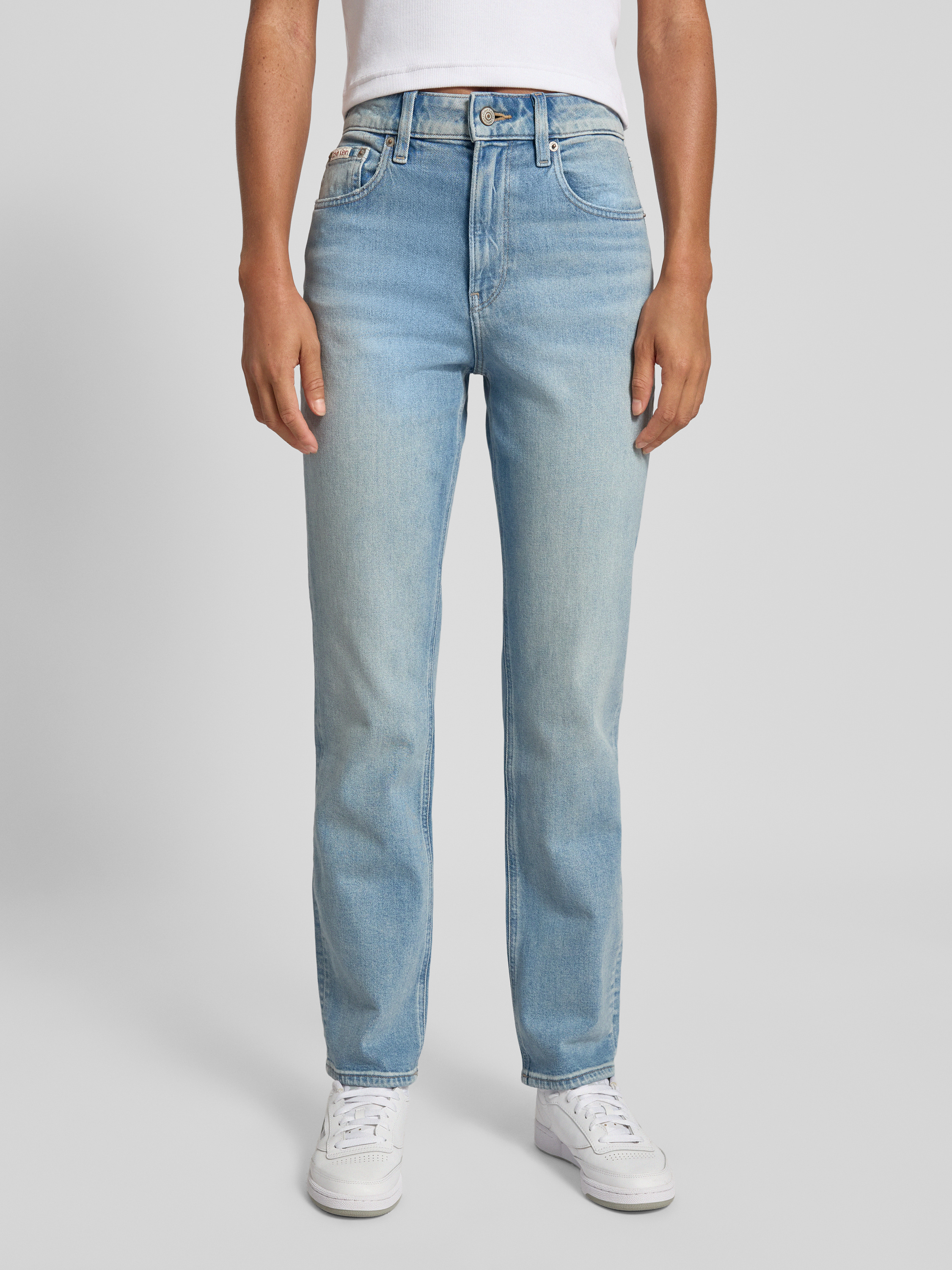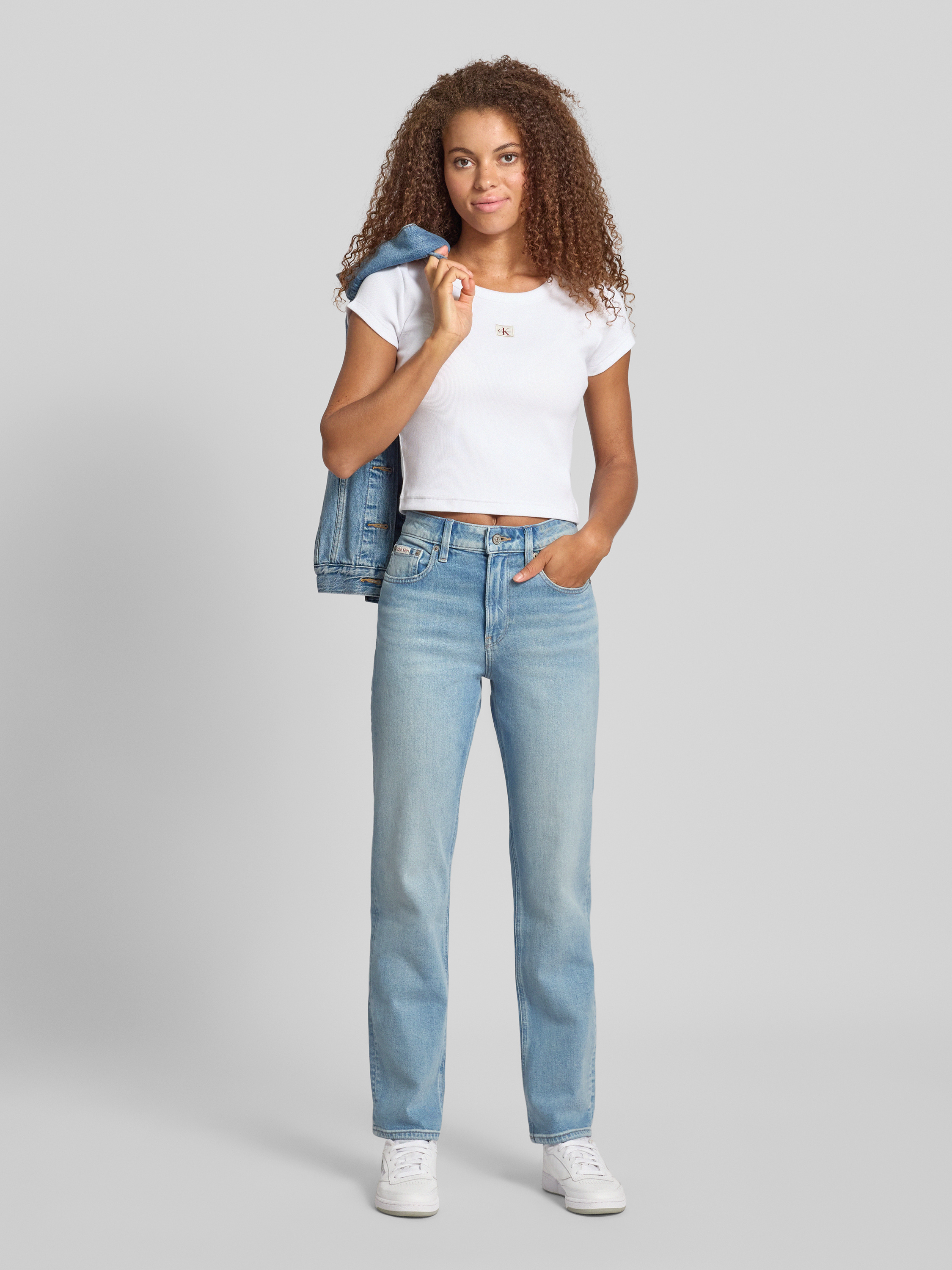 Straight fit high waist jeans met labeldetail in lichtblauw