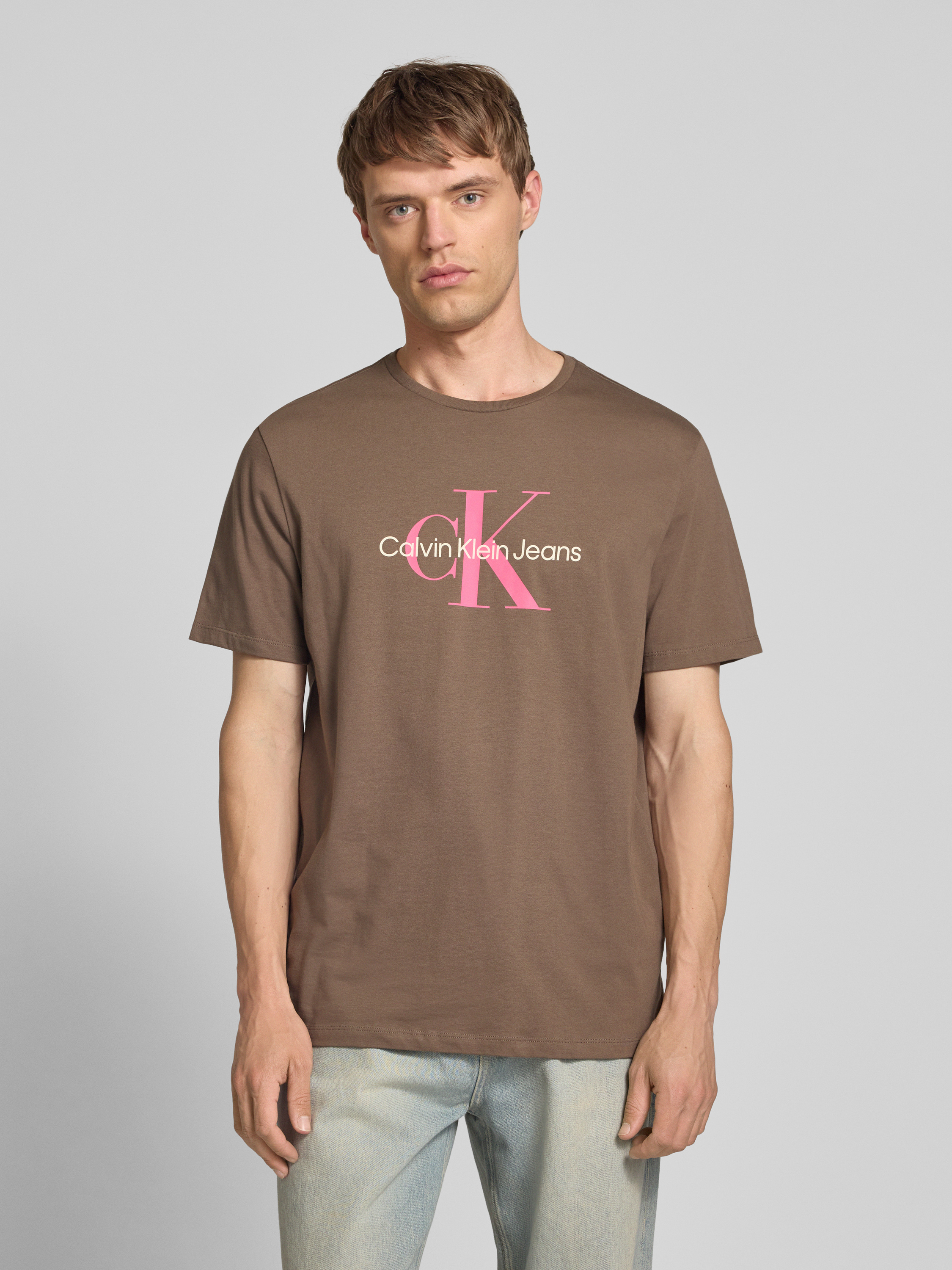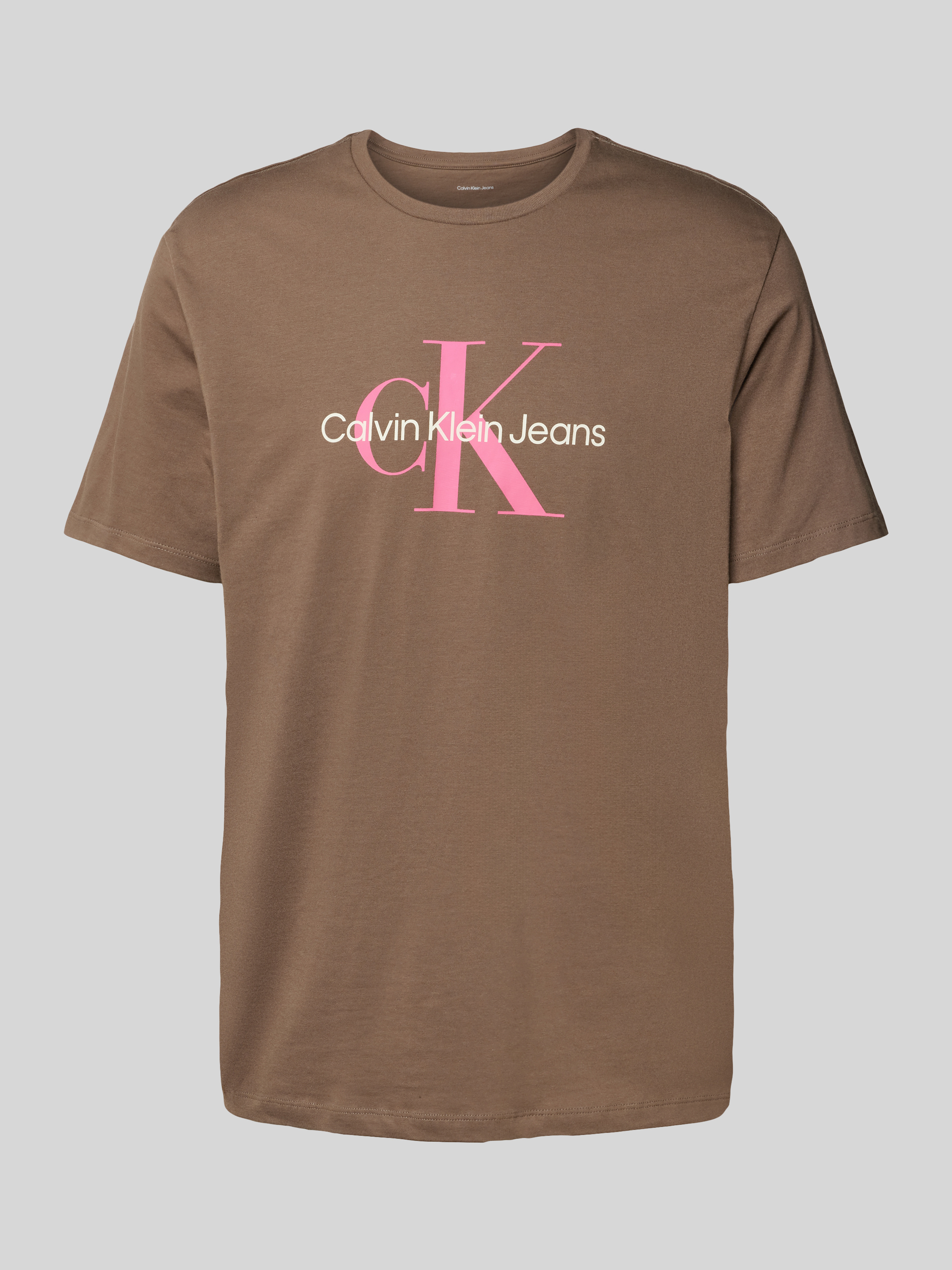T-shirt met labelprint, model 'HERO' in lichtbruin