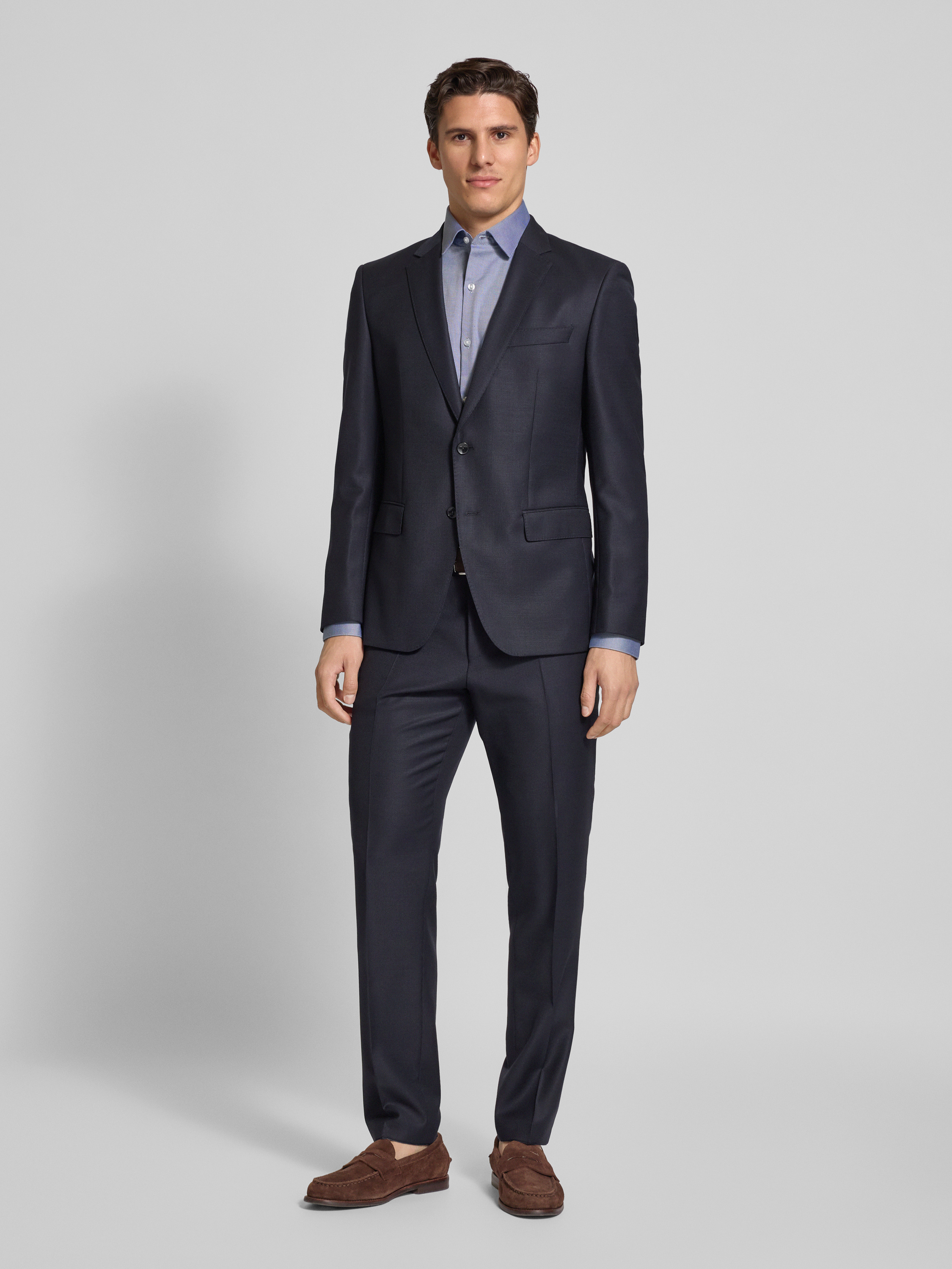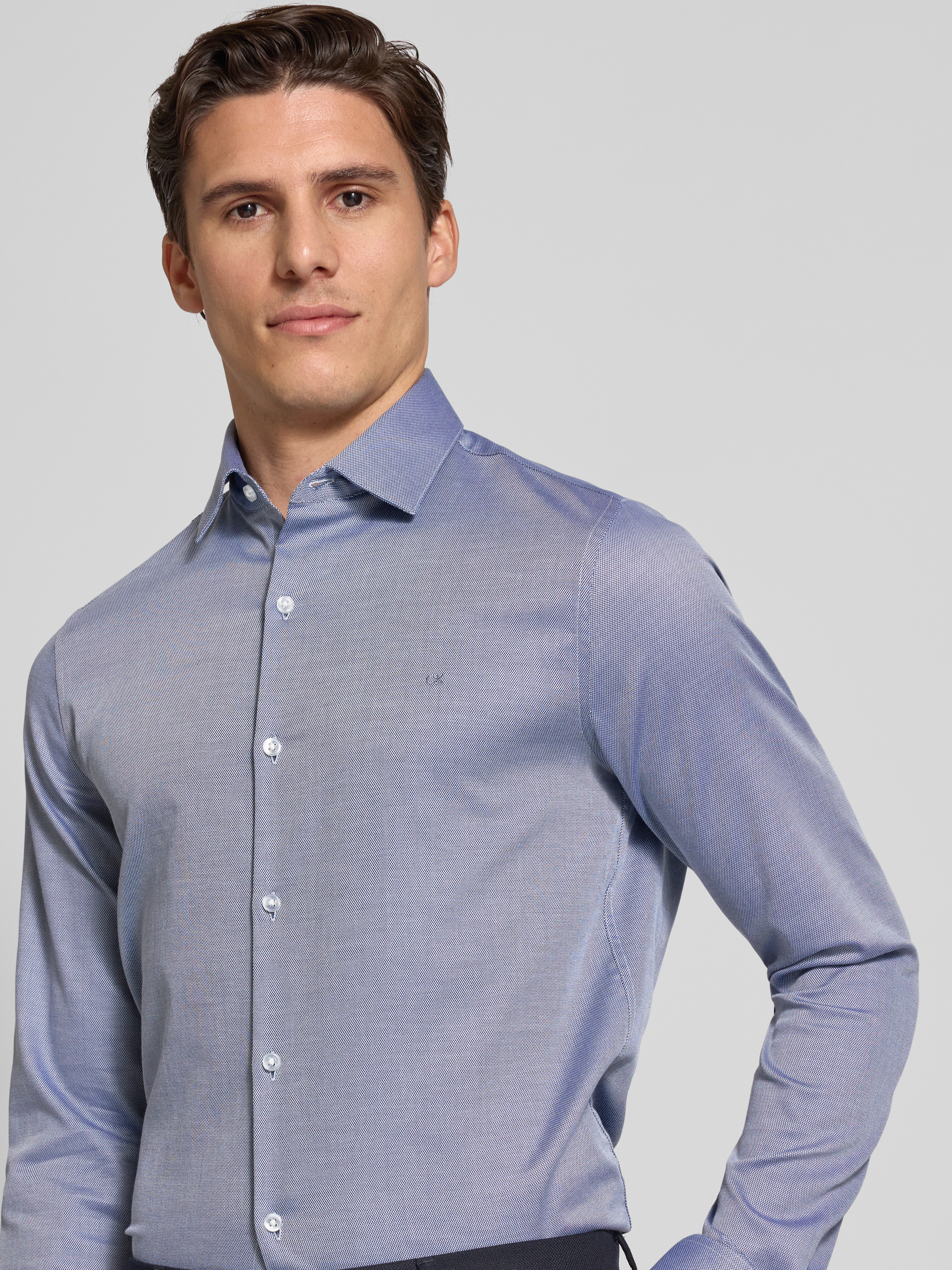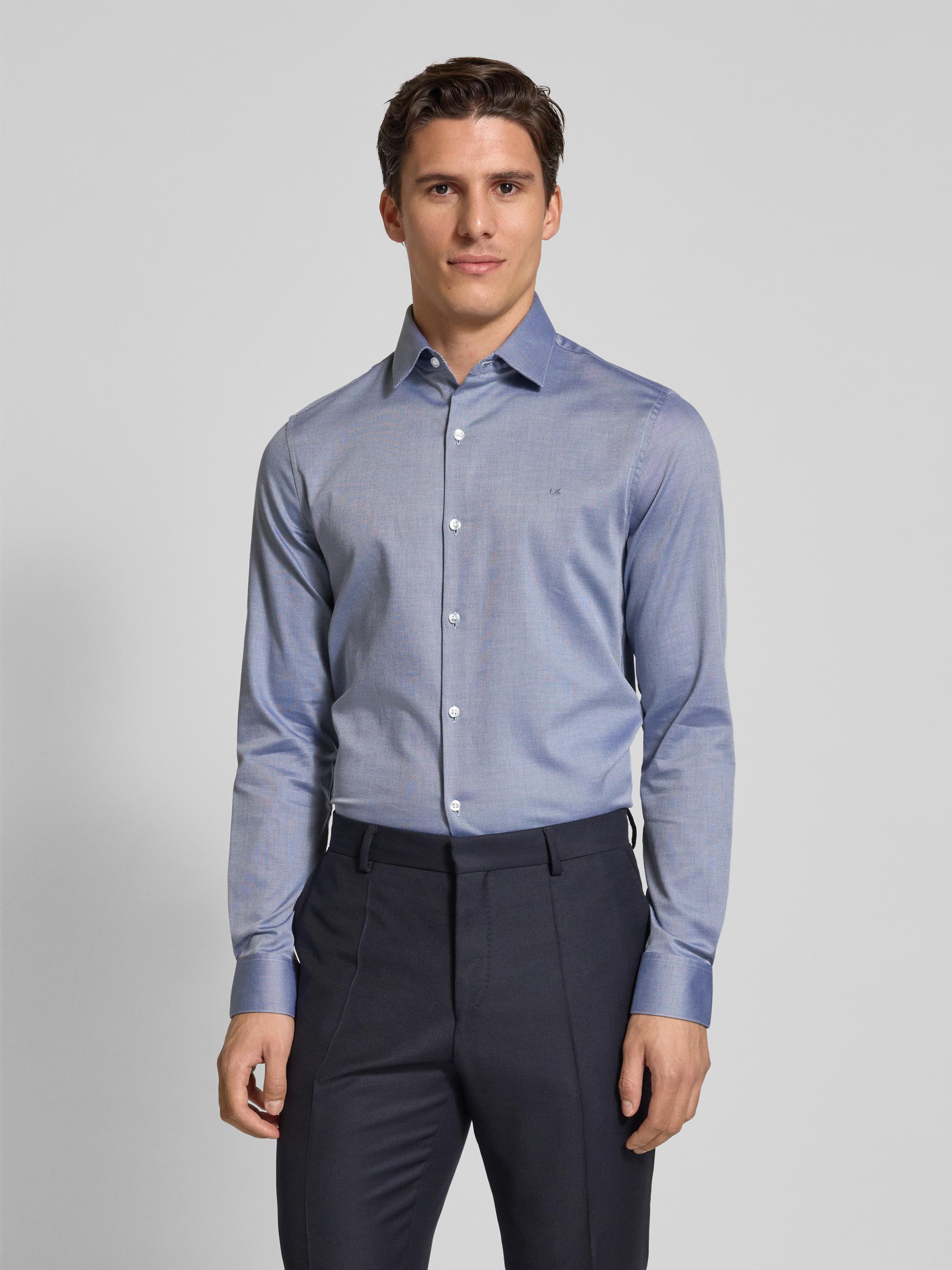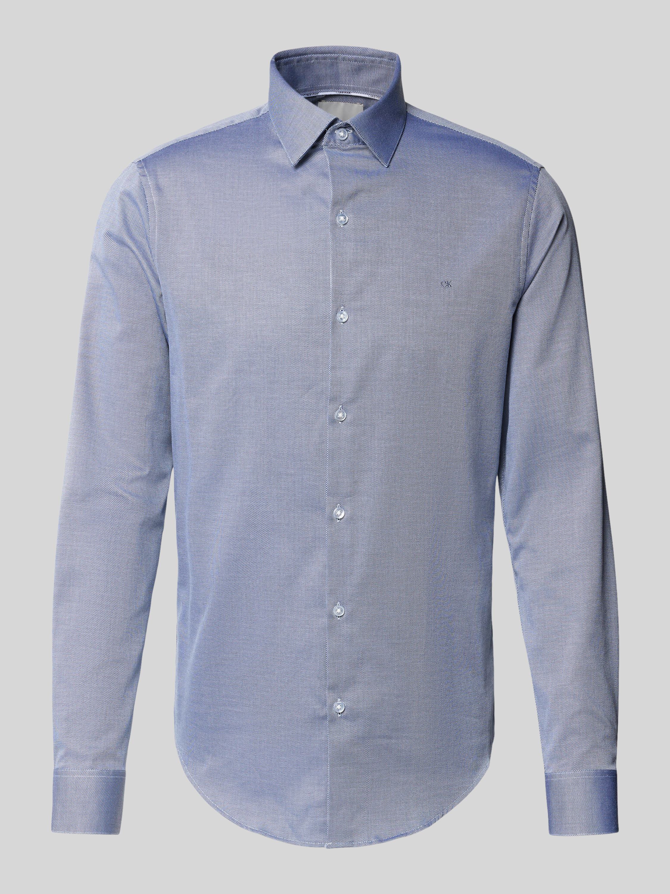 Slim fit zakelijk overhemd met logostitching, model 'Harrison' in koningsblauw