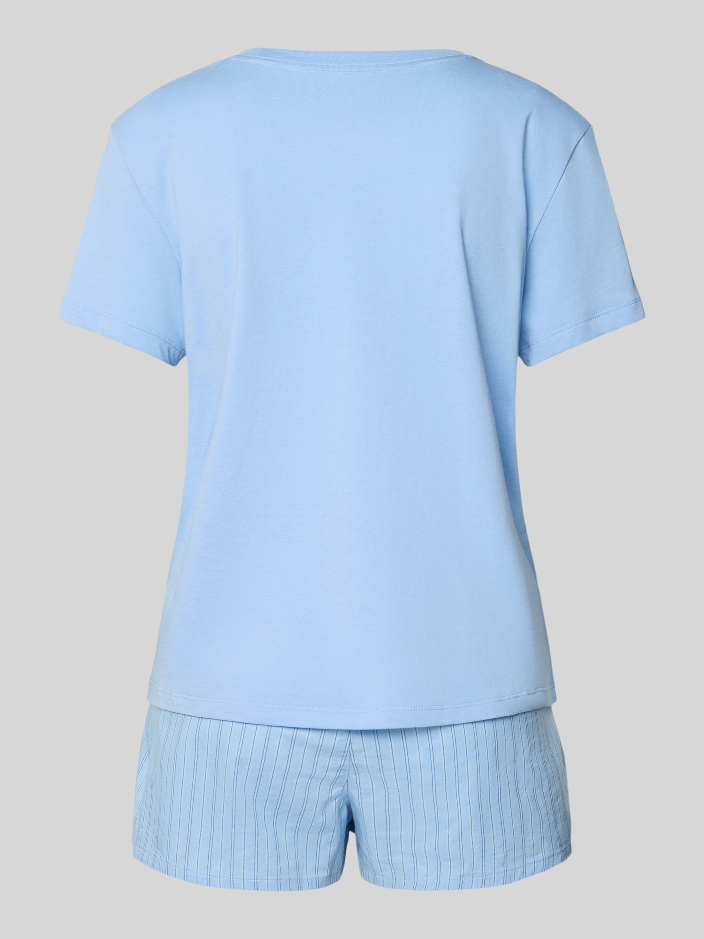 Regular fit pyjama met logostitching, model 'Poplin' in lichtblauw