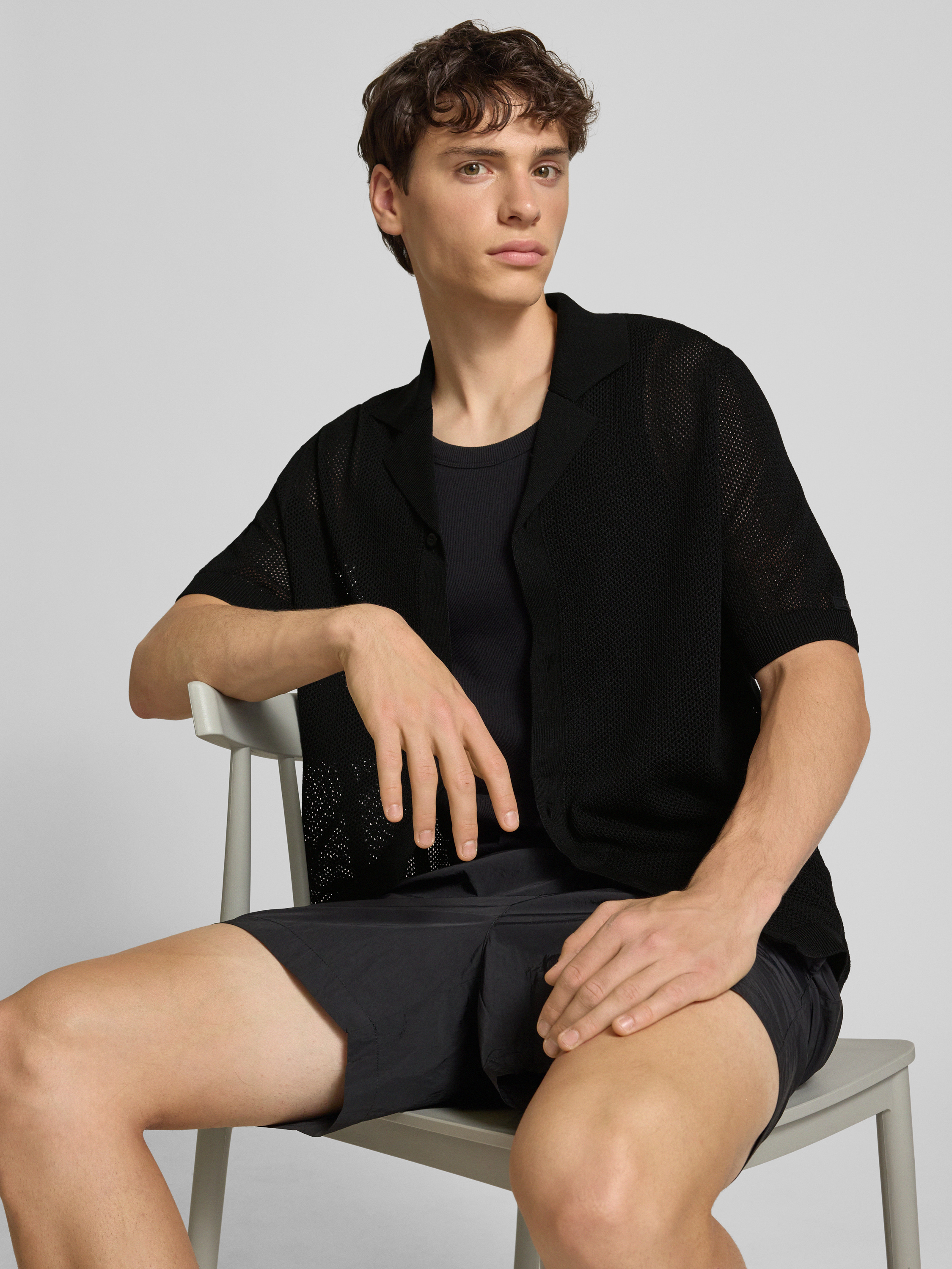 Regular fit vrijetijdsoverhemd in semi-transparant design in zwart