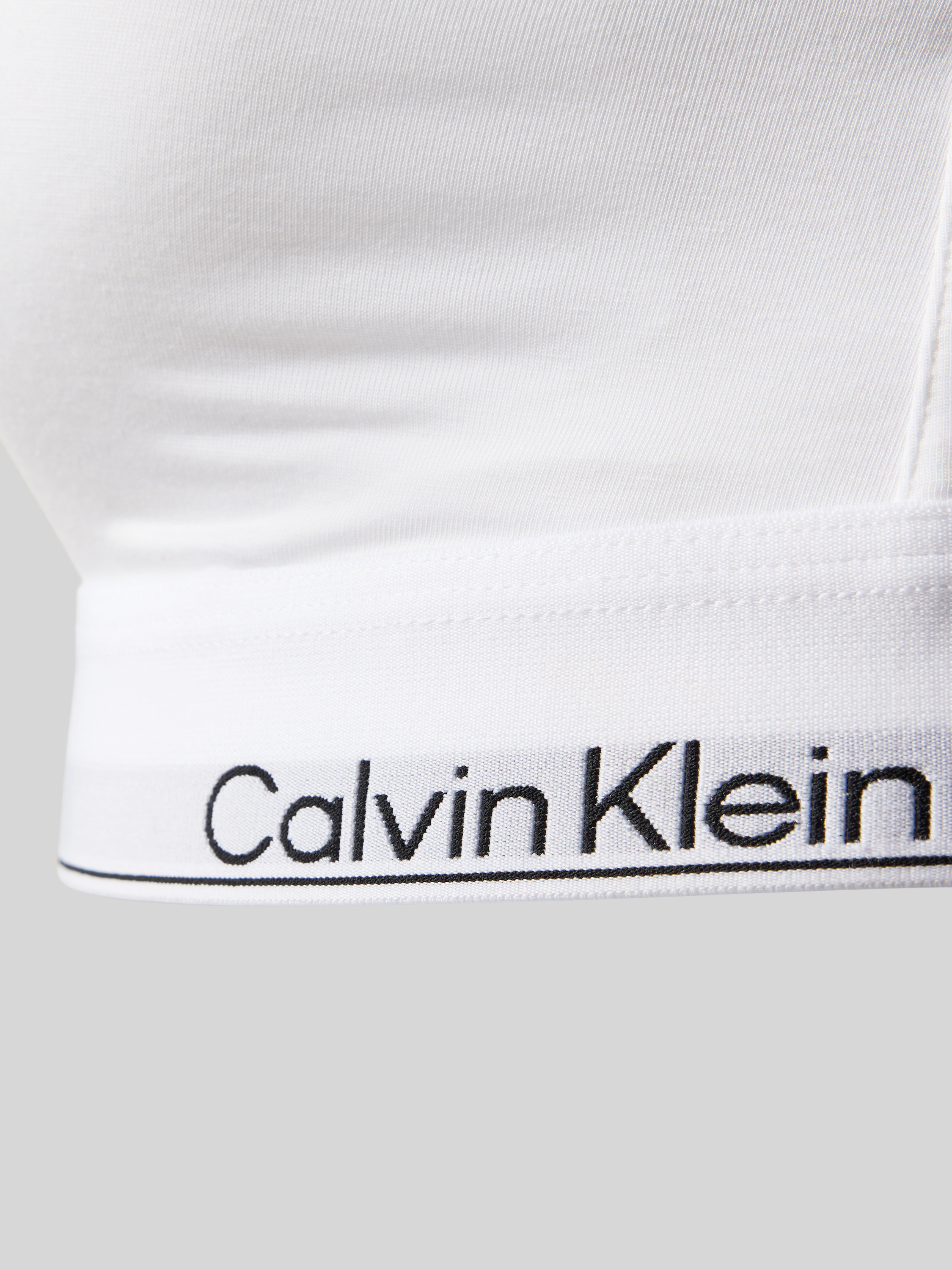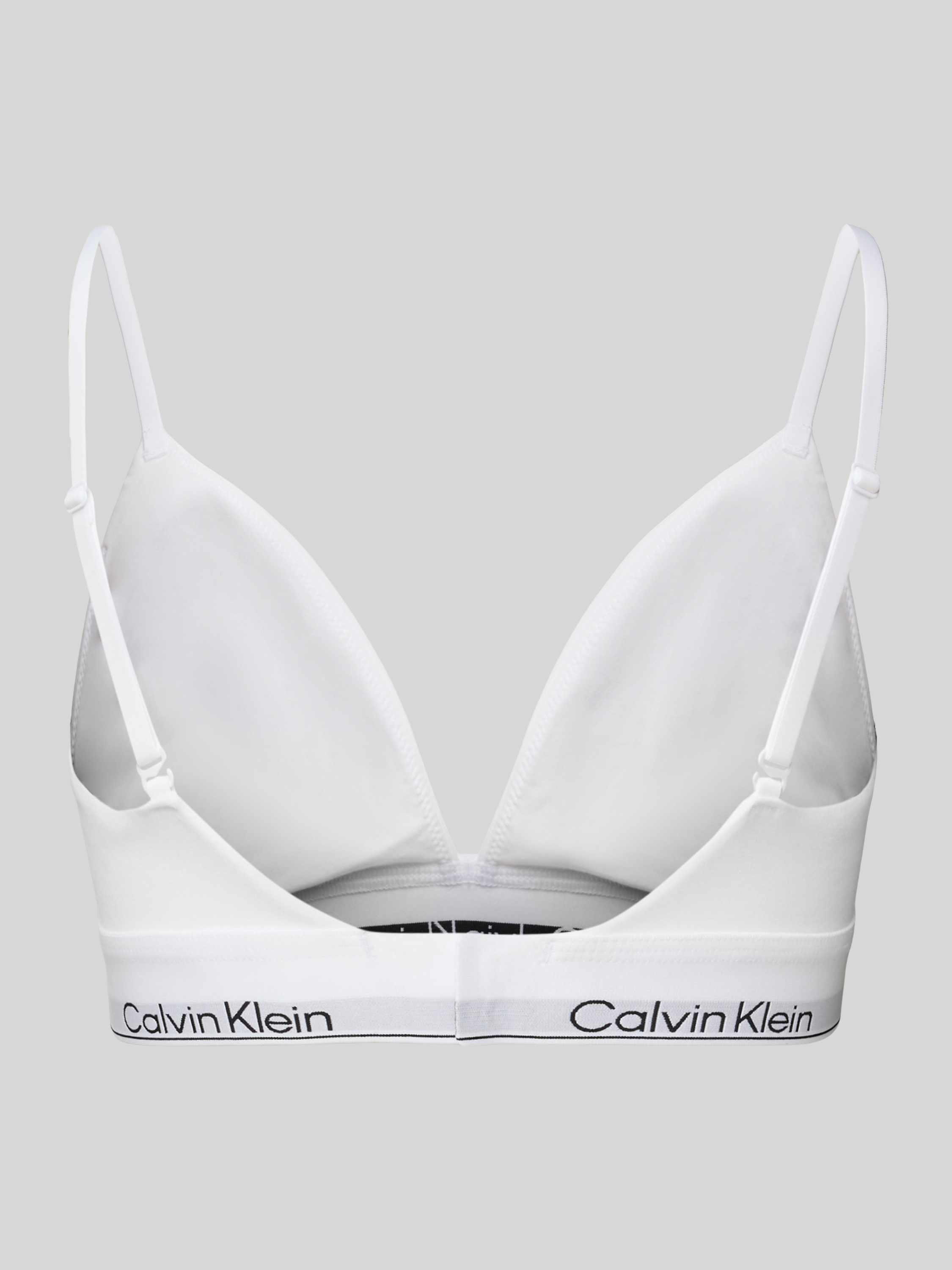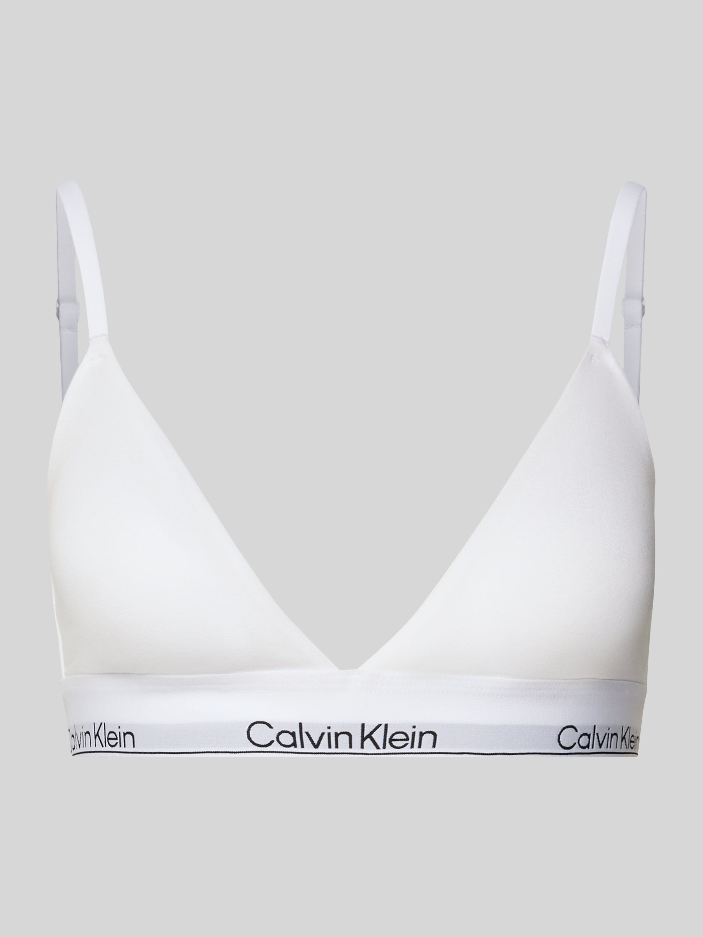 Triangelbeha met logo in band en spaghettibandjes in wit
