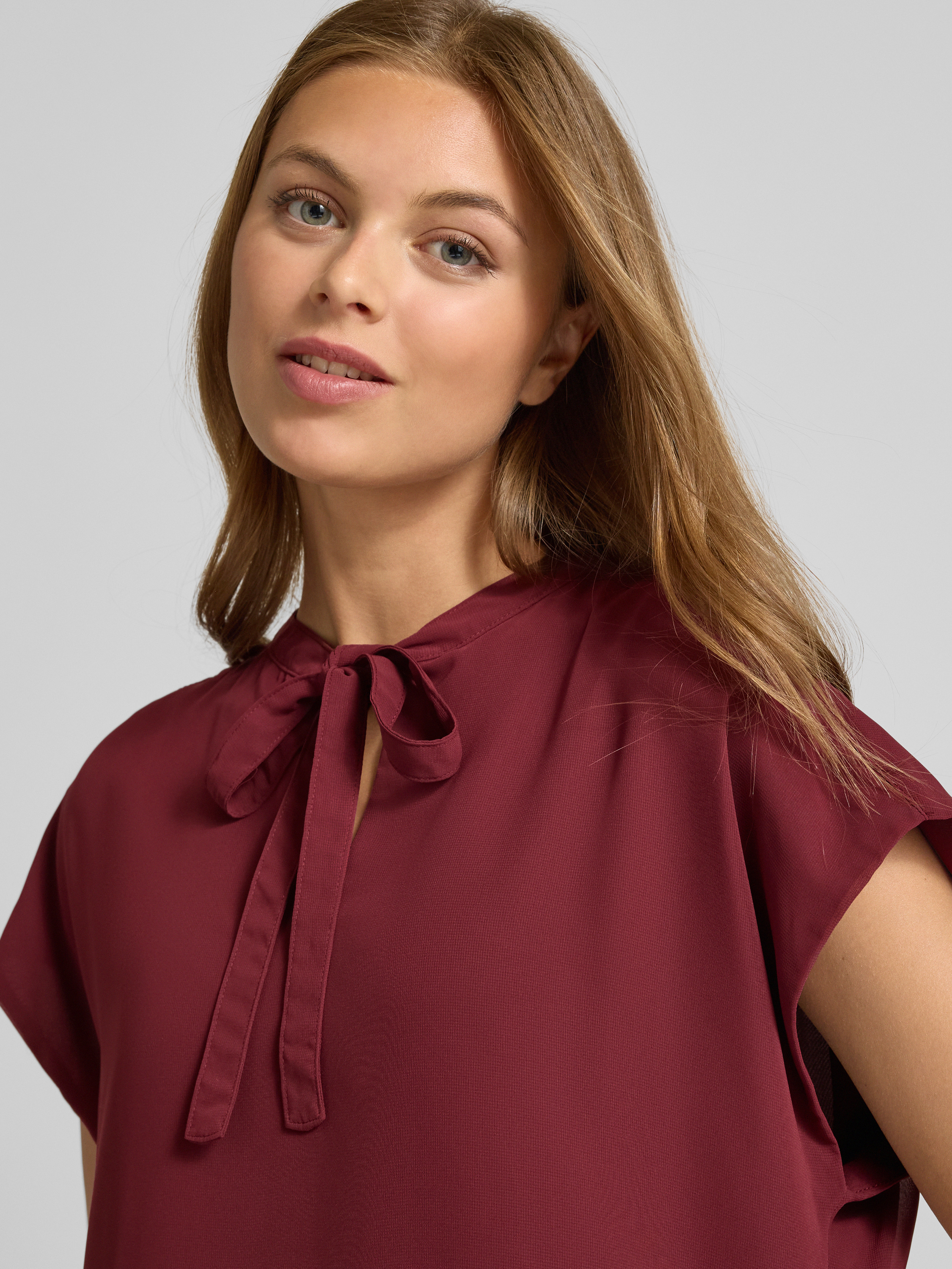 Regular fit blouse met druppelvormige hals, model 'Tie' in bordeaux