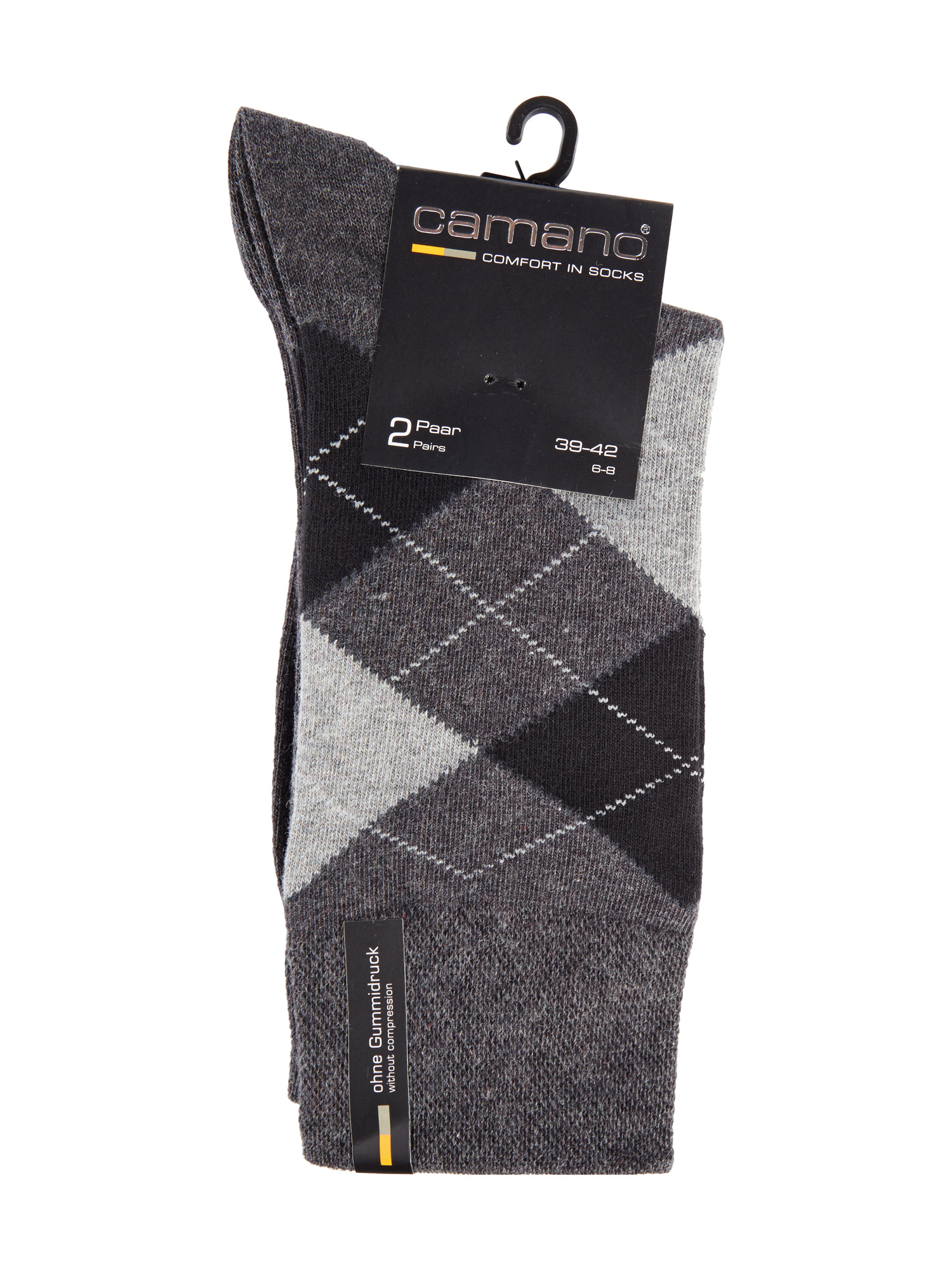 Sokken met ruitmotief in een set van 2 paar in antraciet