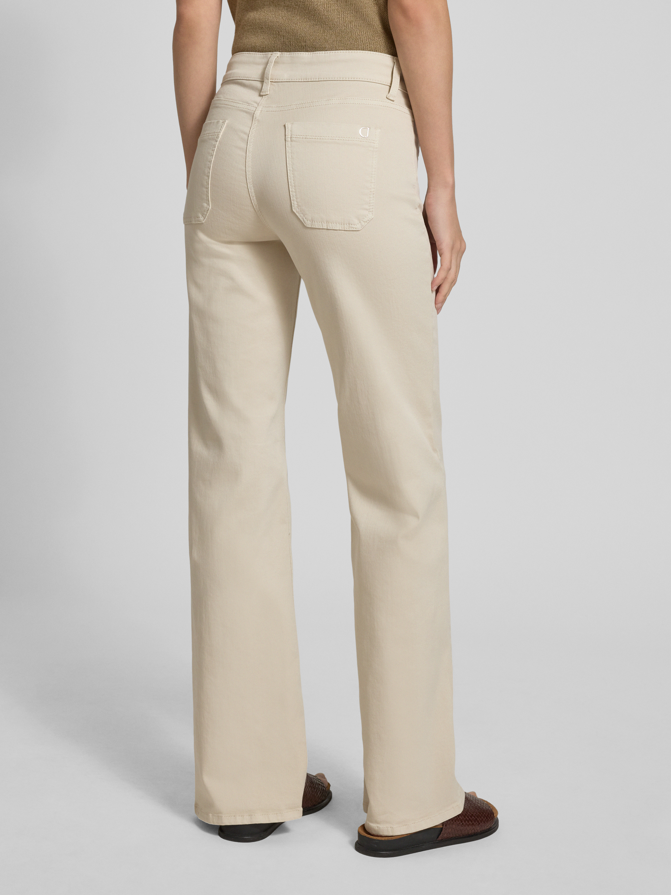 Flared cut broek met paspelzakken, model 'TESS' in ecru
