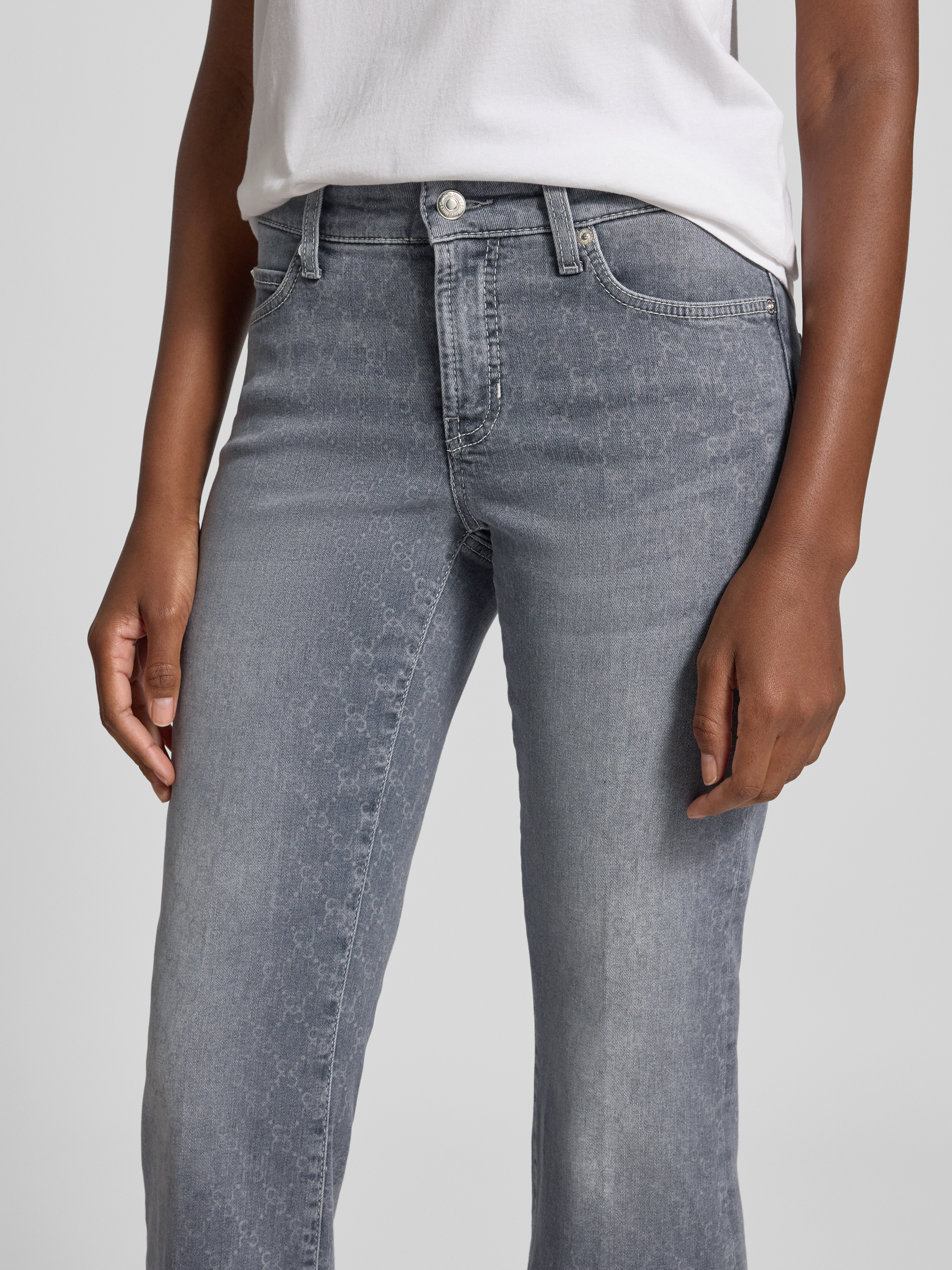 CambioFlared jeans in verkorte pasvorm, model 'PARIS' in lichtgrijs gemêleerd