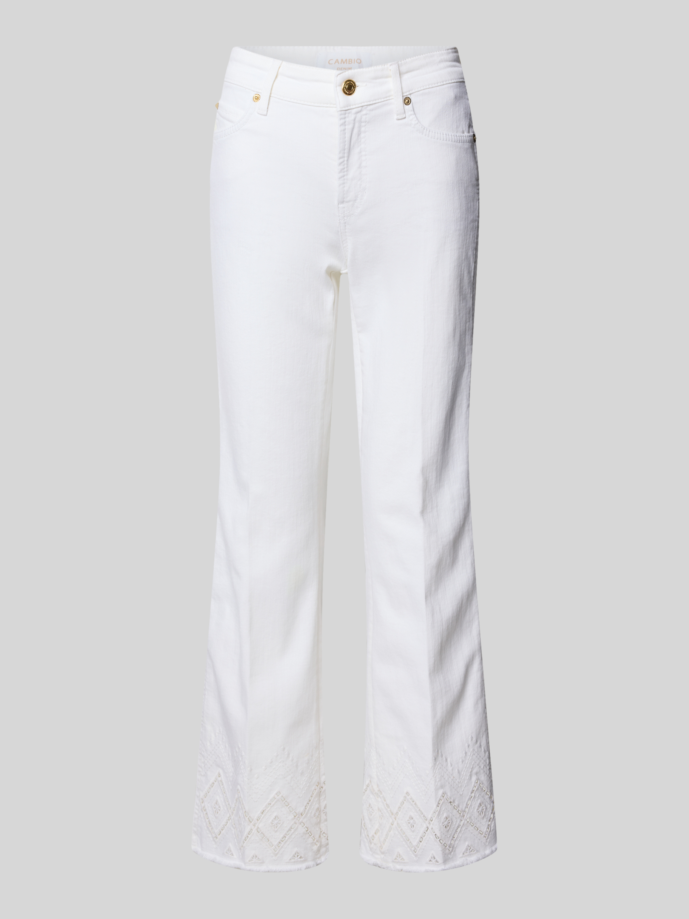 CambioFlared jeans met broderie anglaise, model 'FRANCESCA' in offwhite