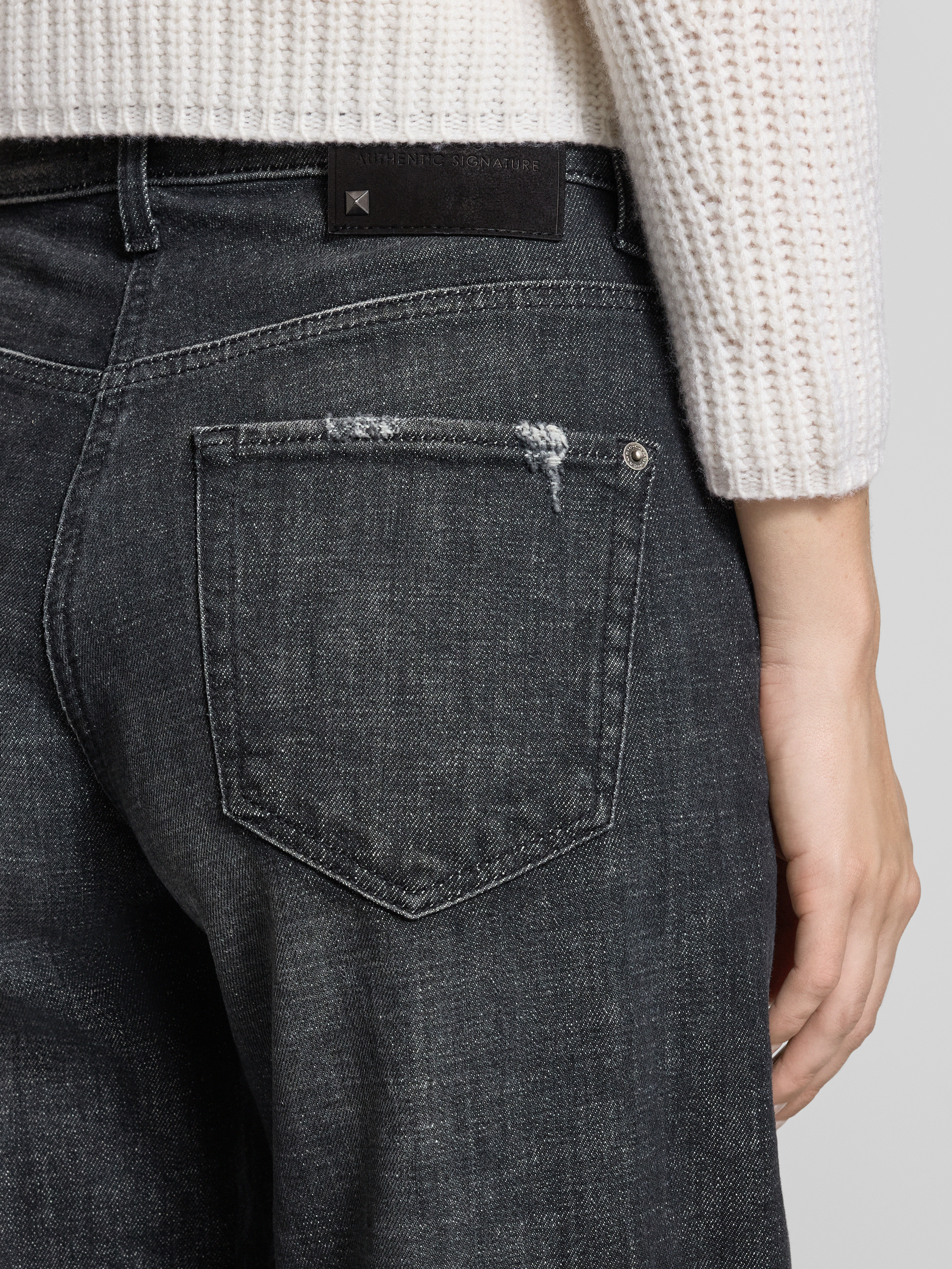 Loose fit jeans met siernaden, model 'Elin' in antraciet gemêleerd