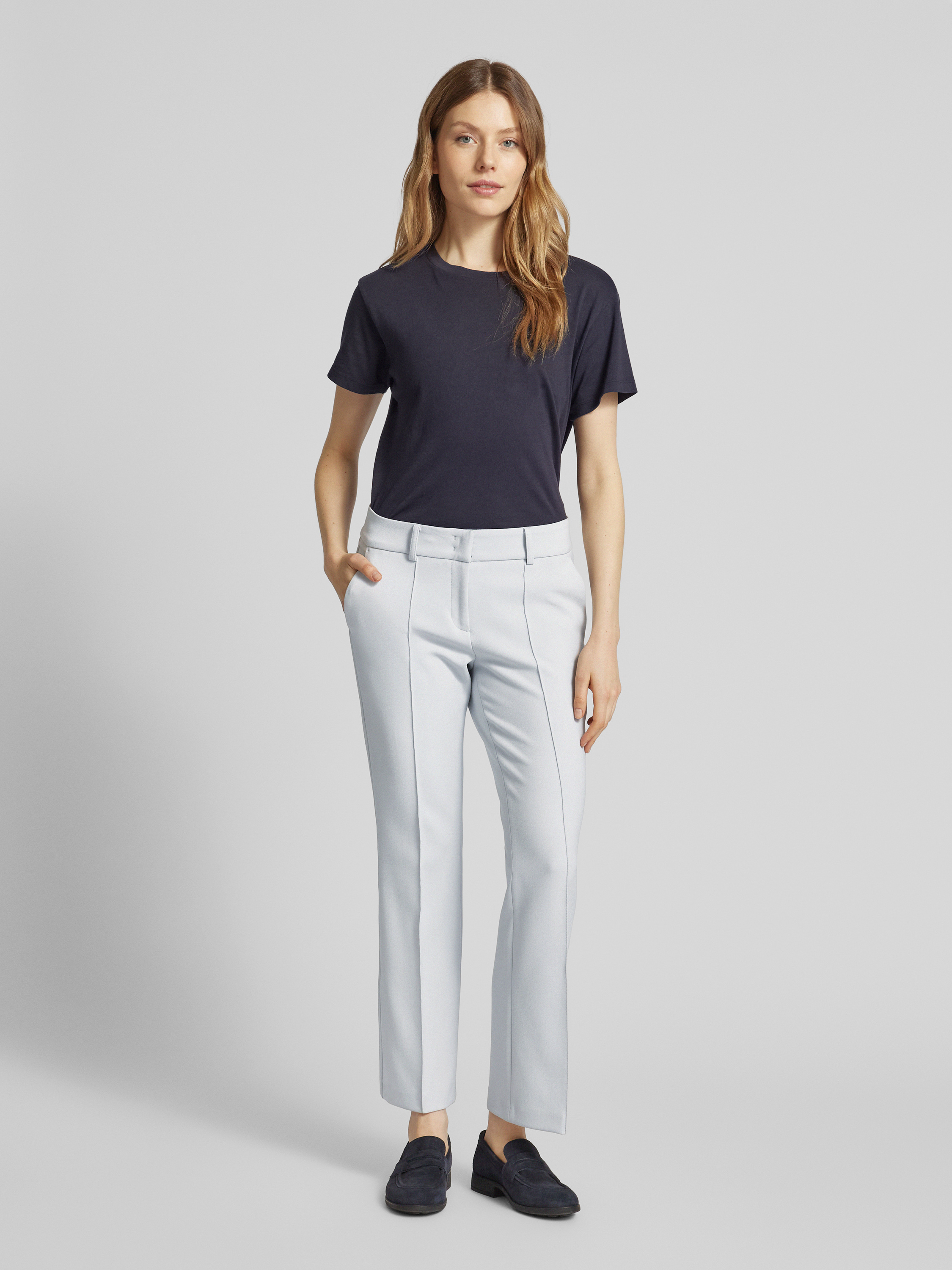 CambioRegular fit stoffen broek met verkort model, model 'FARAH' in lichtgrijs