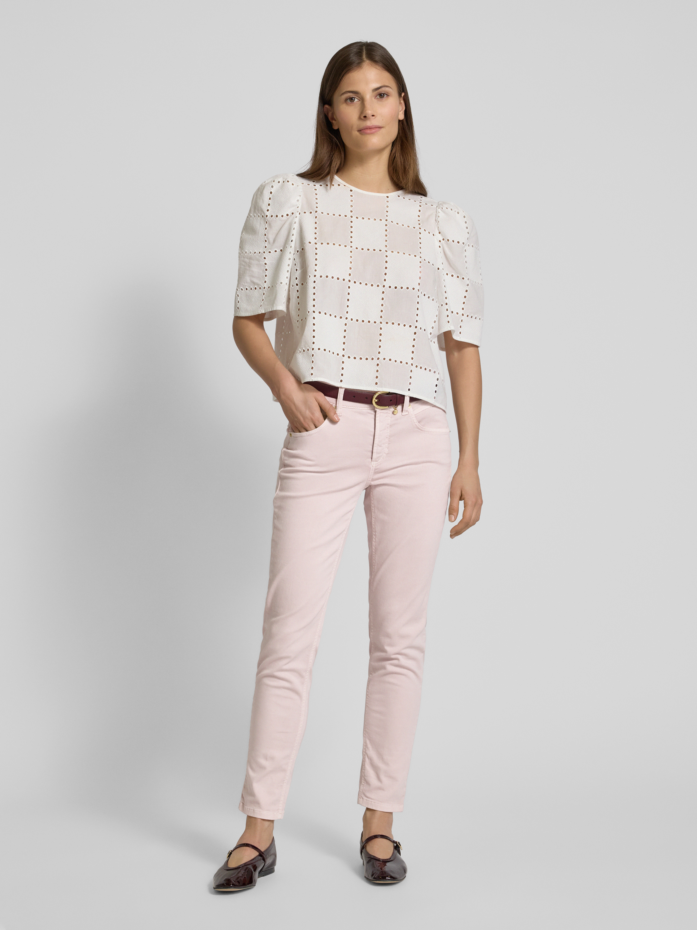 Blouseshirt met broderie anglaise, model 'ELISABETH'