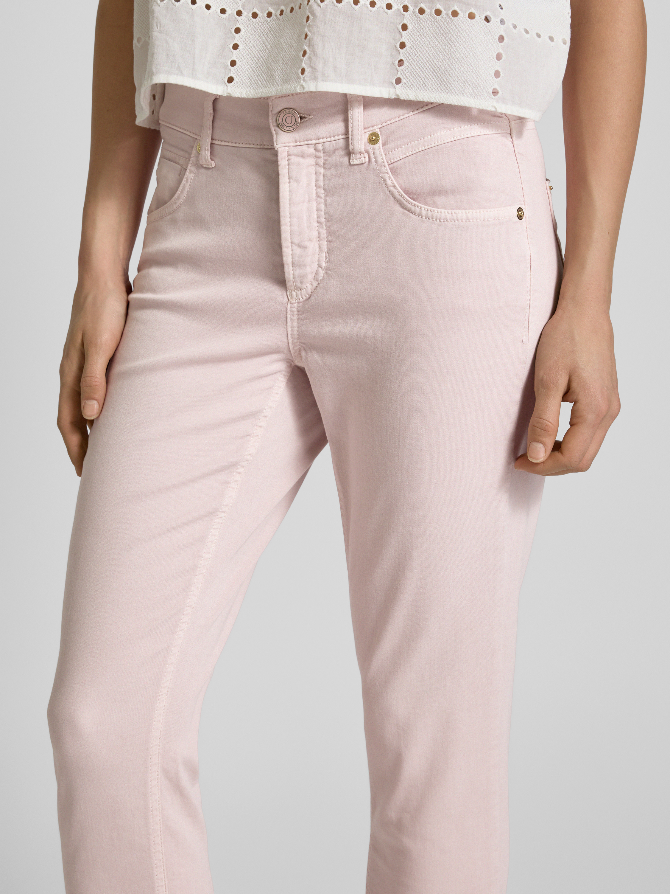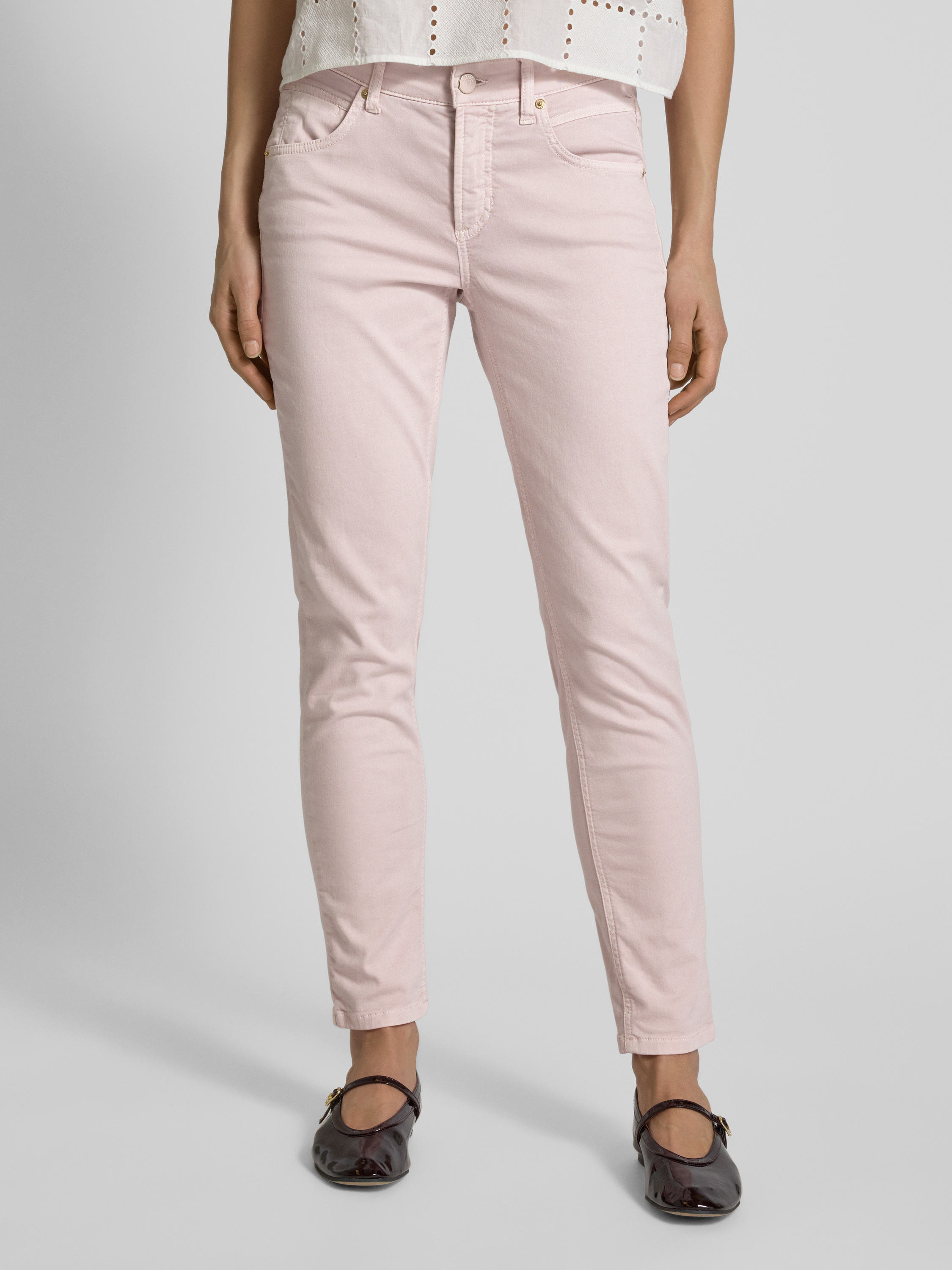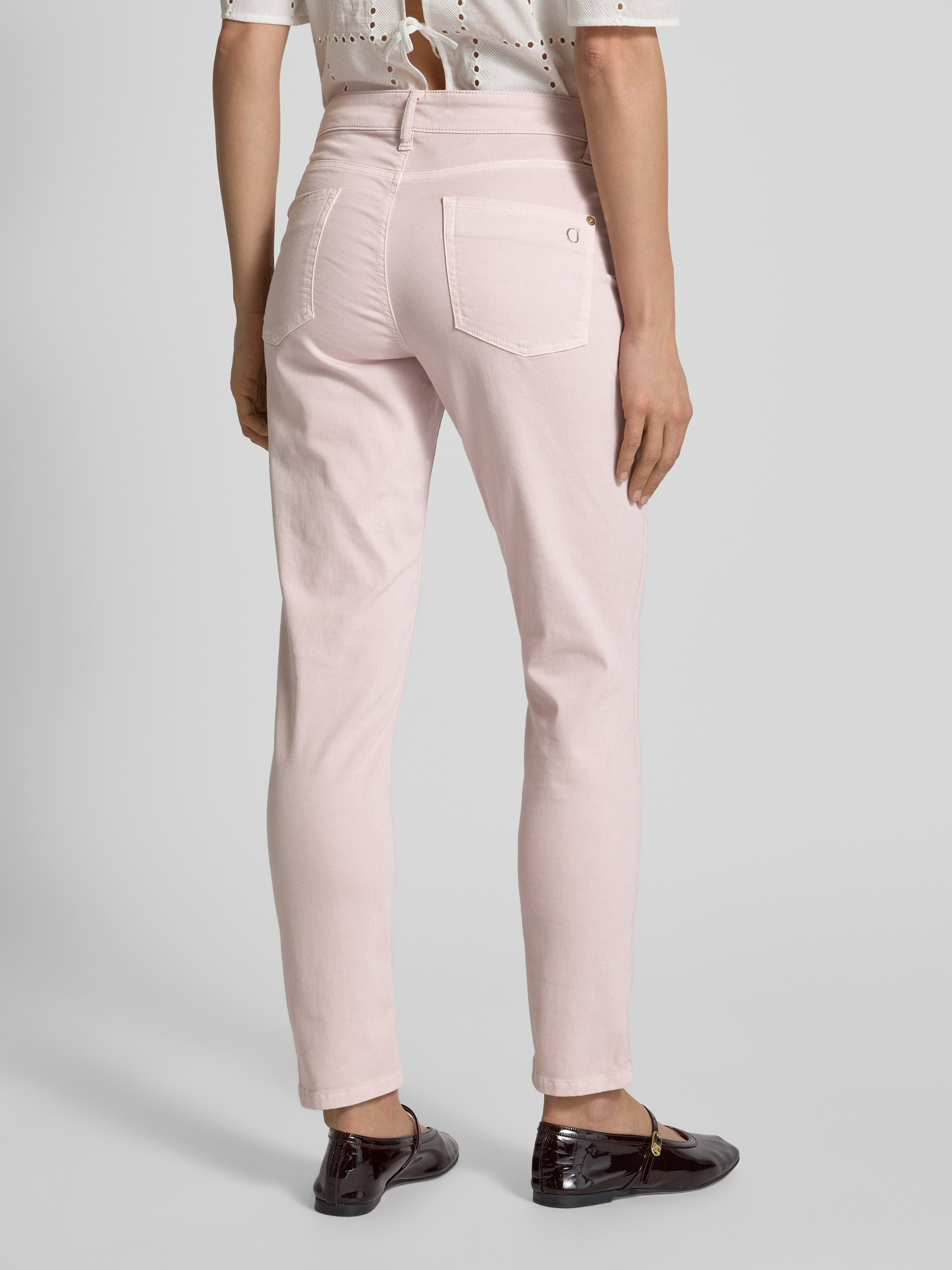 Slim fit jeans met verkort model, model 'PIPER' in lichtroze