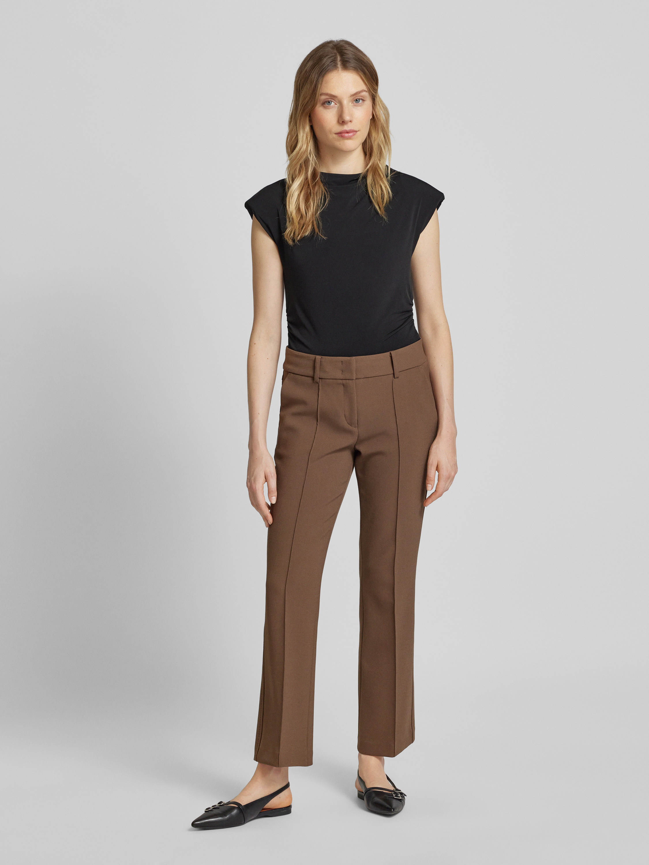 CambioStoffen broek met vaste persplooien, model 'FARAH' in donkerbruin