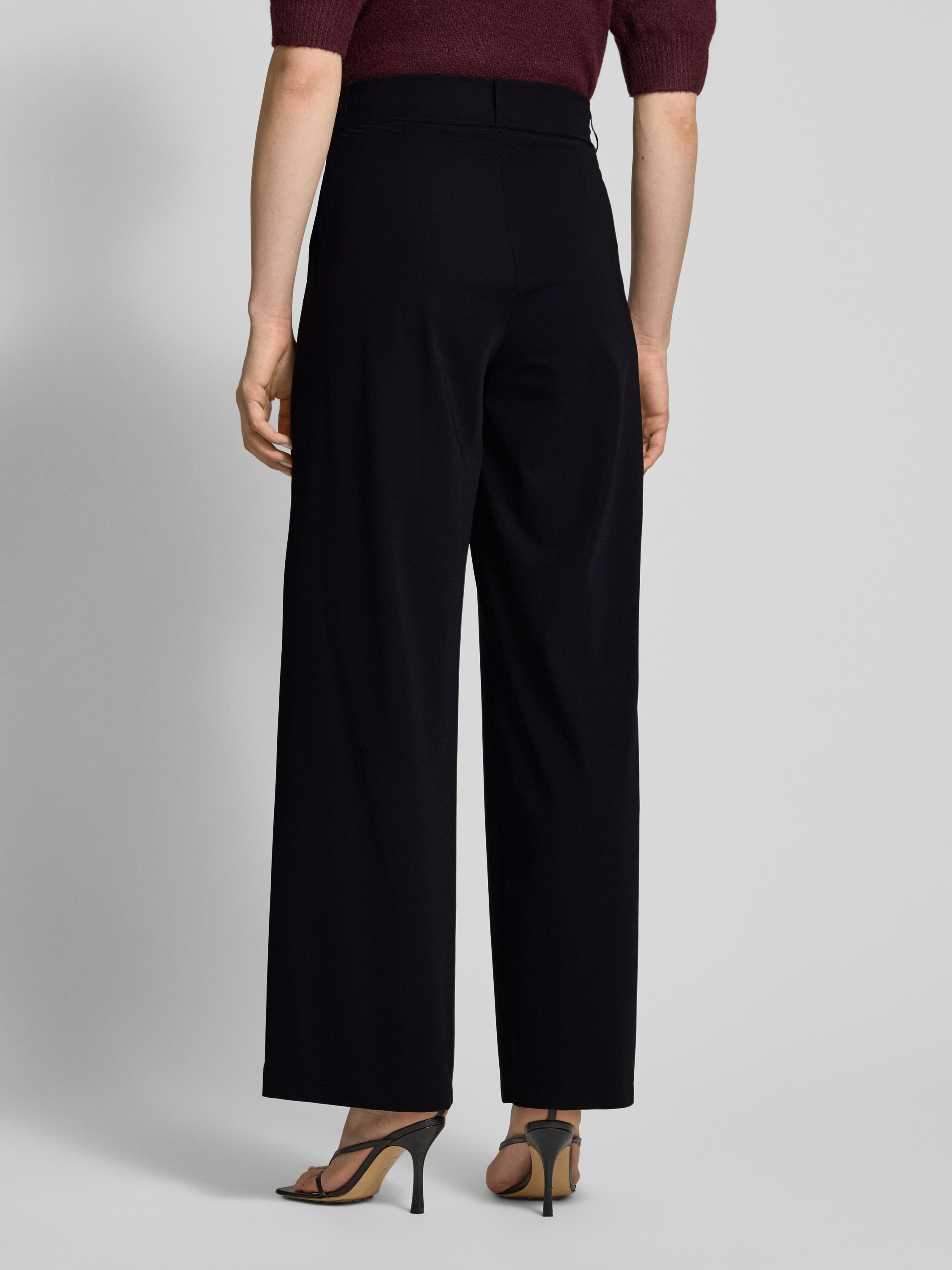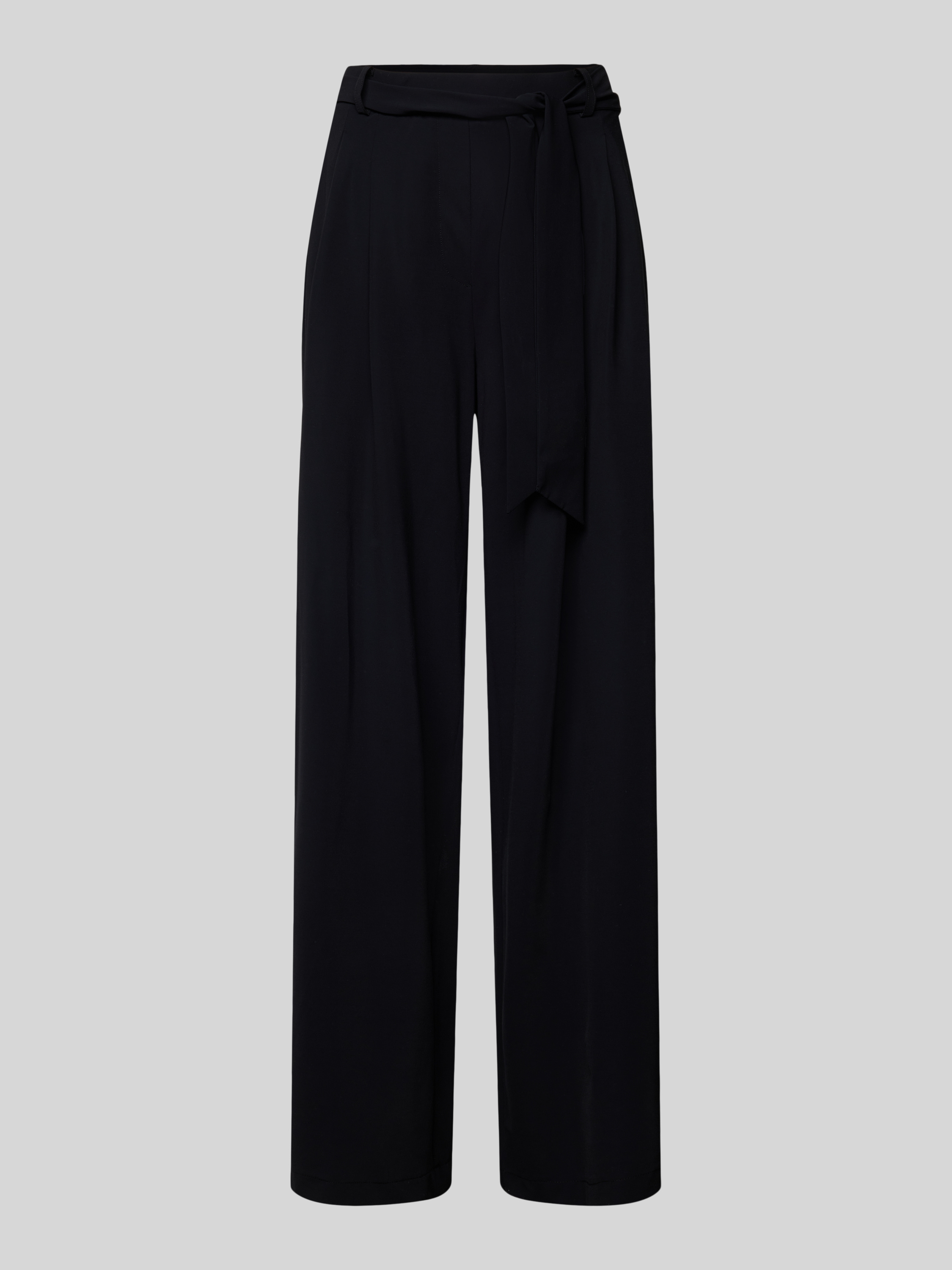 Straight leg stoffen broek met strikceintuur, model 'ANNY' in zwart