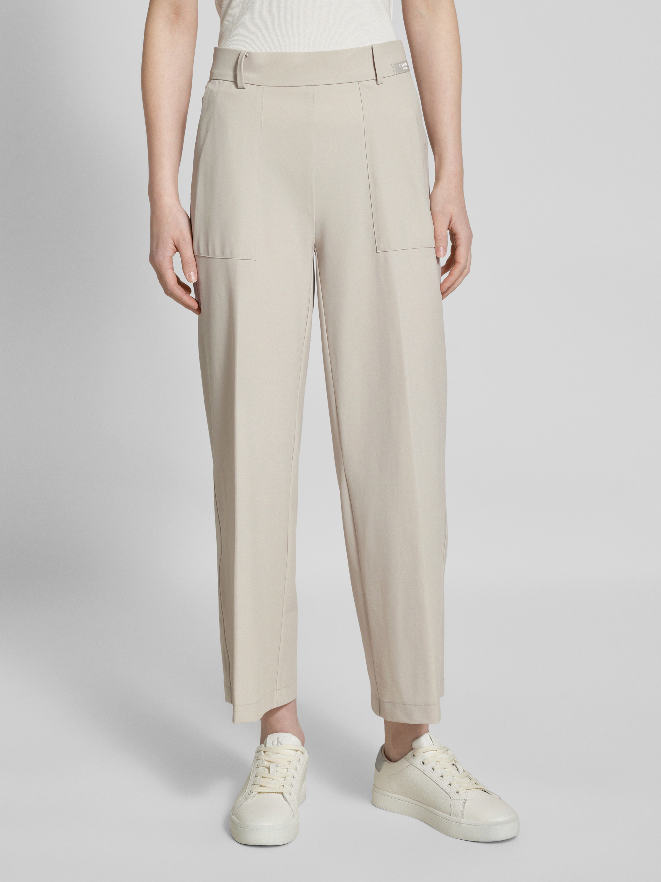 Tapered fit stoffen broek met verkort model in beige