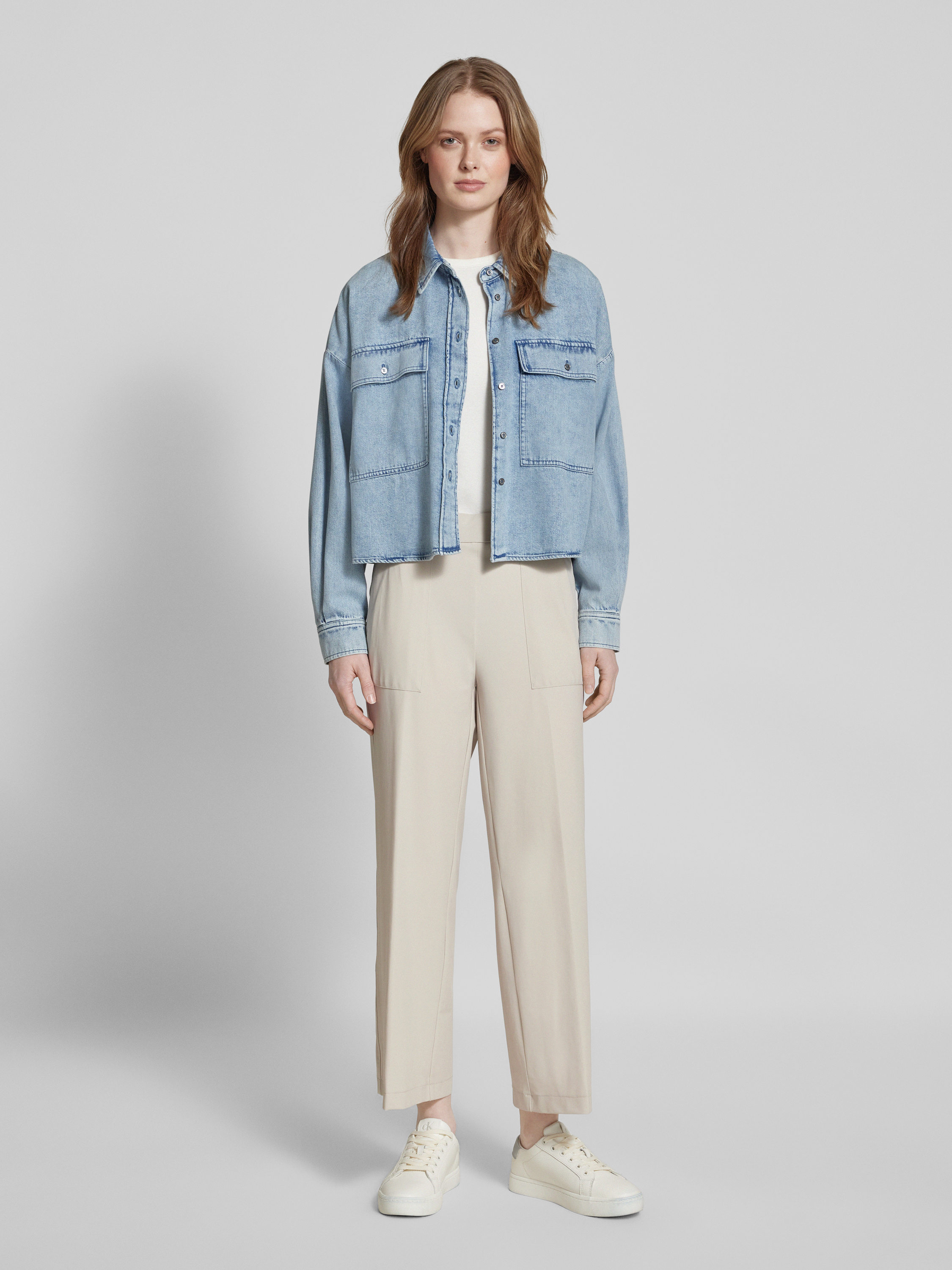 Regular fit jeansblouse met platte kraag, model 'ZEMIRA'