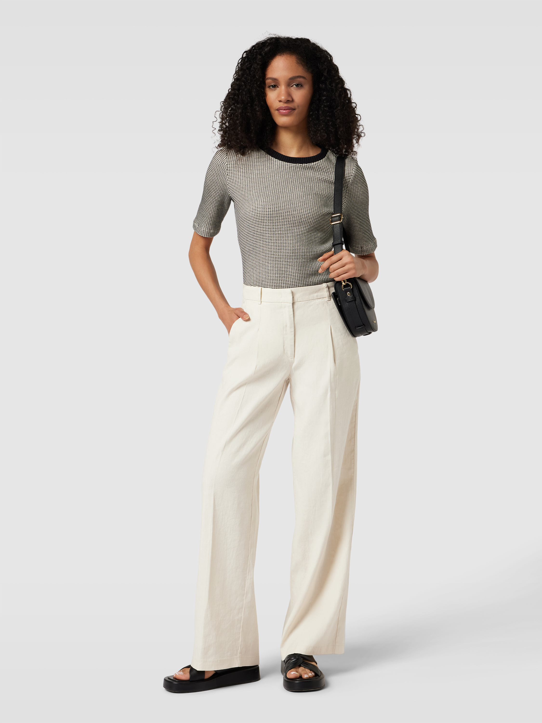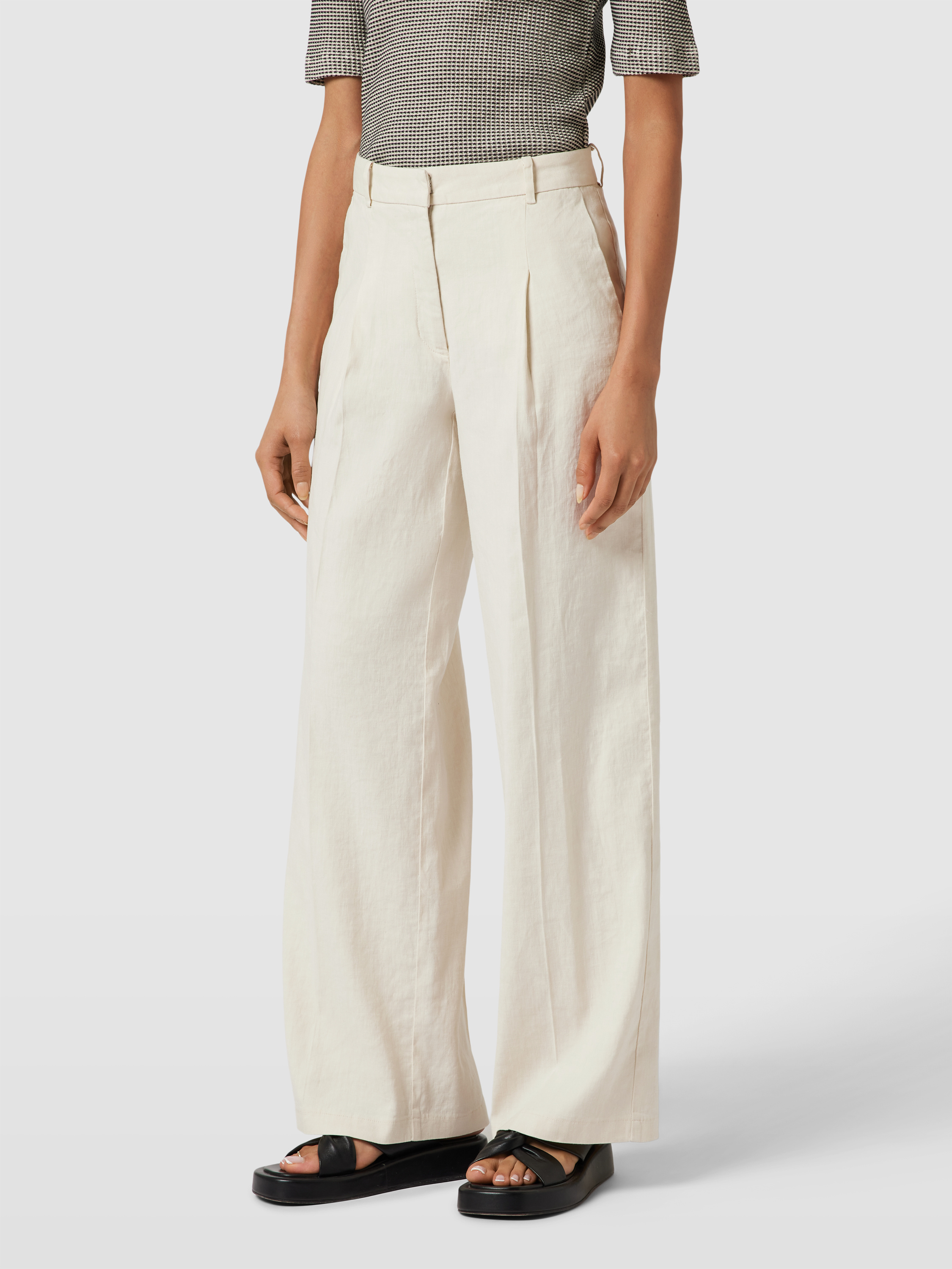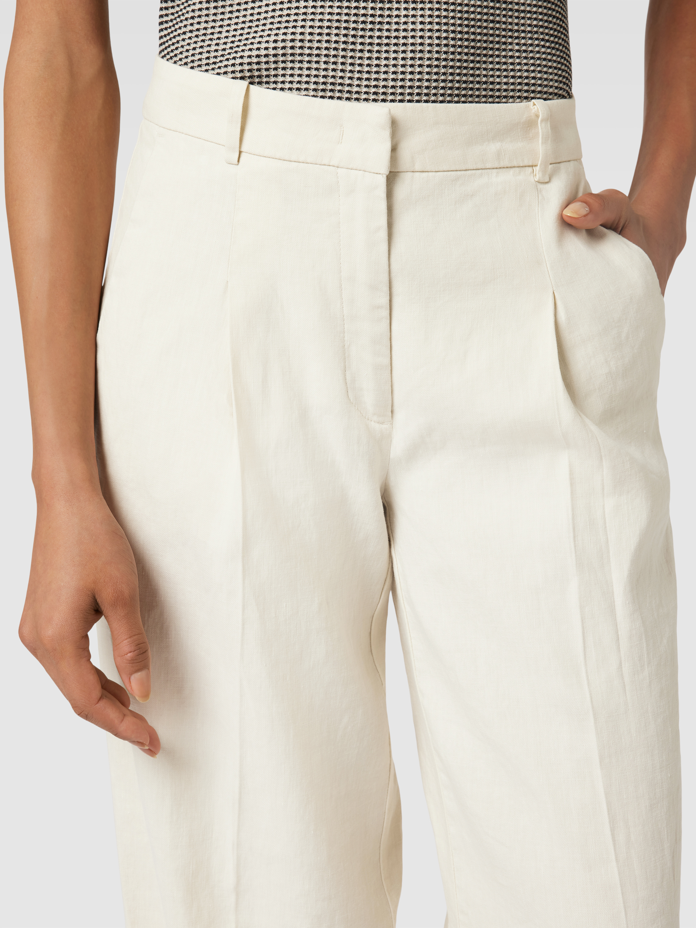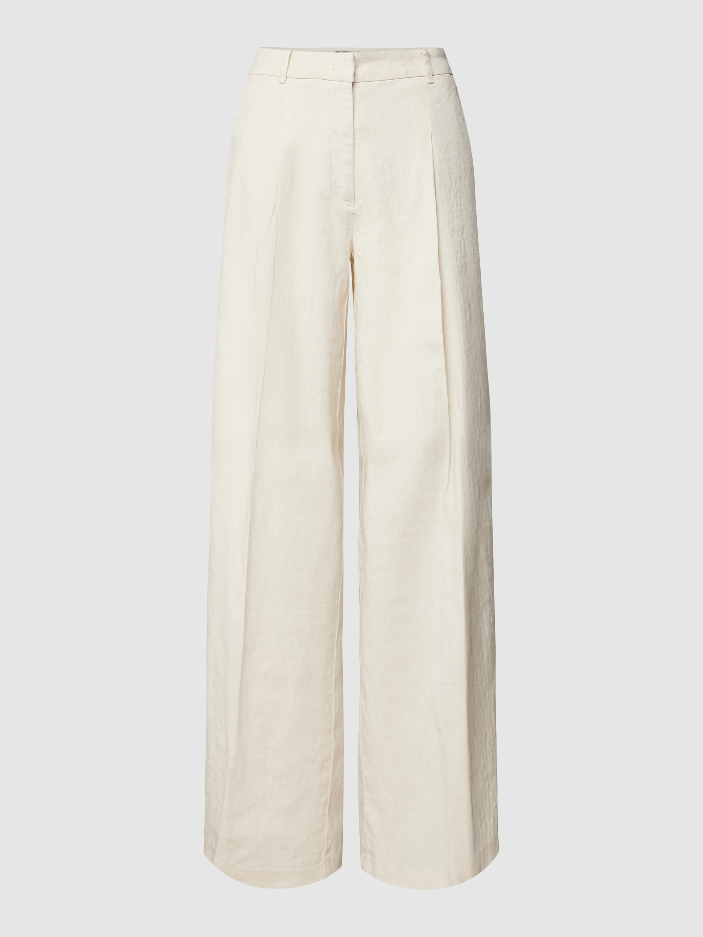 CambioWide leg linnen broek met bandplooien, model 'MIRA' in zand